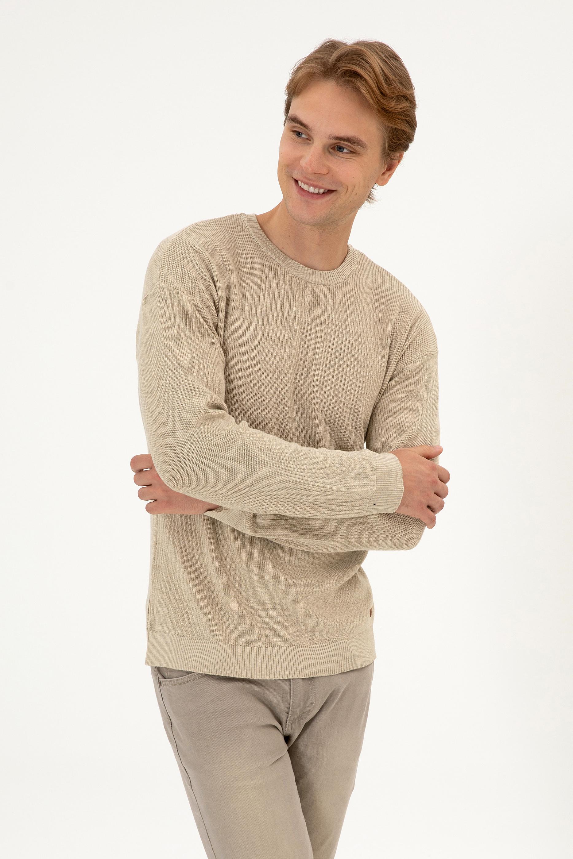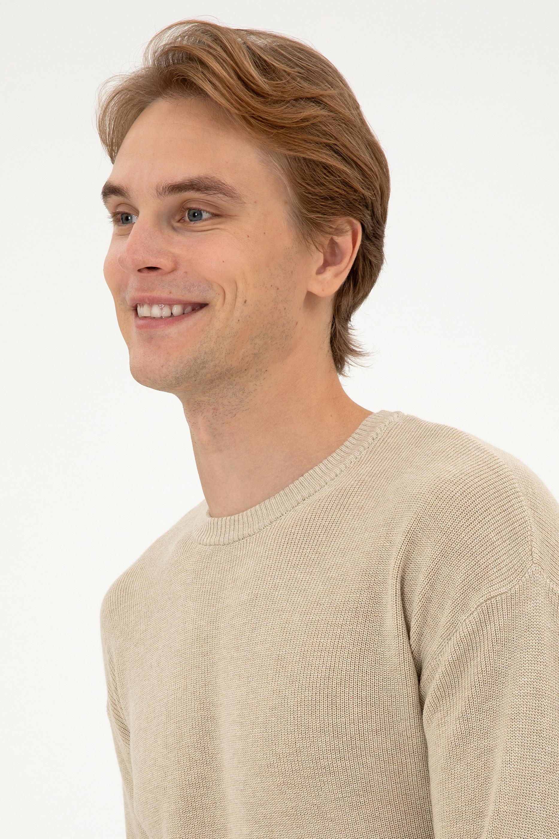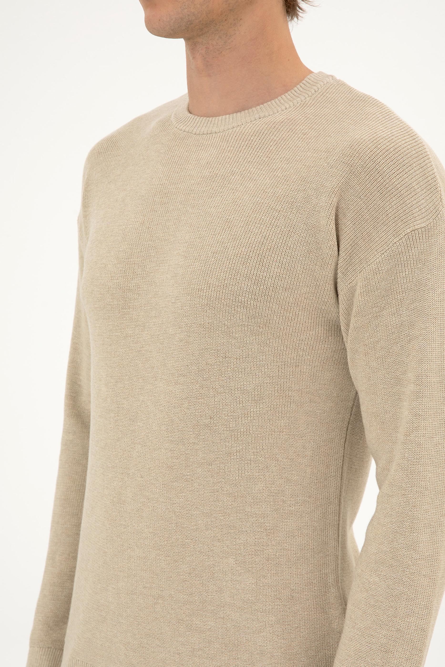 Erkek Comfort Fit Bisiklet Yaka Kum Melanj Basic Kazak