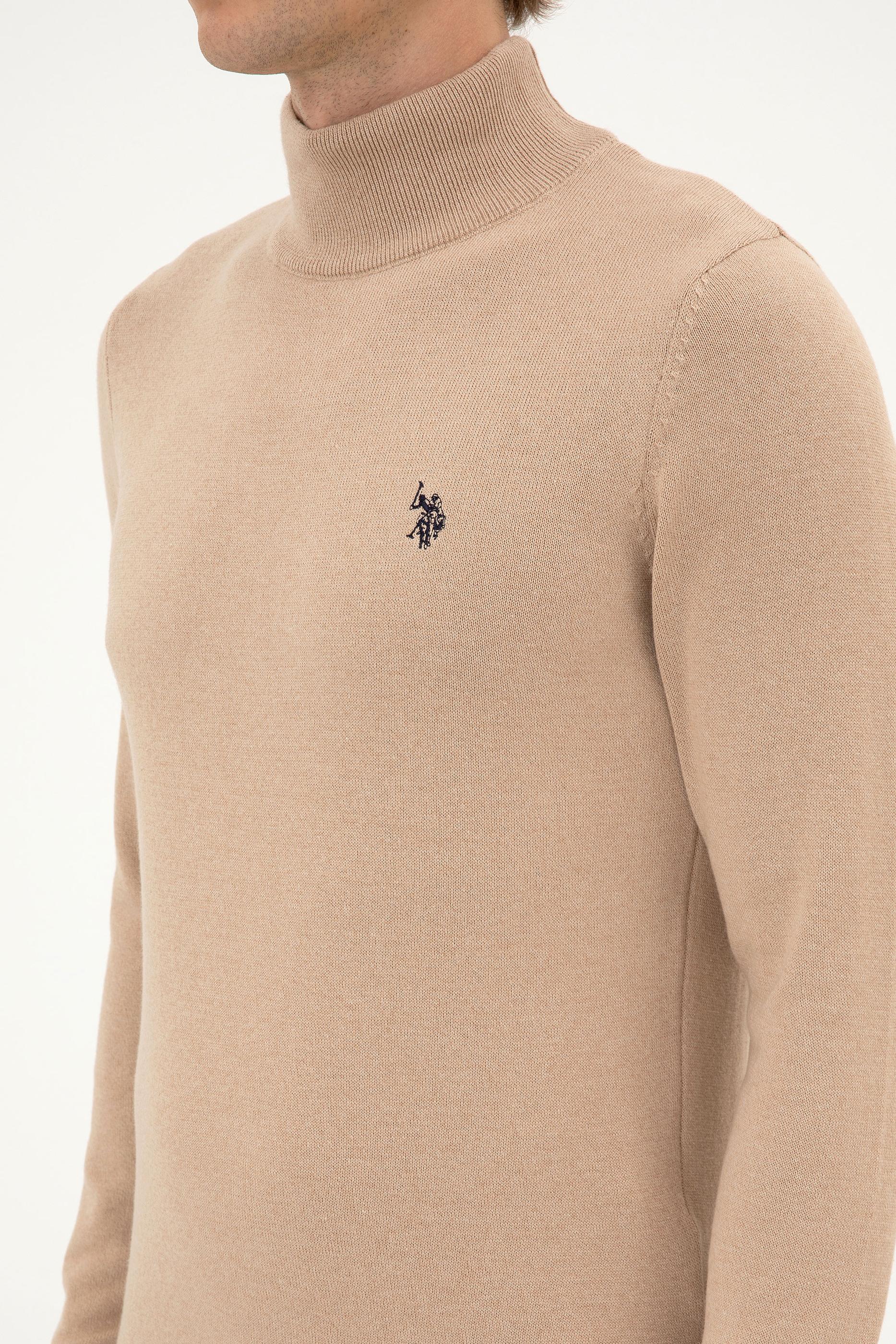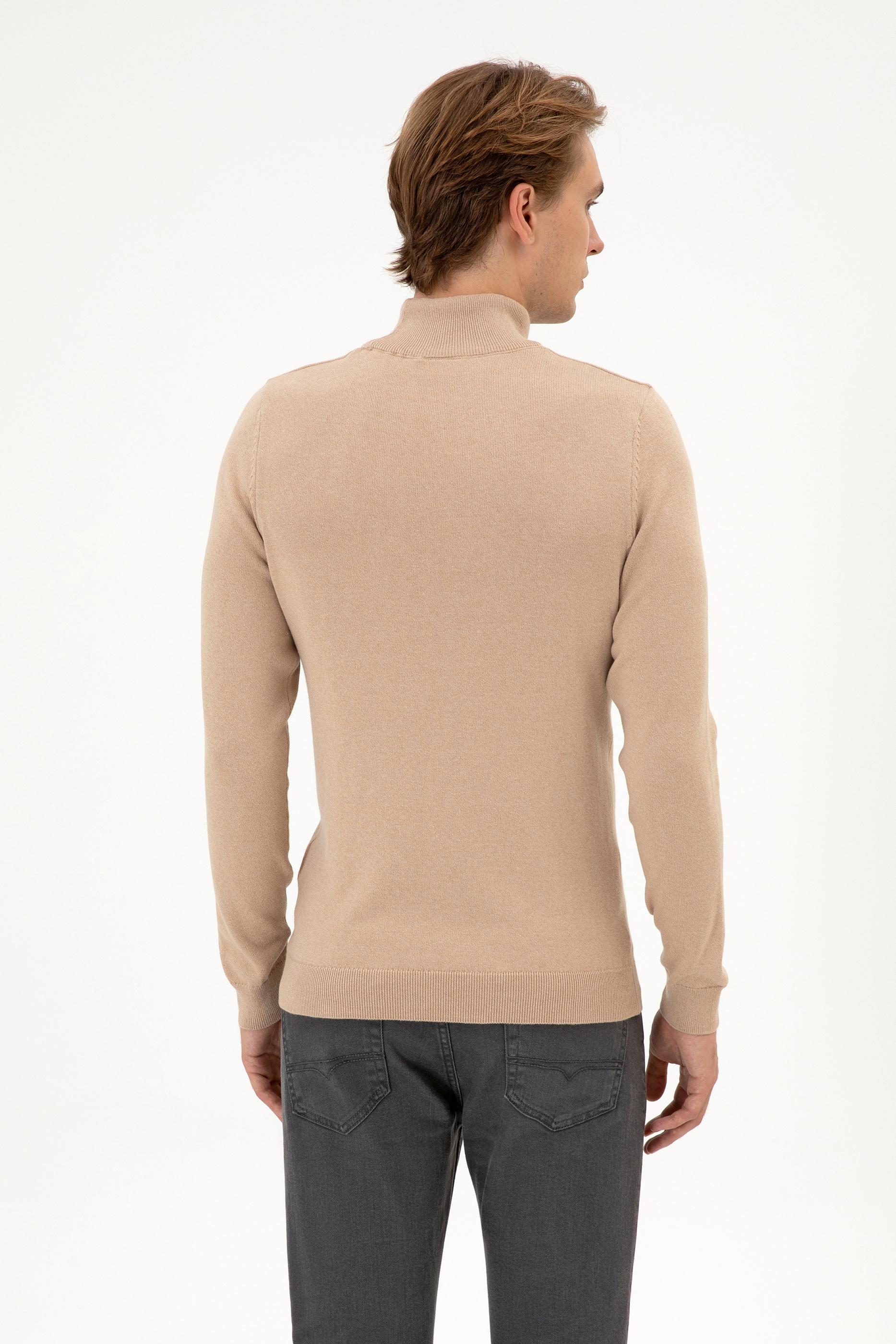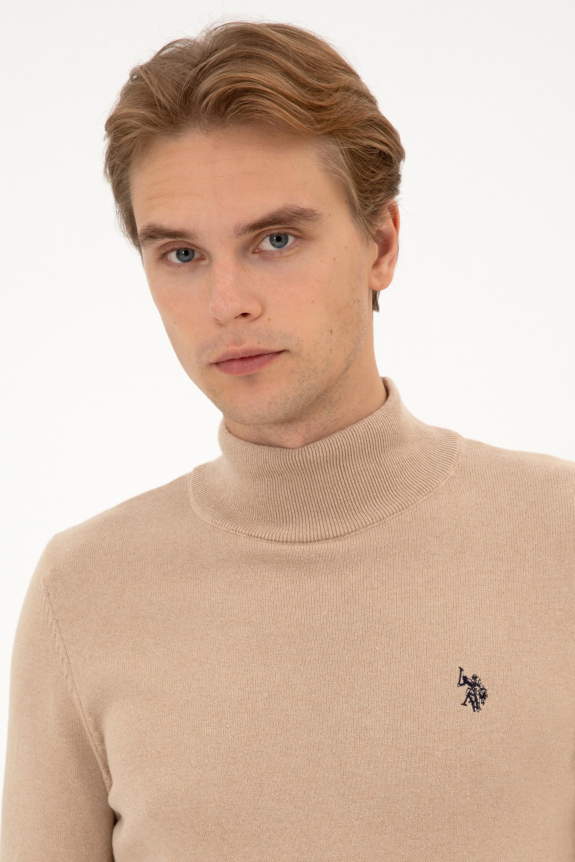 Erkek Slim Fit Boğazlı Kum Melanj Basic Kazak
