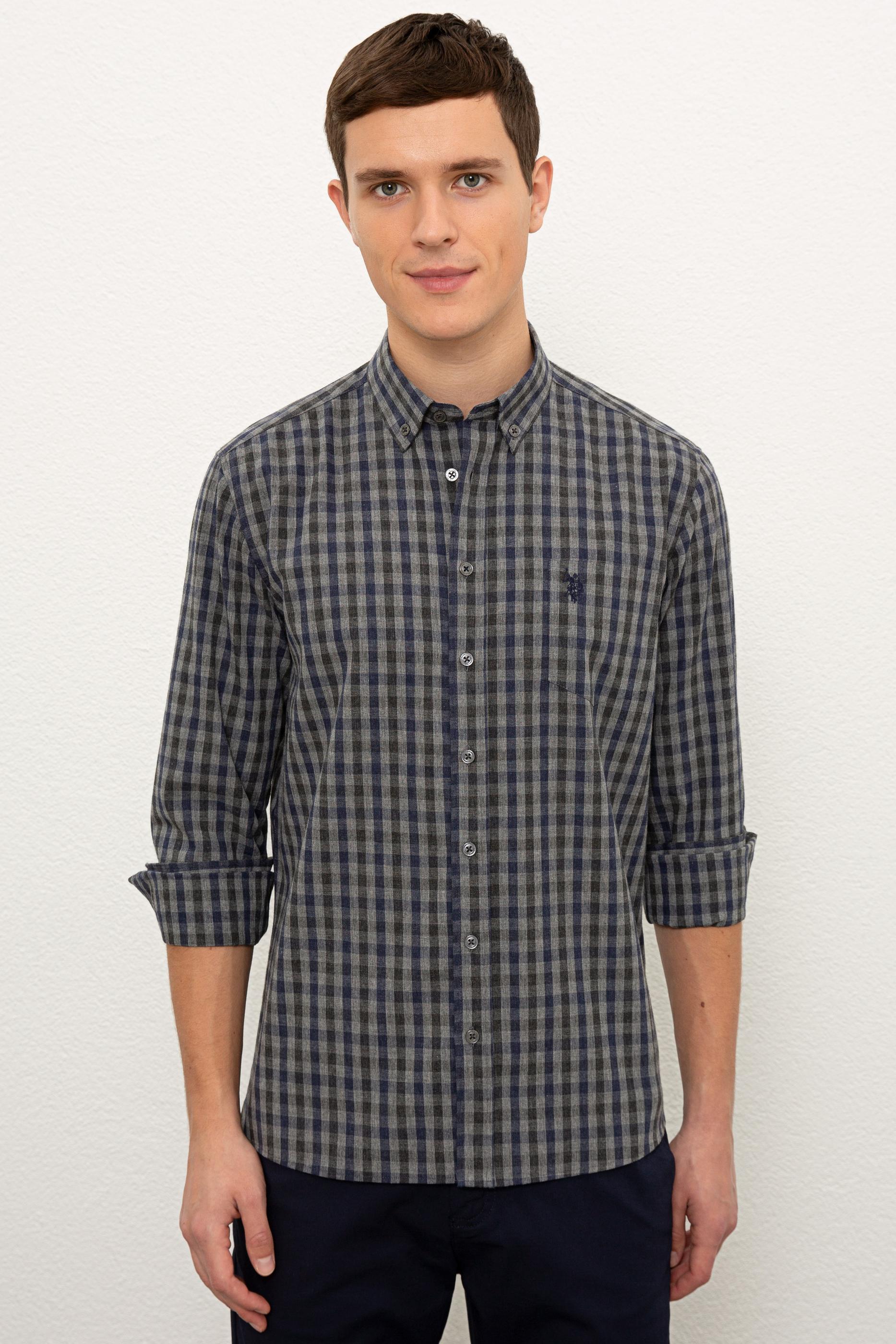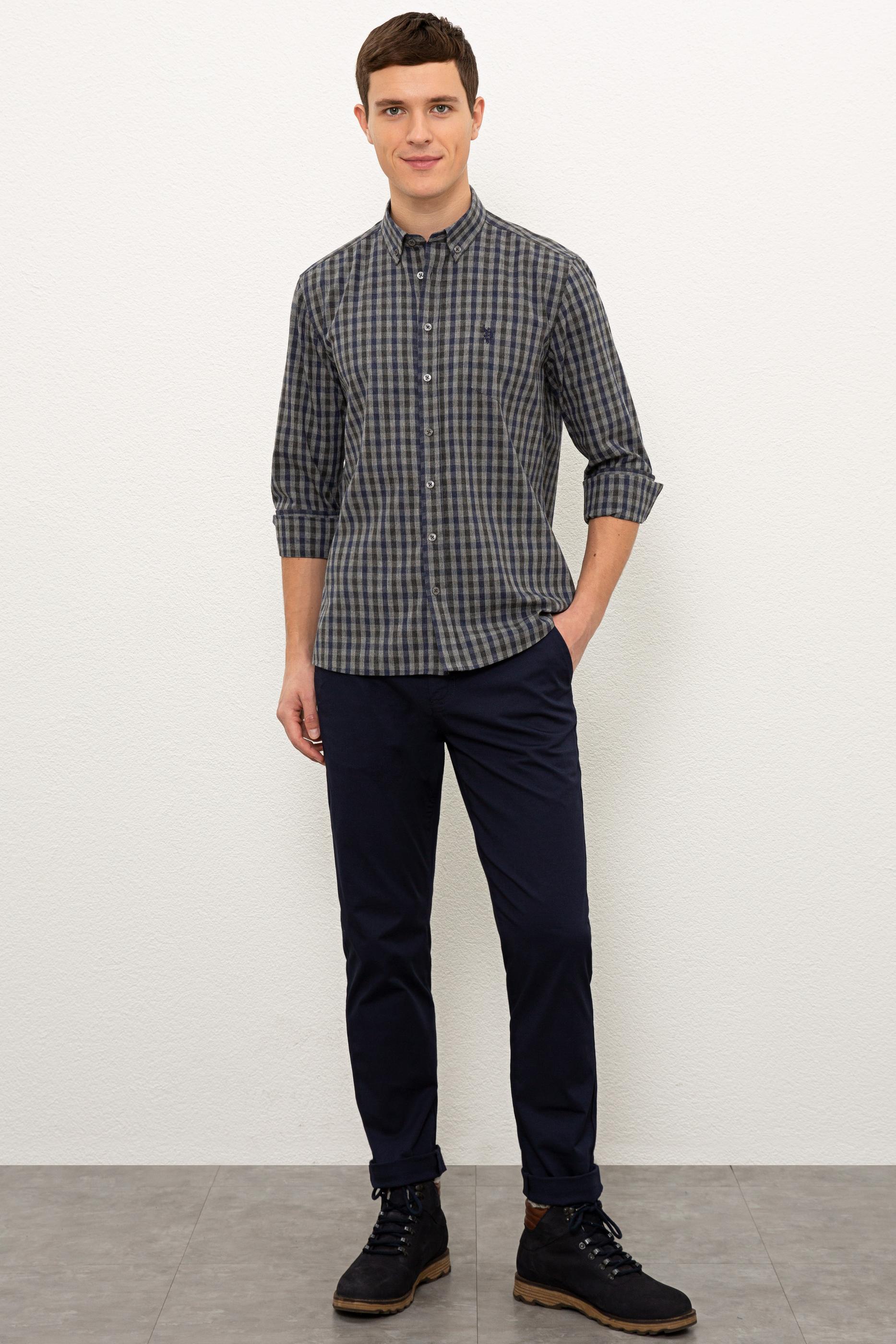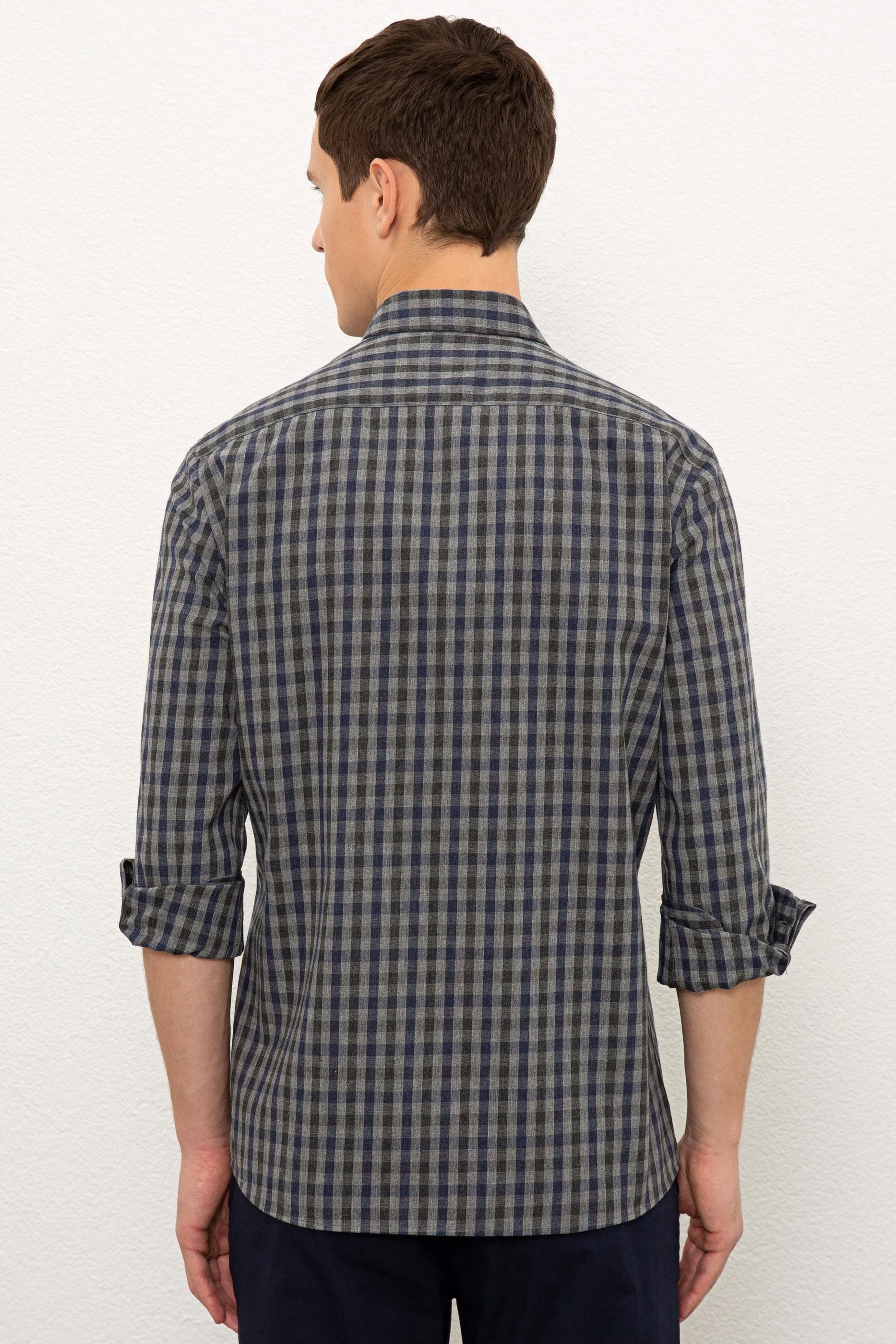 Erkek Lacivert Antrasit Mini Kareli Gömlek Uzunkol