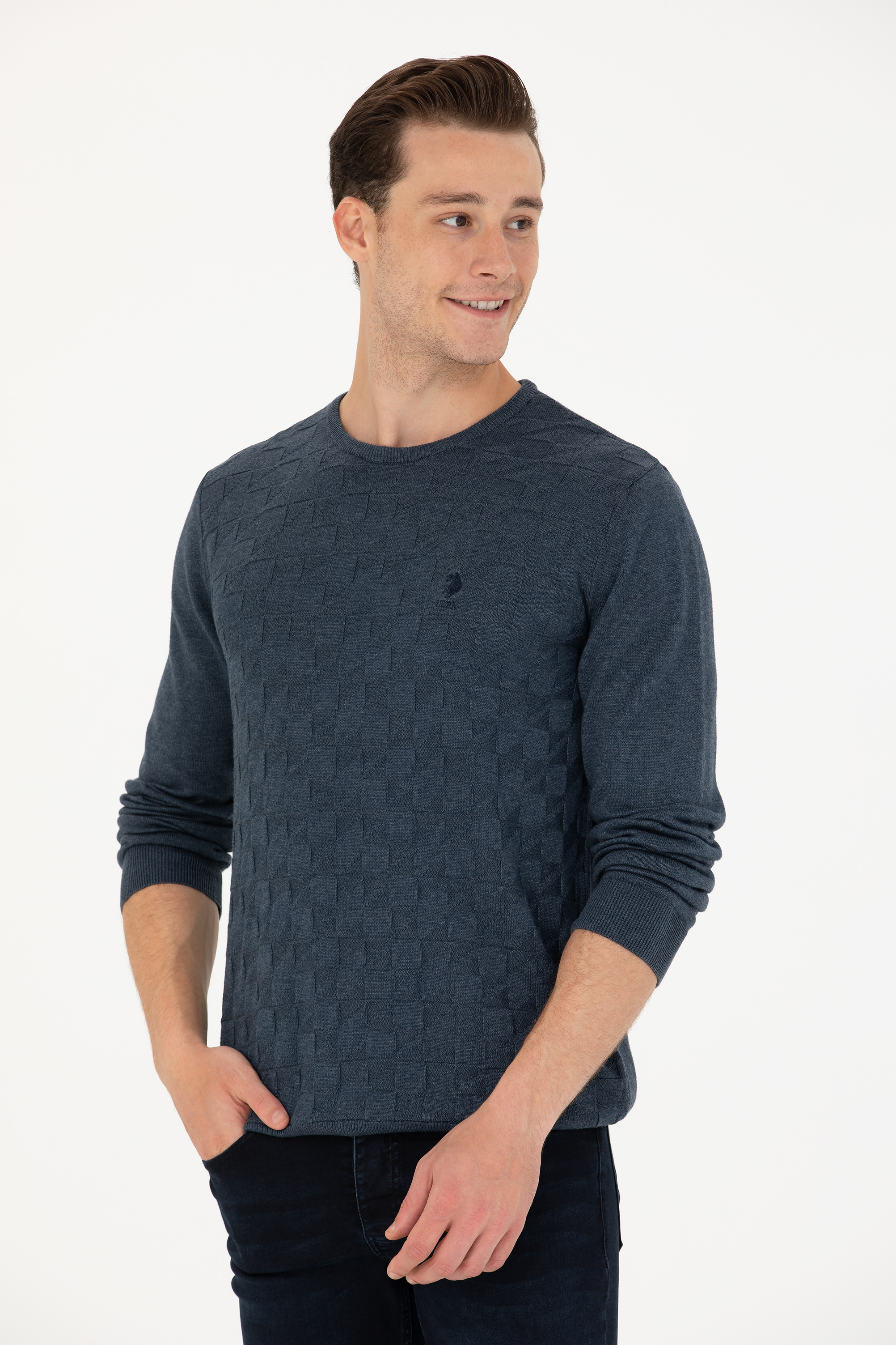 Erkek Lacivert Bisiklet Yaka Kazak