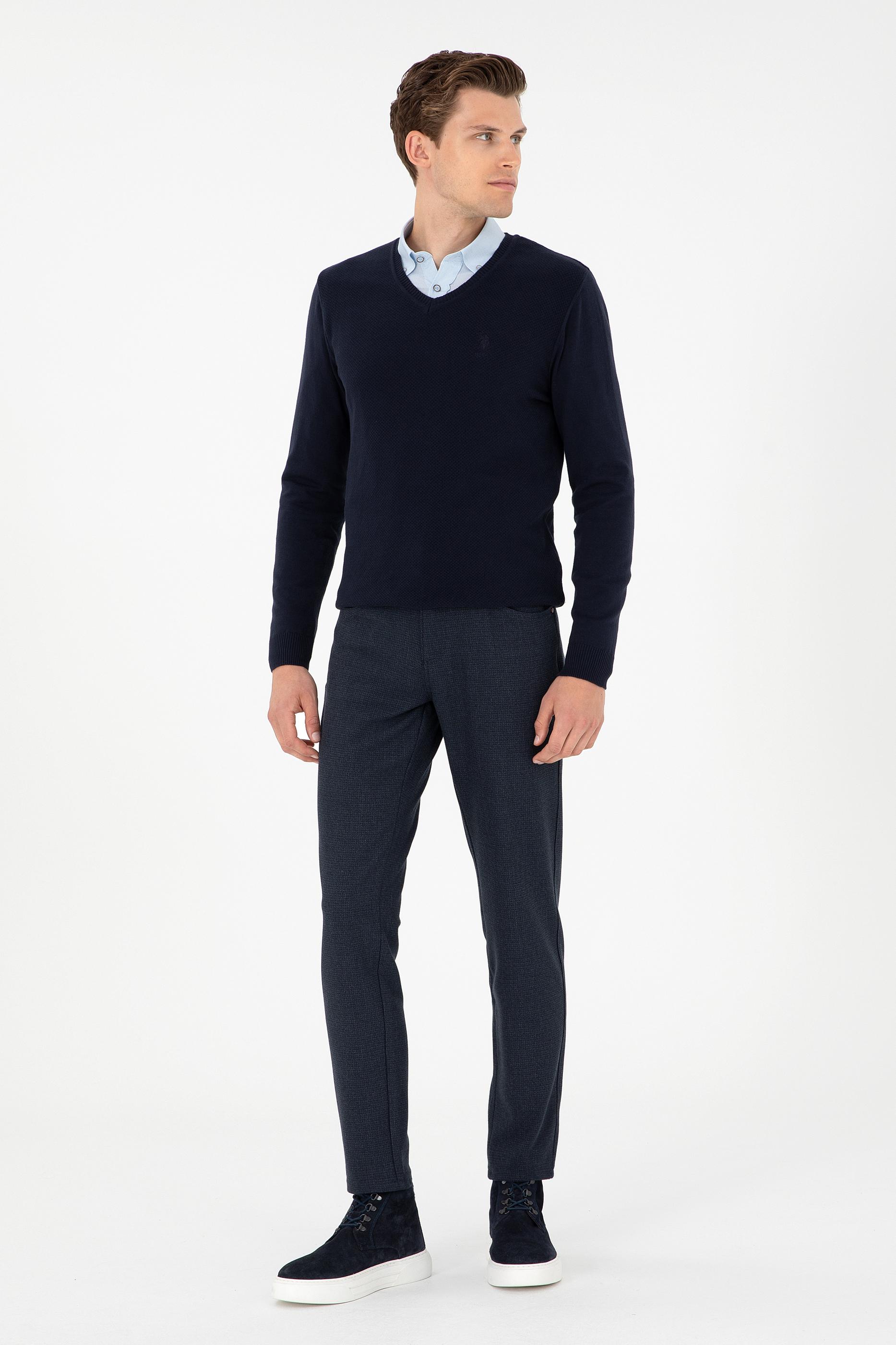 Erkek Slim Fit V Yaka Lacivert Basic Kazak