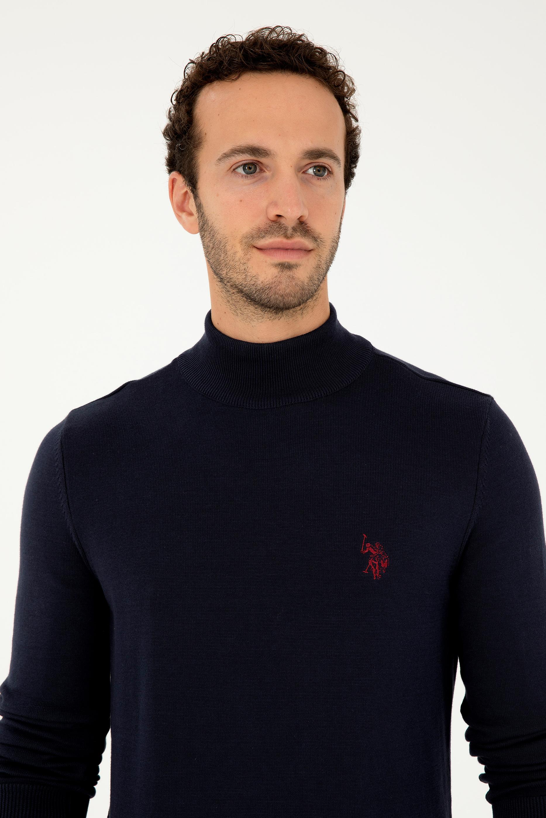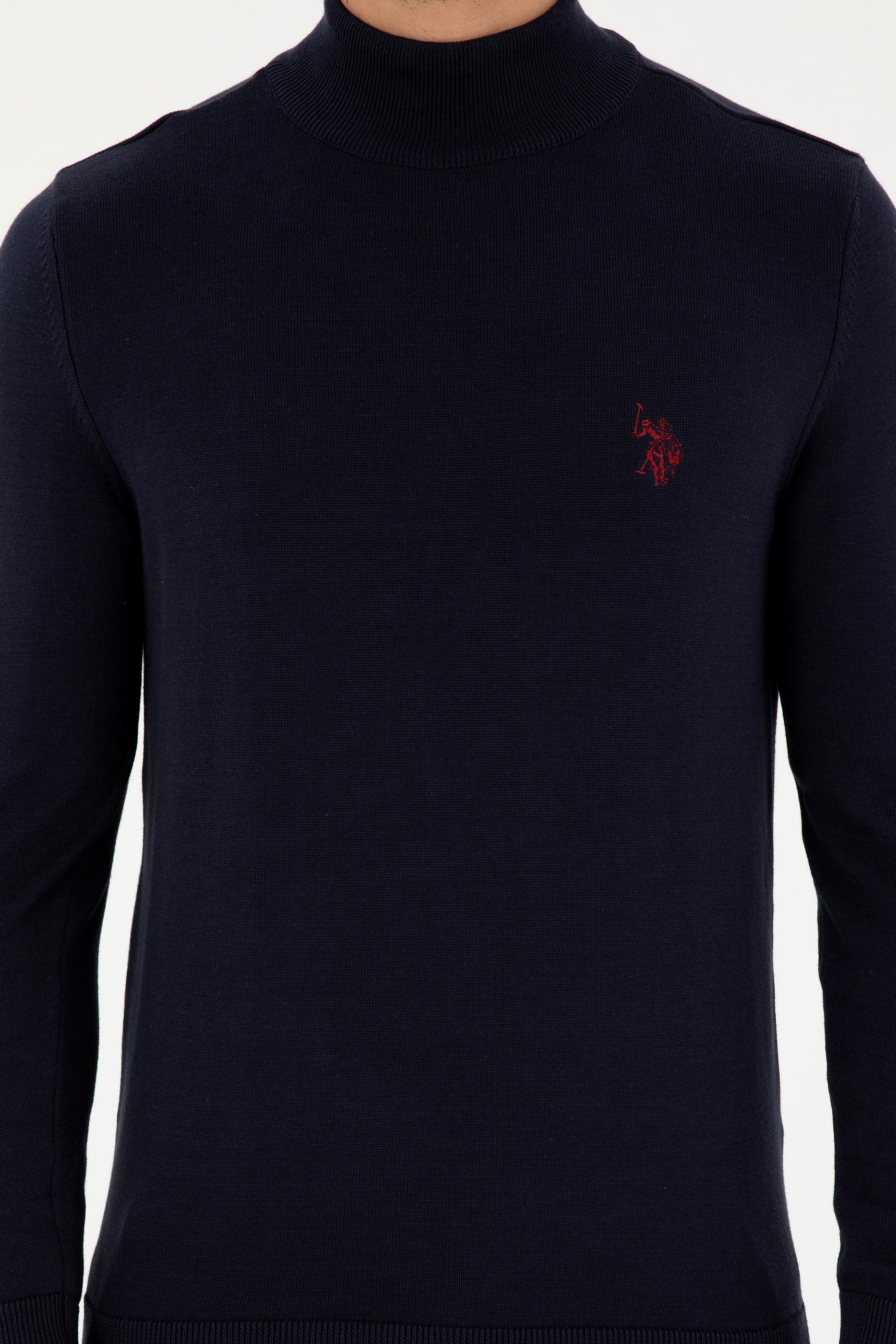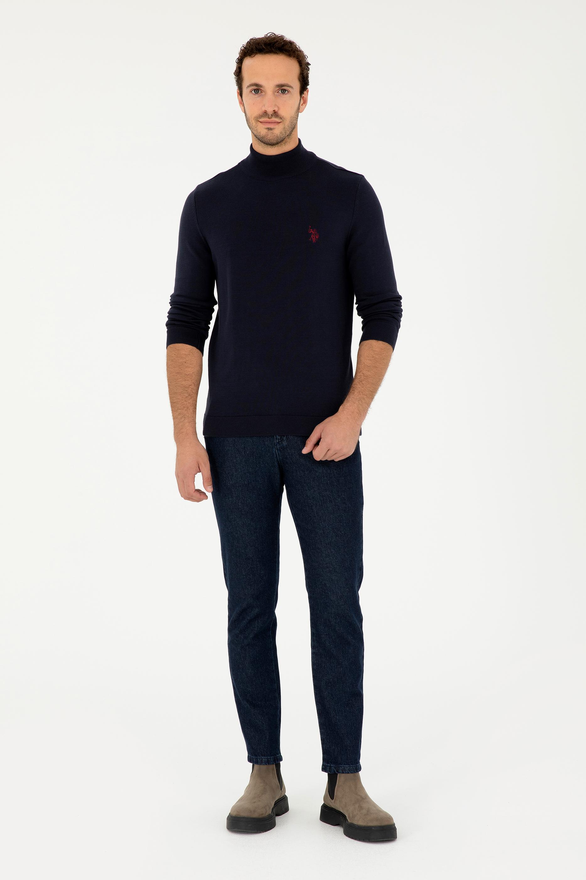 Erkek Slim Fit Yarım Boğazlı Lacivert Basic Kazak