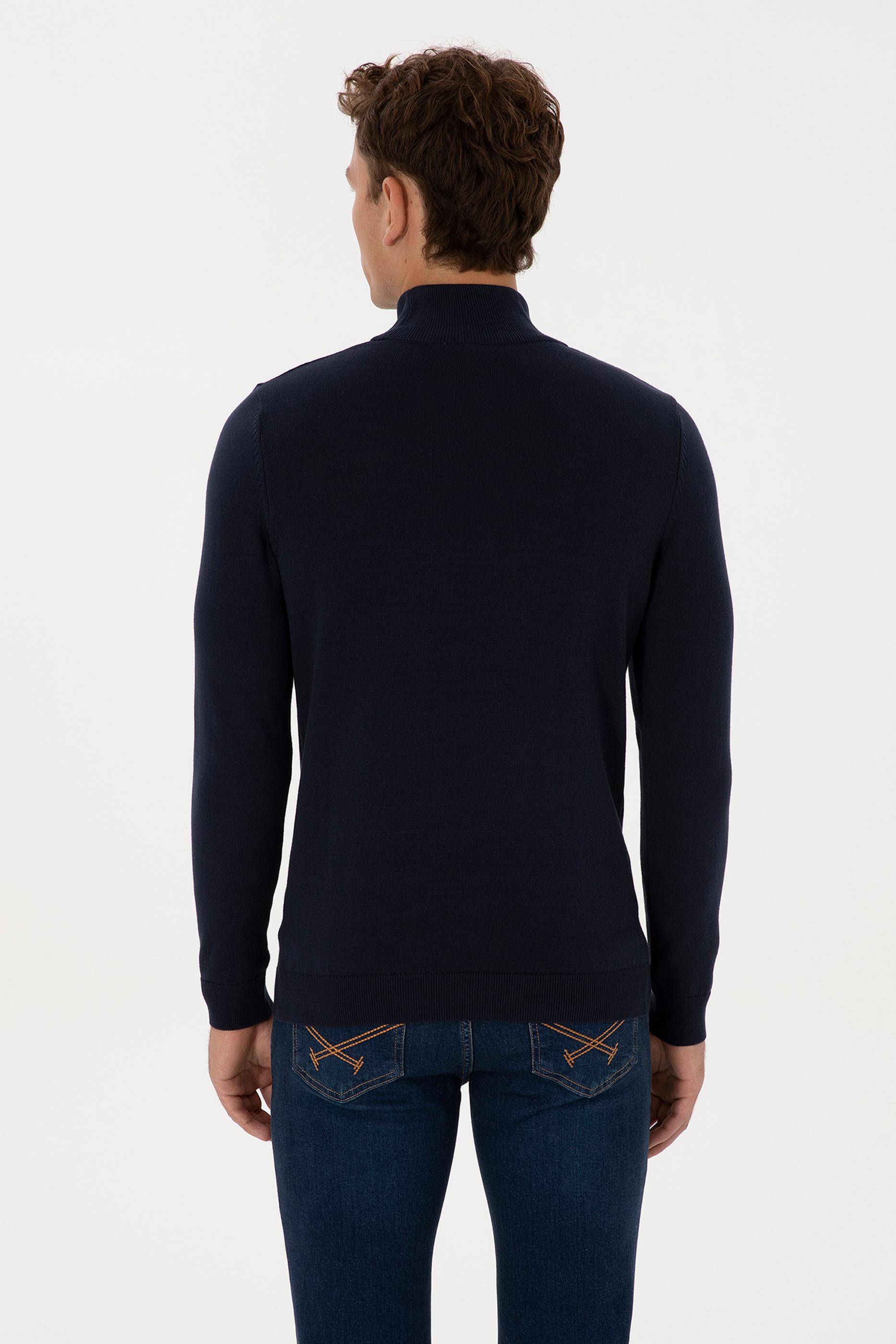 - Erkek Slim Fit Yarım Balıkçı Yaka Lacivert Basic Kazak