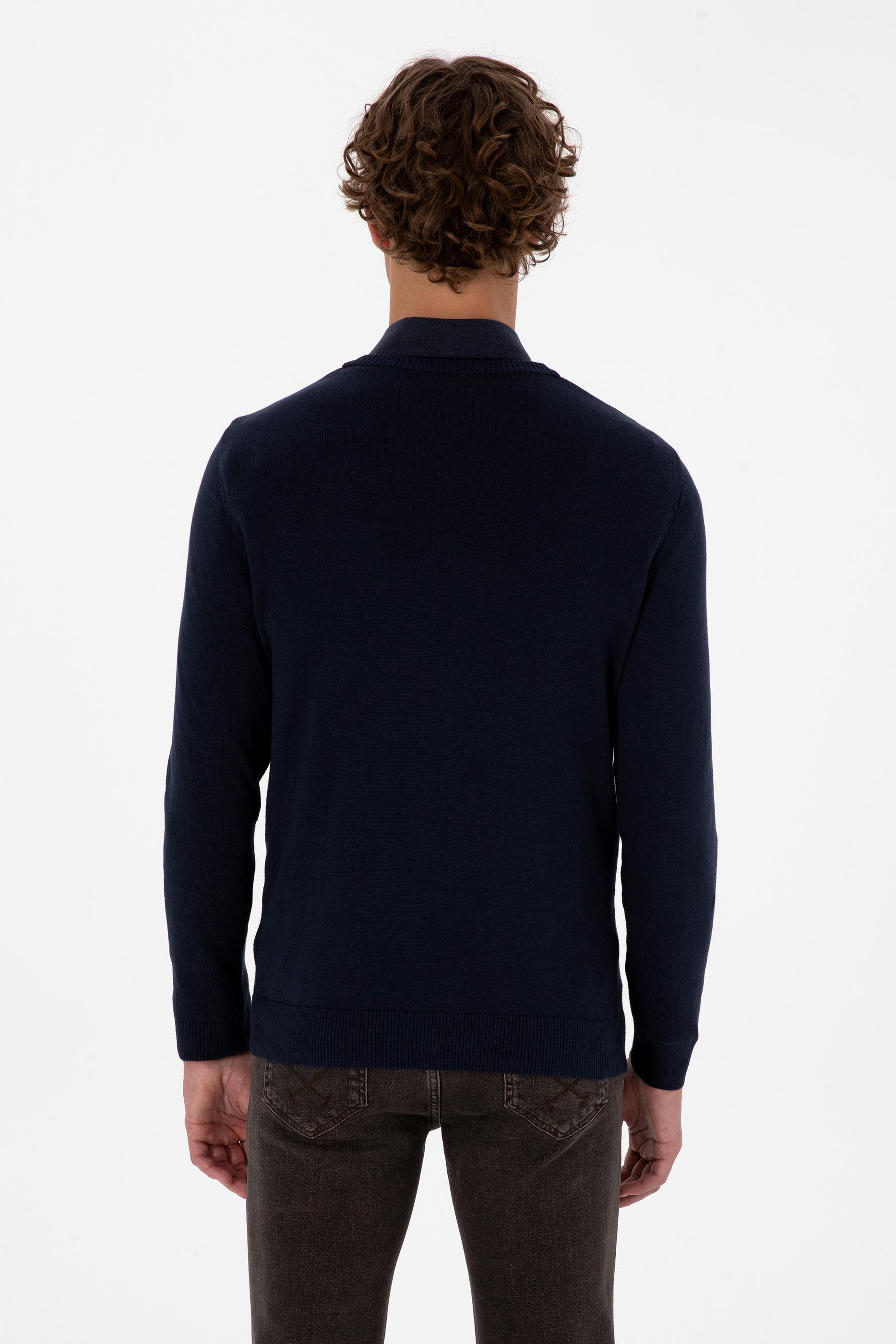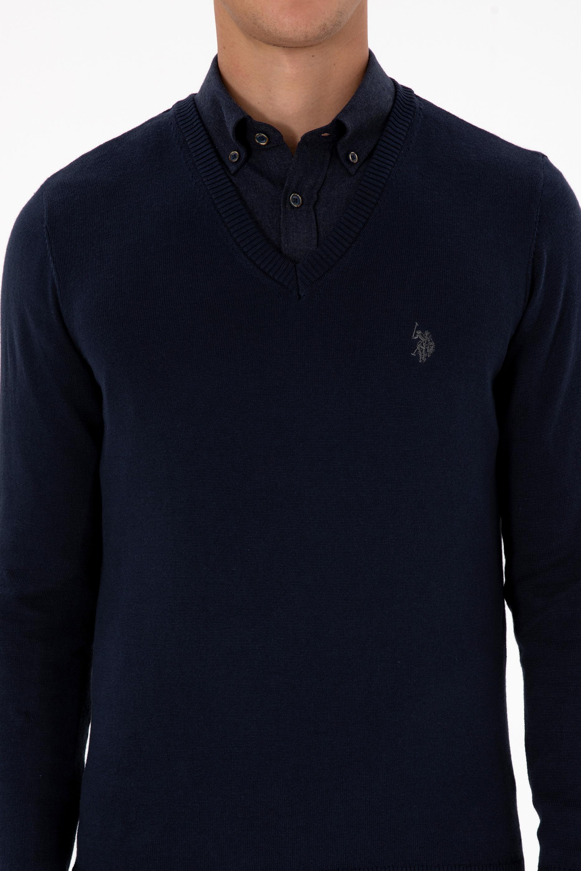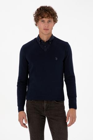 Erkek Slim Fit V Yaka Lacivert Basic Triko Kazak