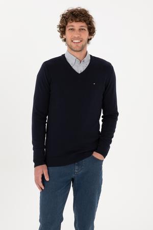 Erkek Slim Fit V Yaka Lacivert Basic Kazak