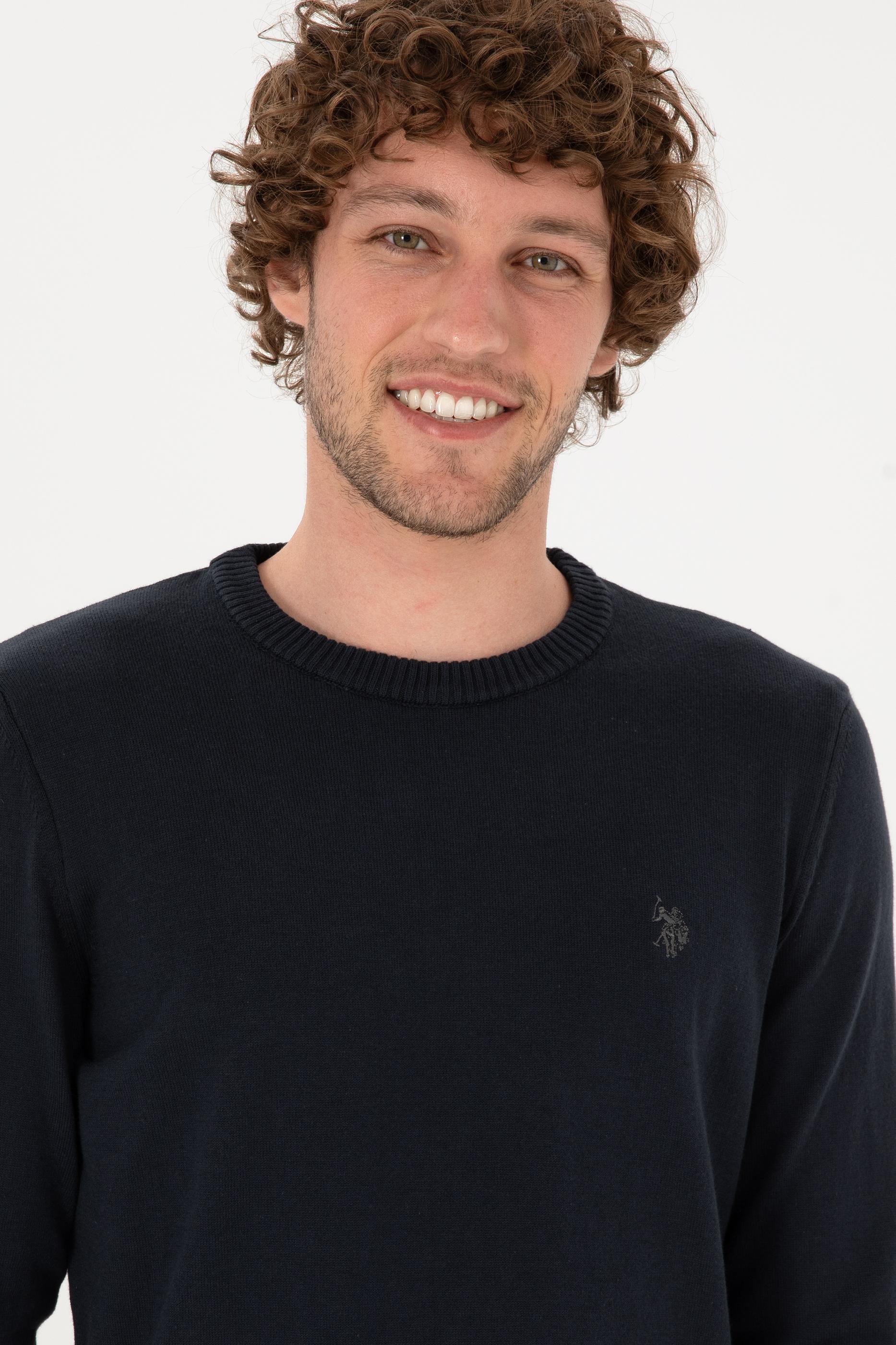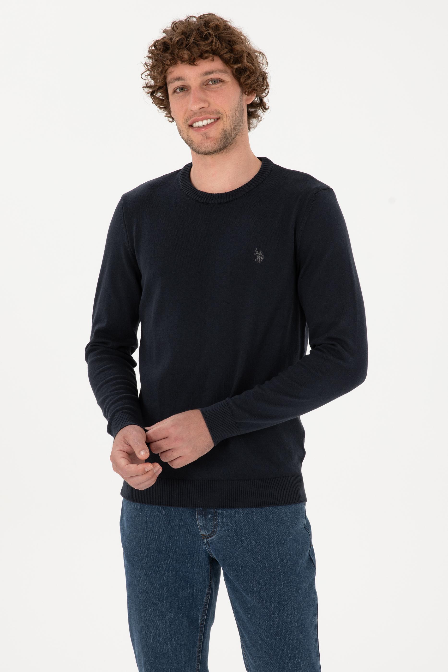 Erkek Slim Fit Bisiklet Yaka Lacivert Basic Kazak
