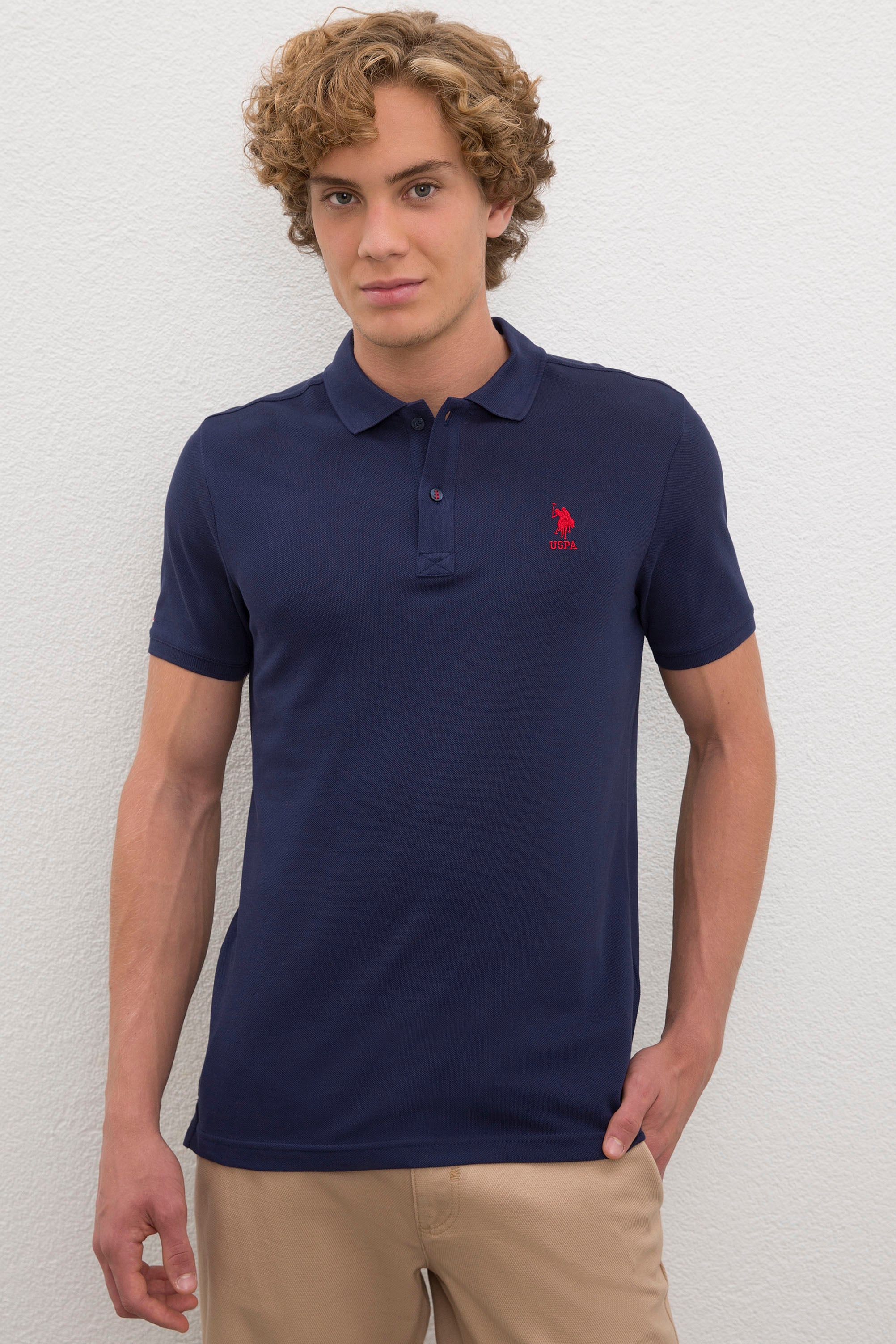 - Erkek Lacivert Polo Yaka Basic T-Shirt