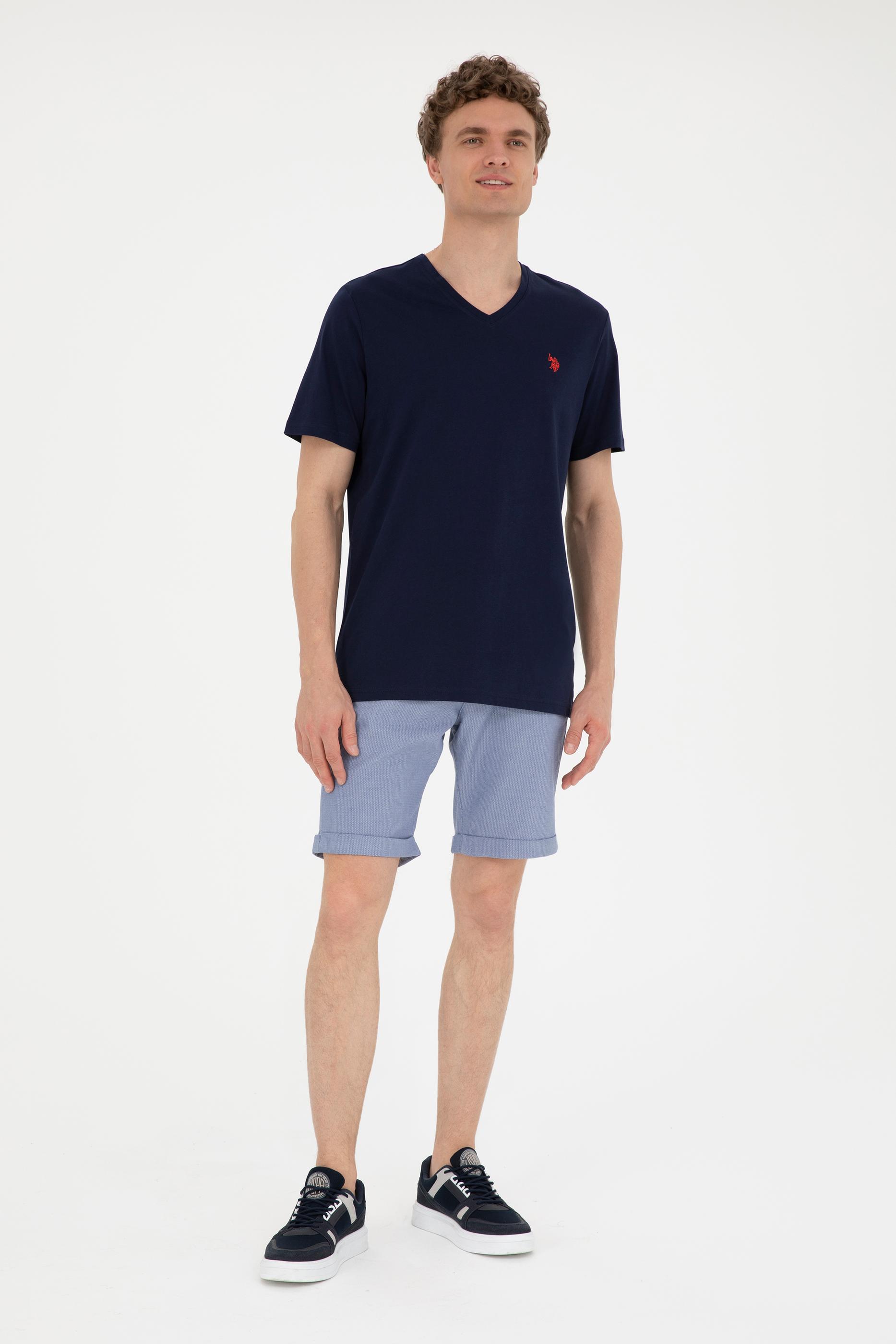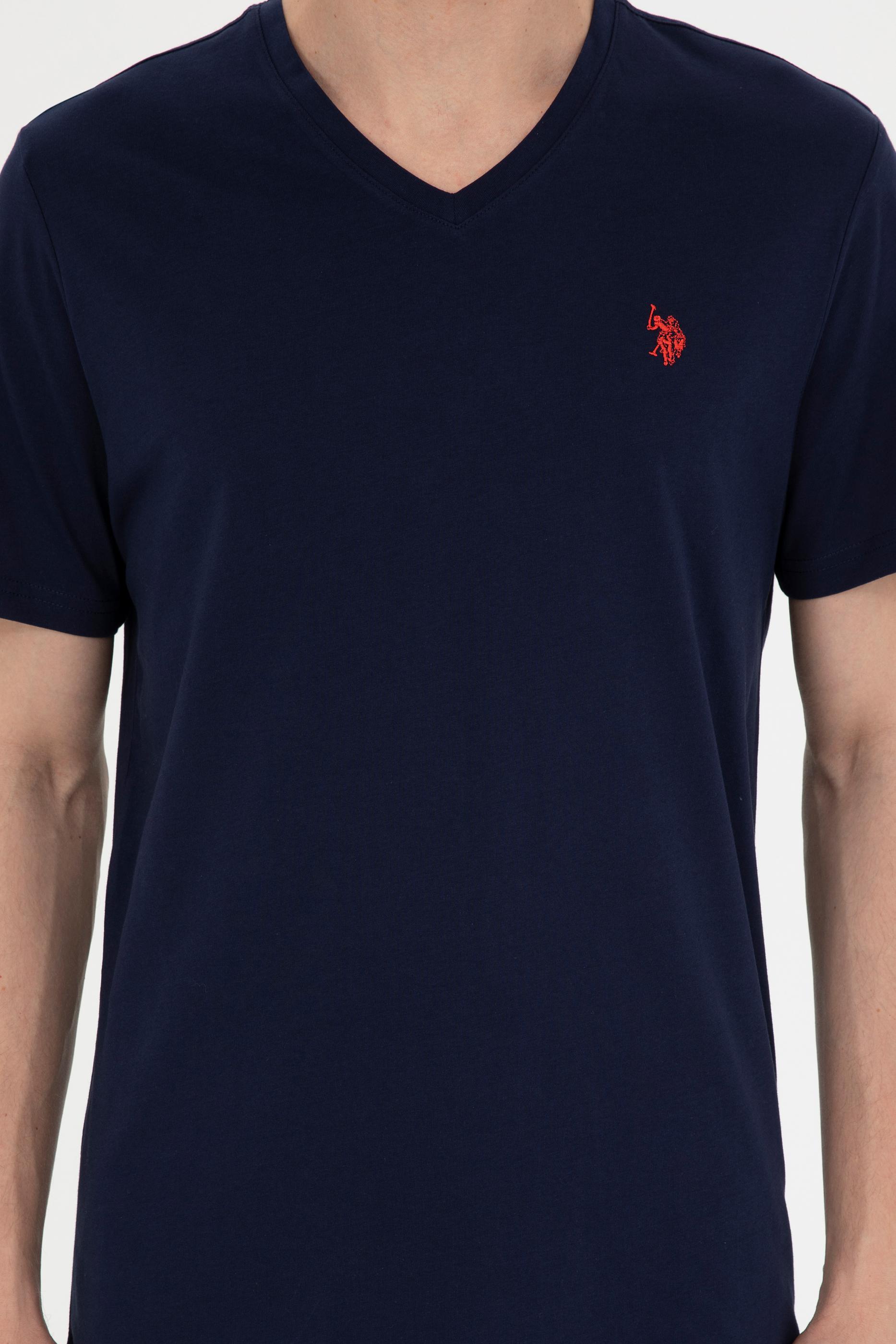 Erkek Regular Fit V Yaka Lacivert Basic Tişört
