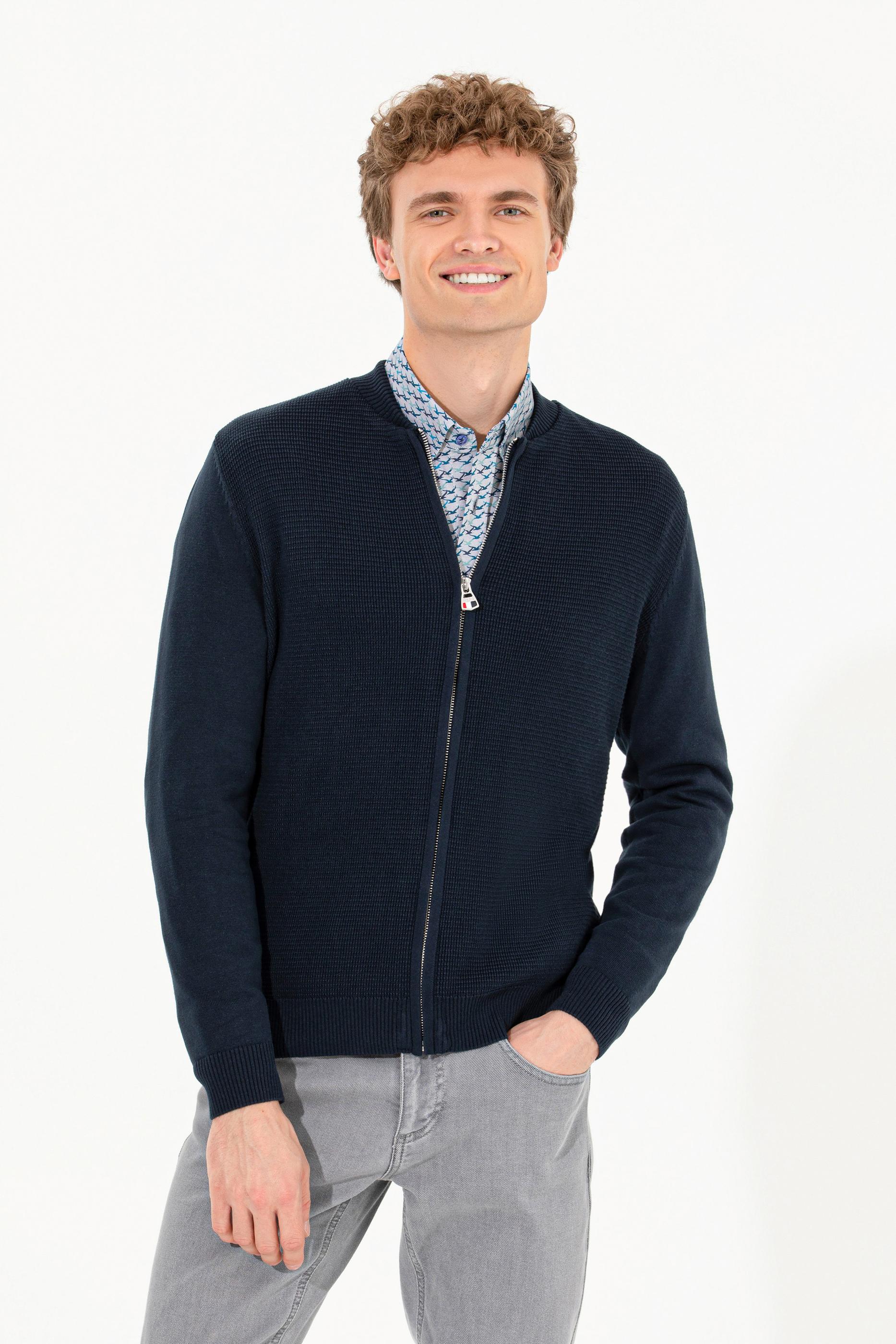 - Erkek Lacivert Basic Triko Hırka
