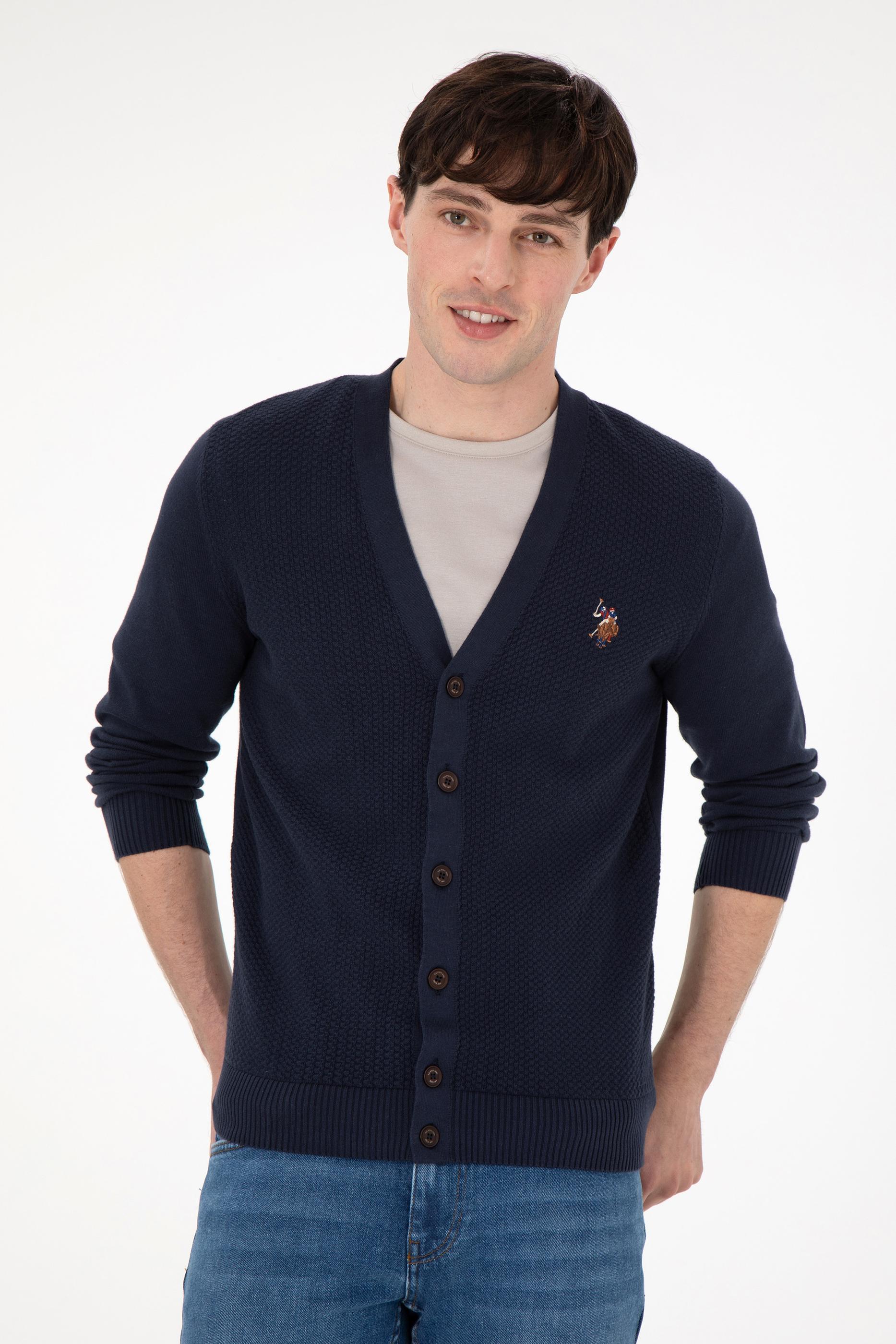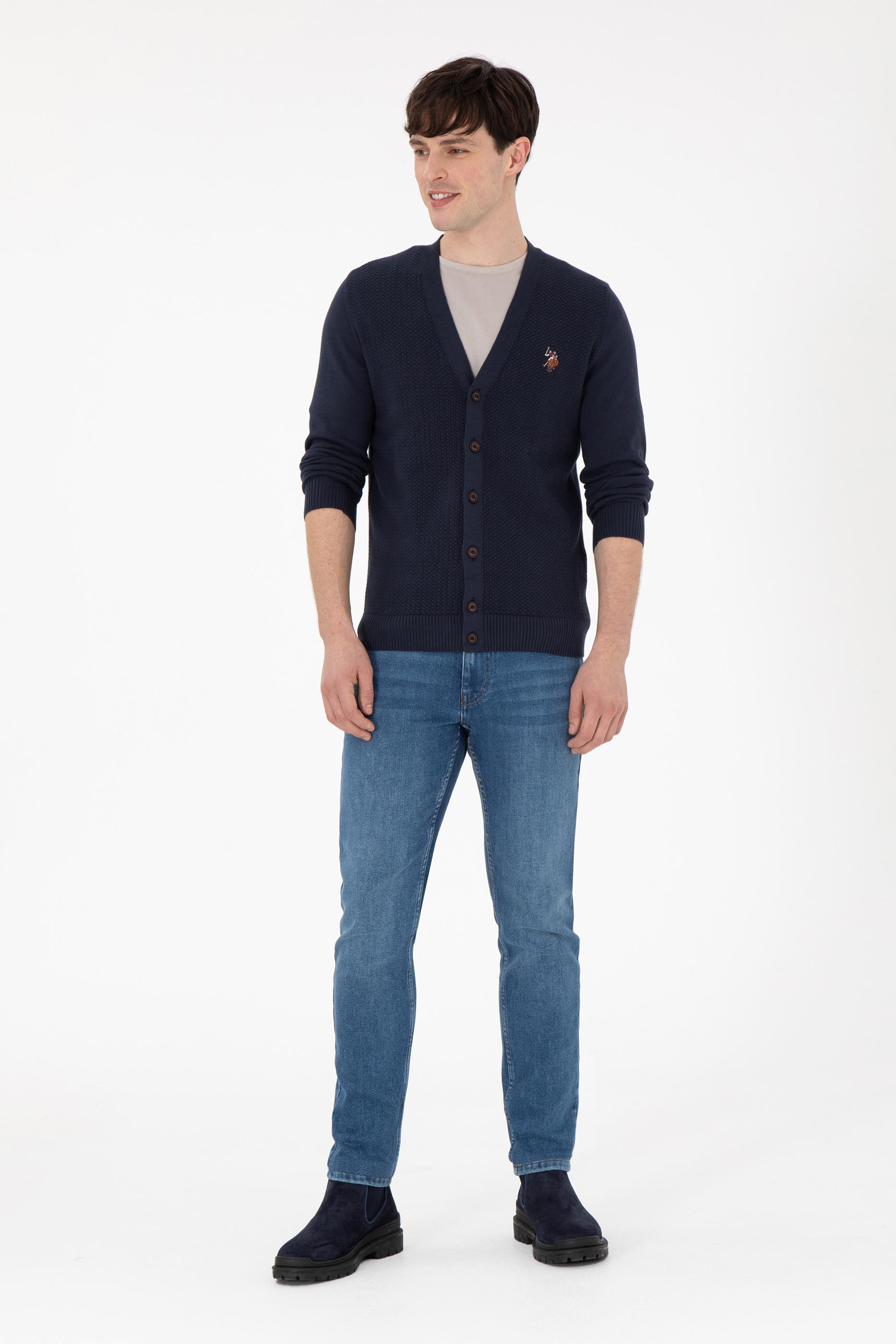 Erkek Lacivert Basic Triko Hırka