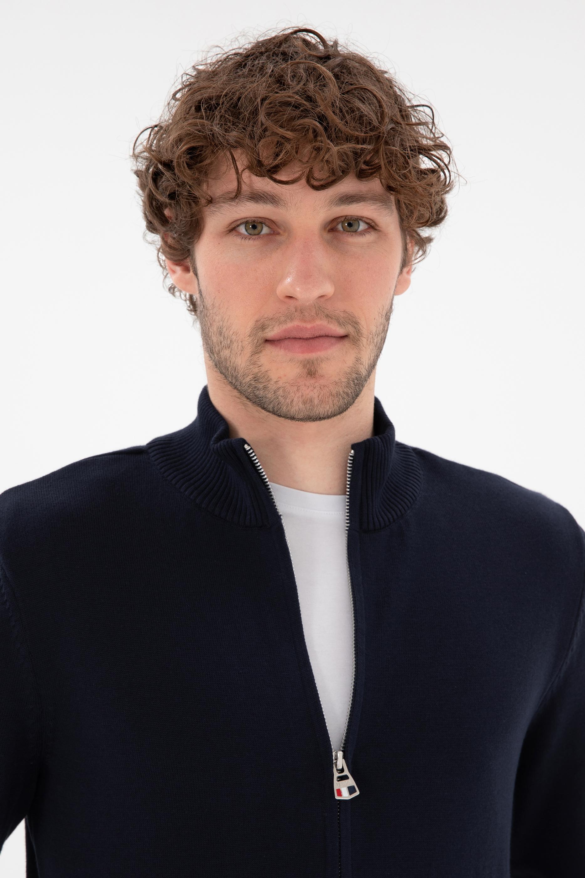Erkek Lacivert Basic Triko Hırka