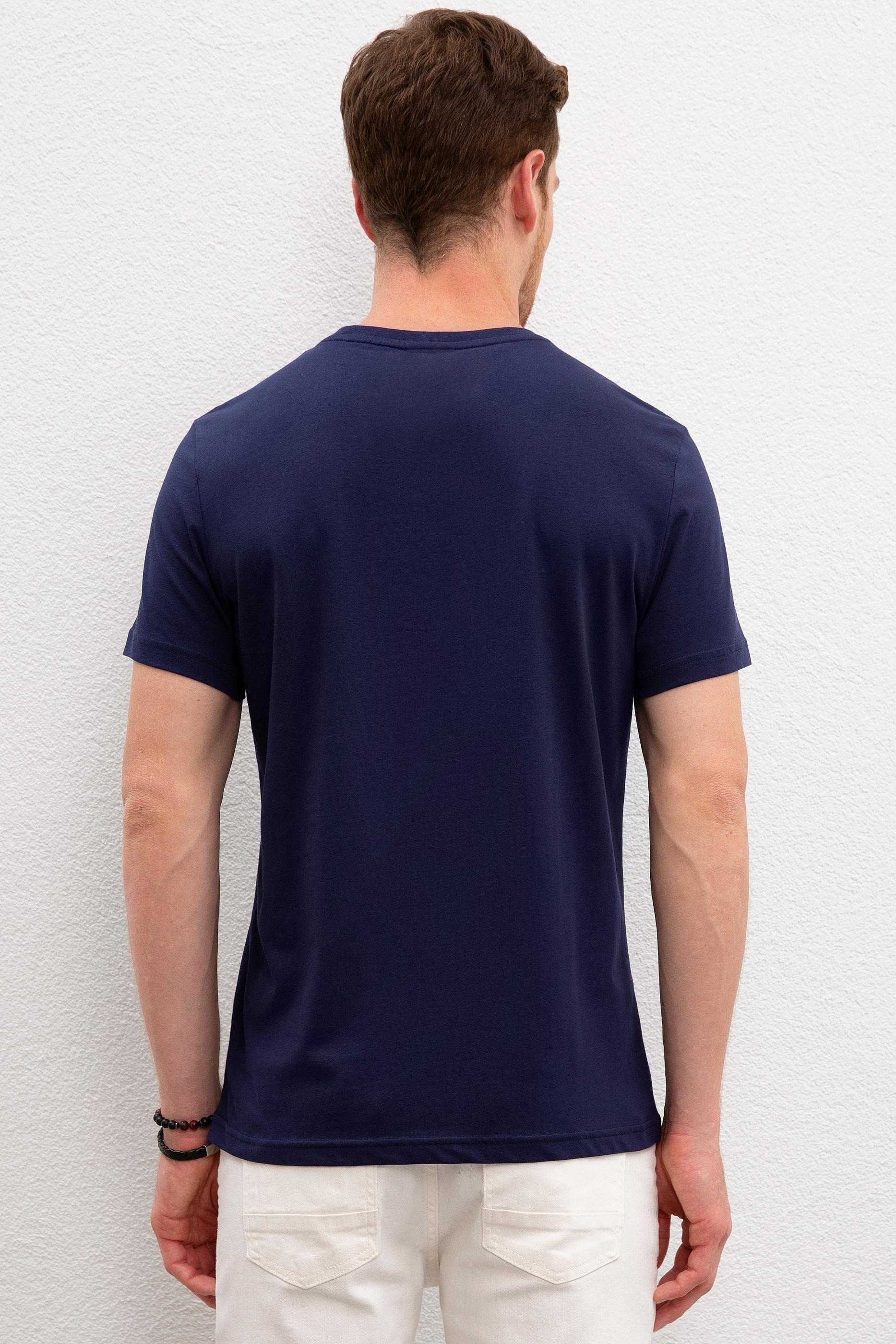 Erkek Lacivert Bisiklet Yaka T-Shirt