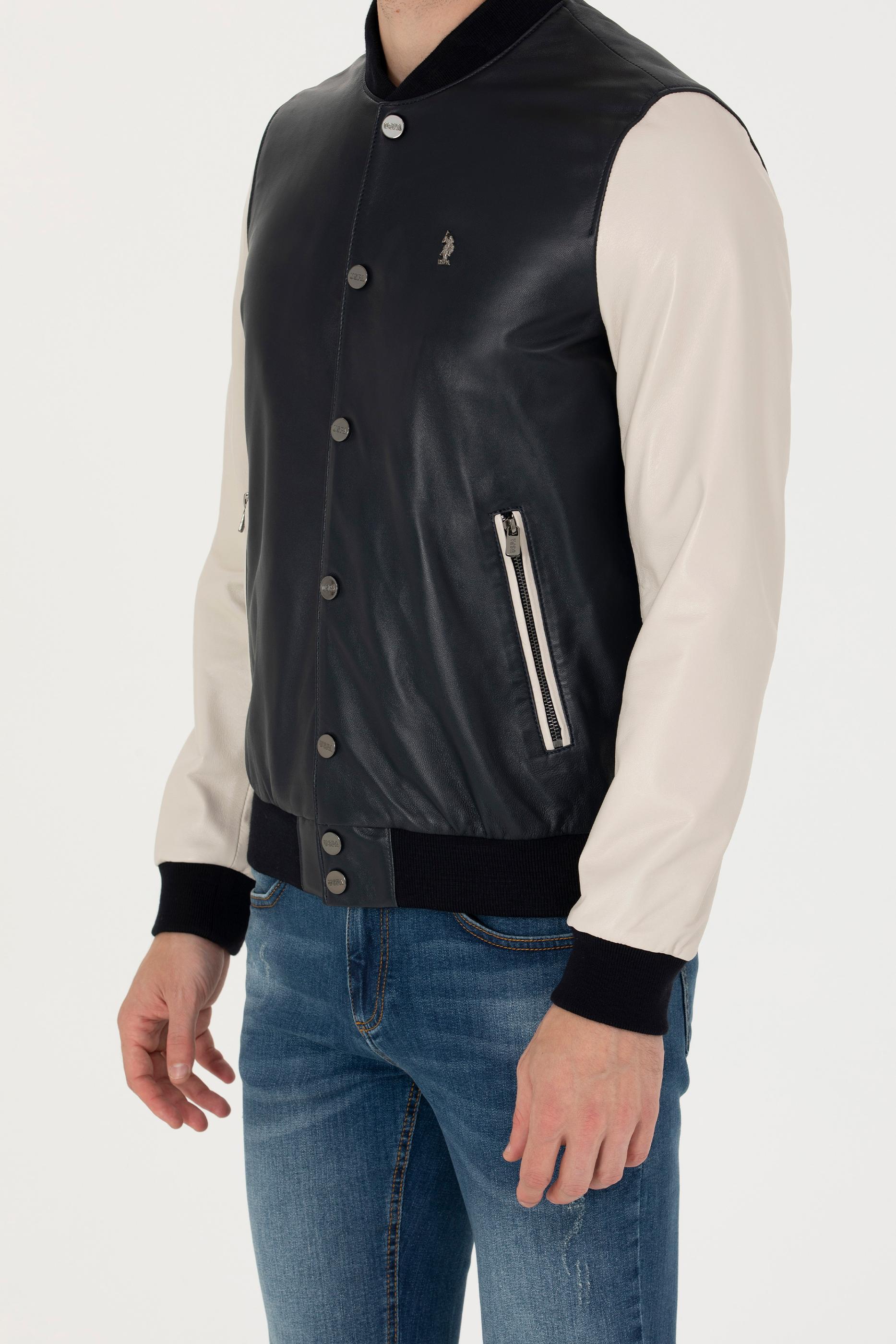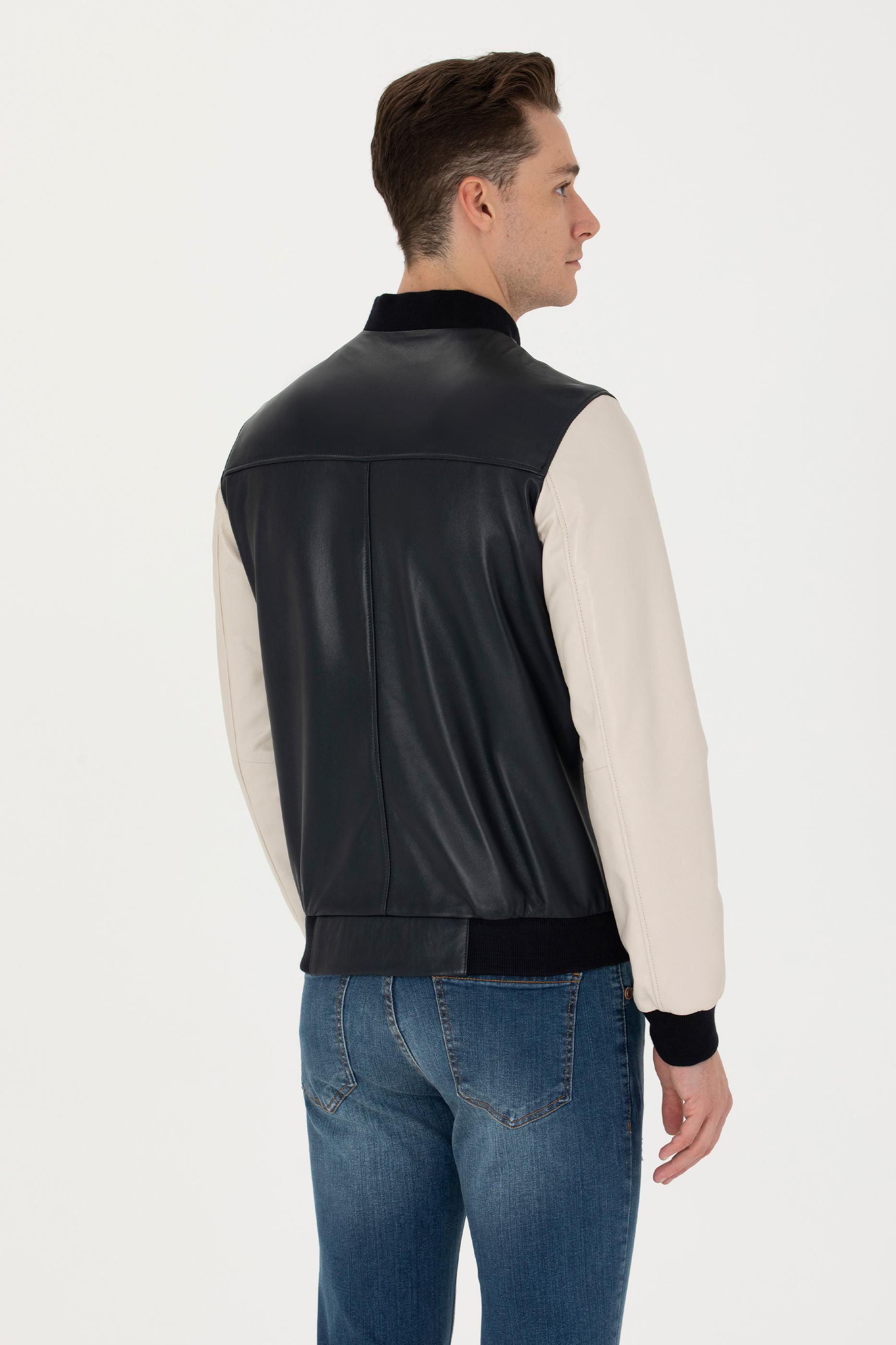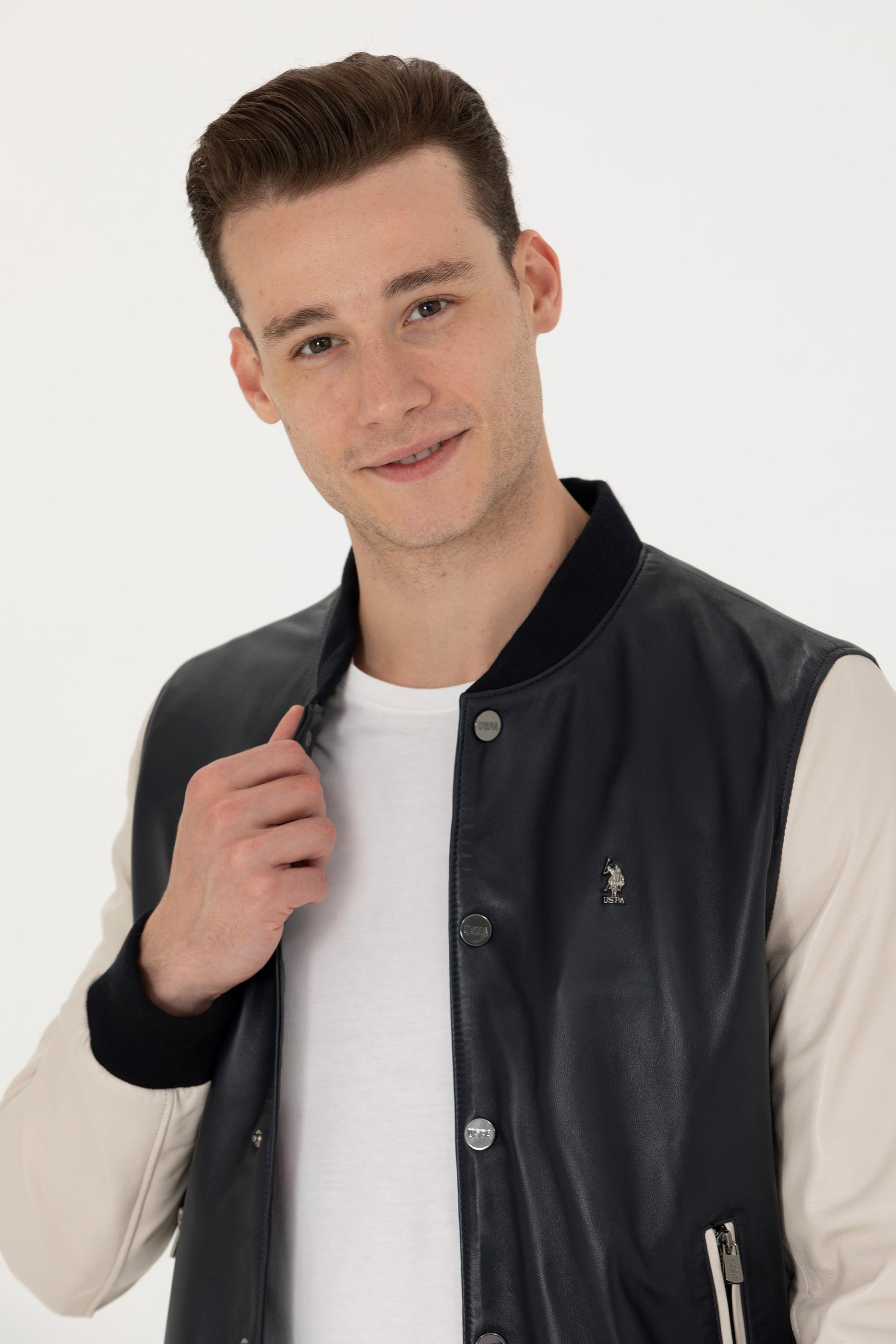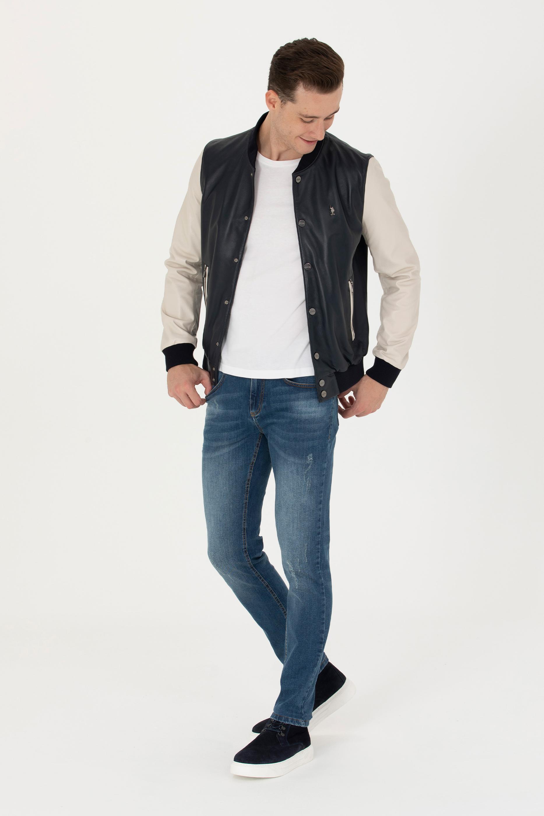 Erkek Lacivert Deri Ceket