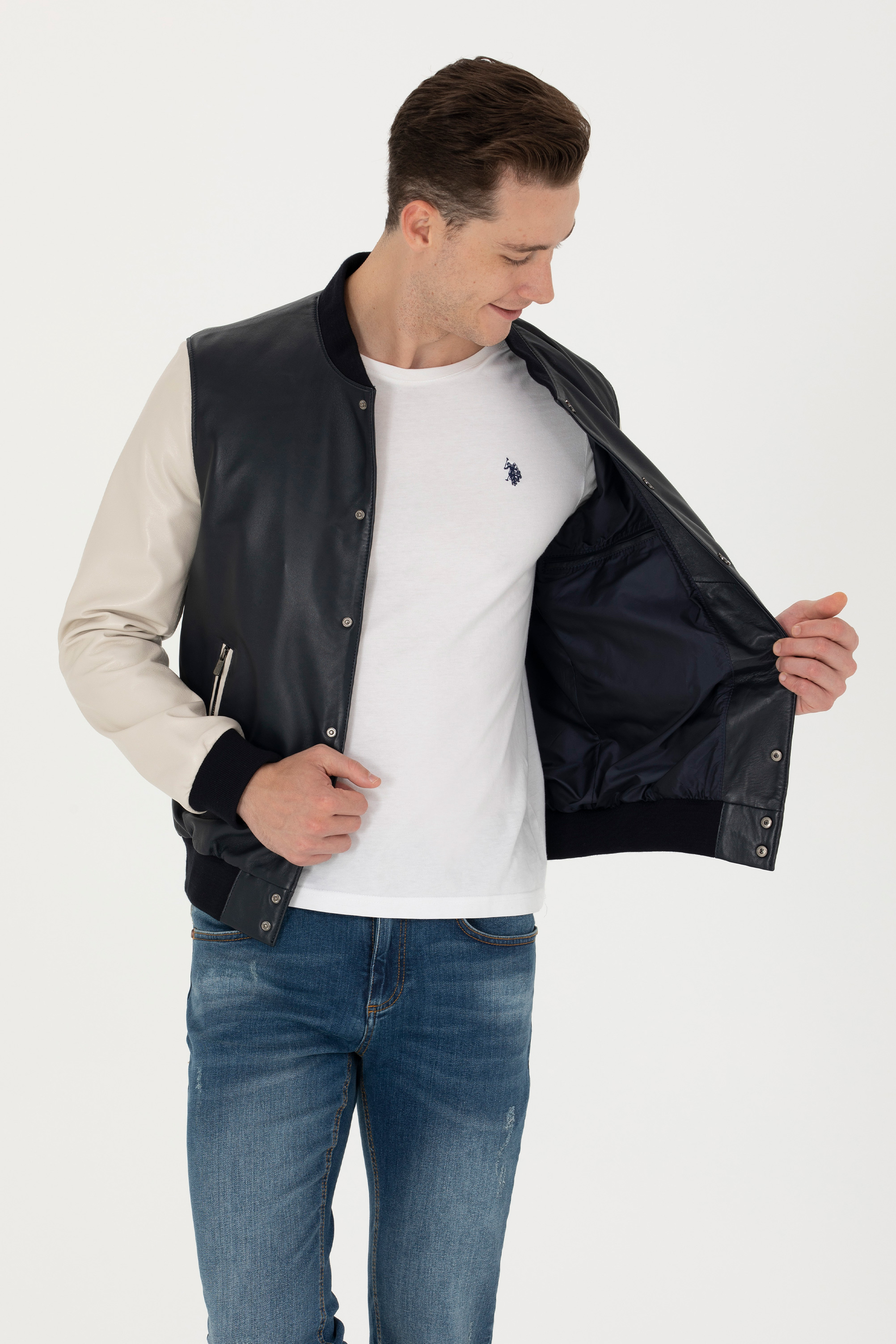- Erkek Lacivert Deri Ceket