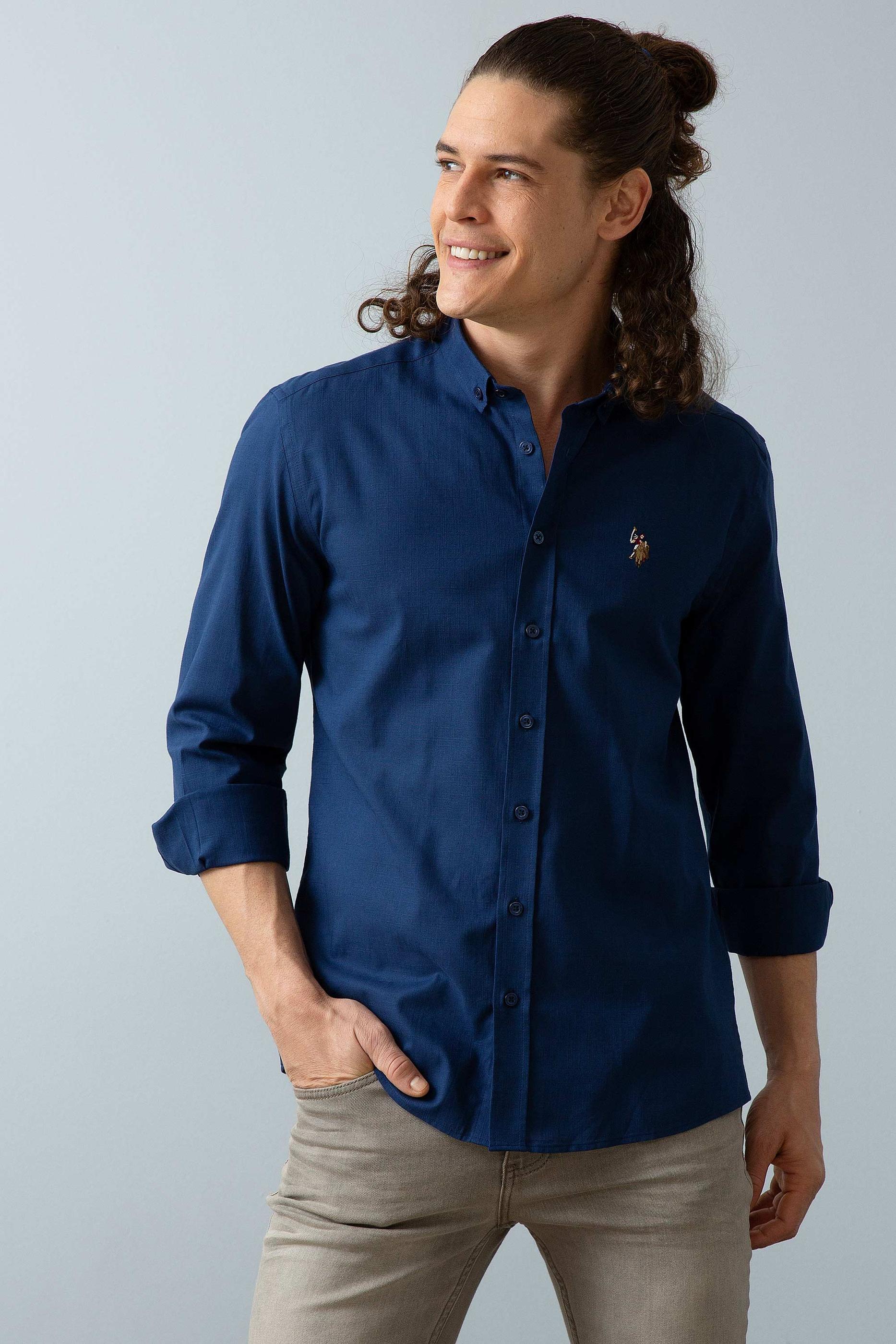 Erkek Lacivert Gömlek Uzunkol Basic