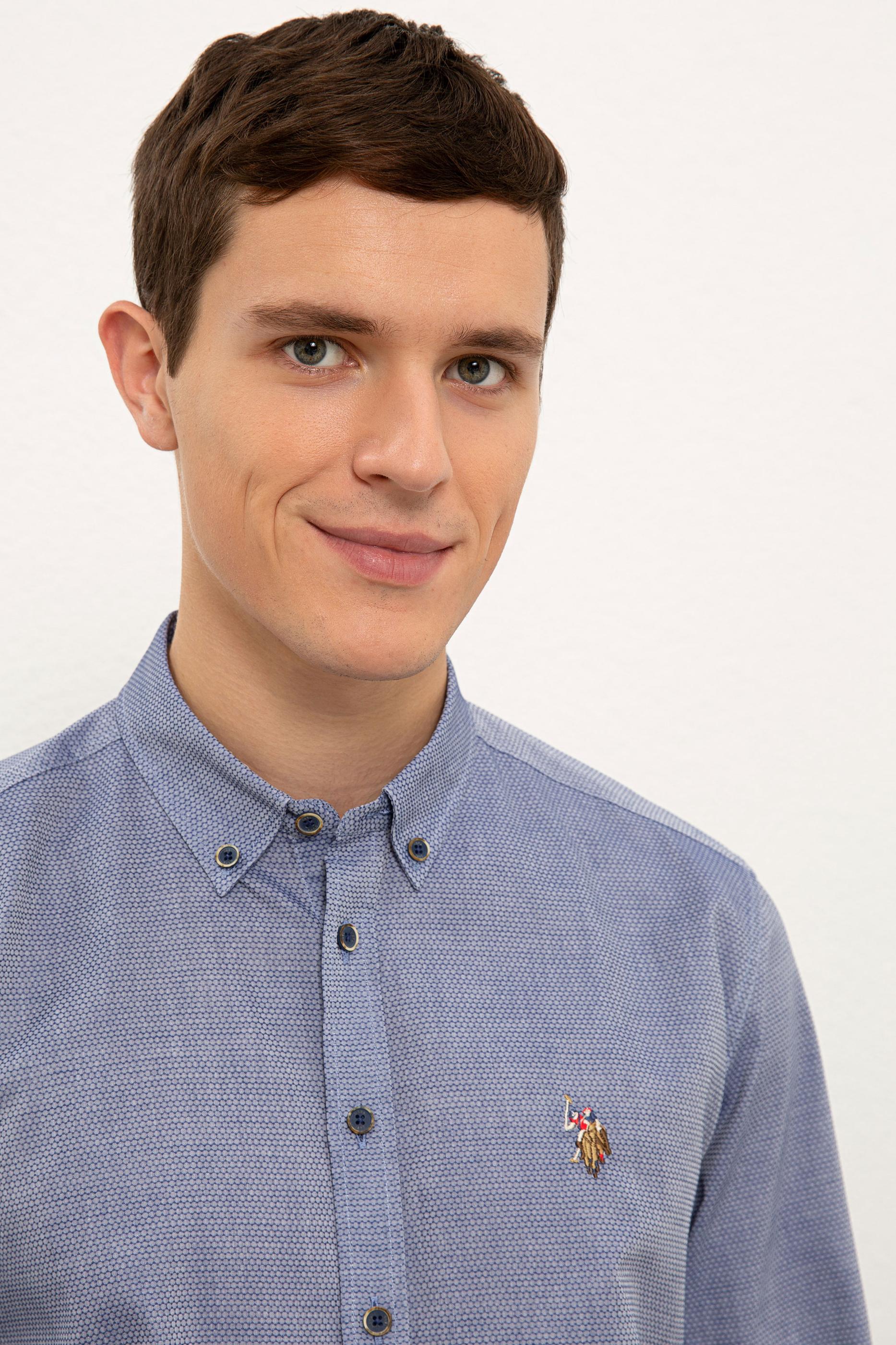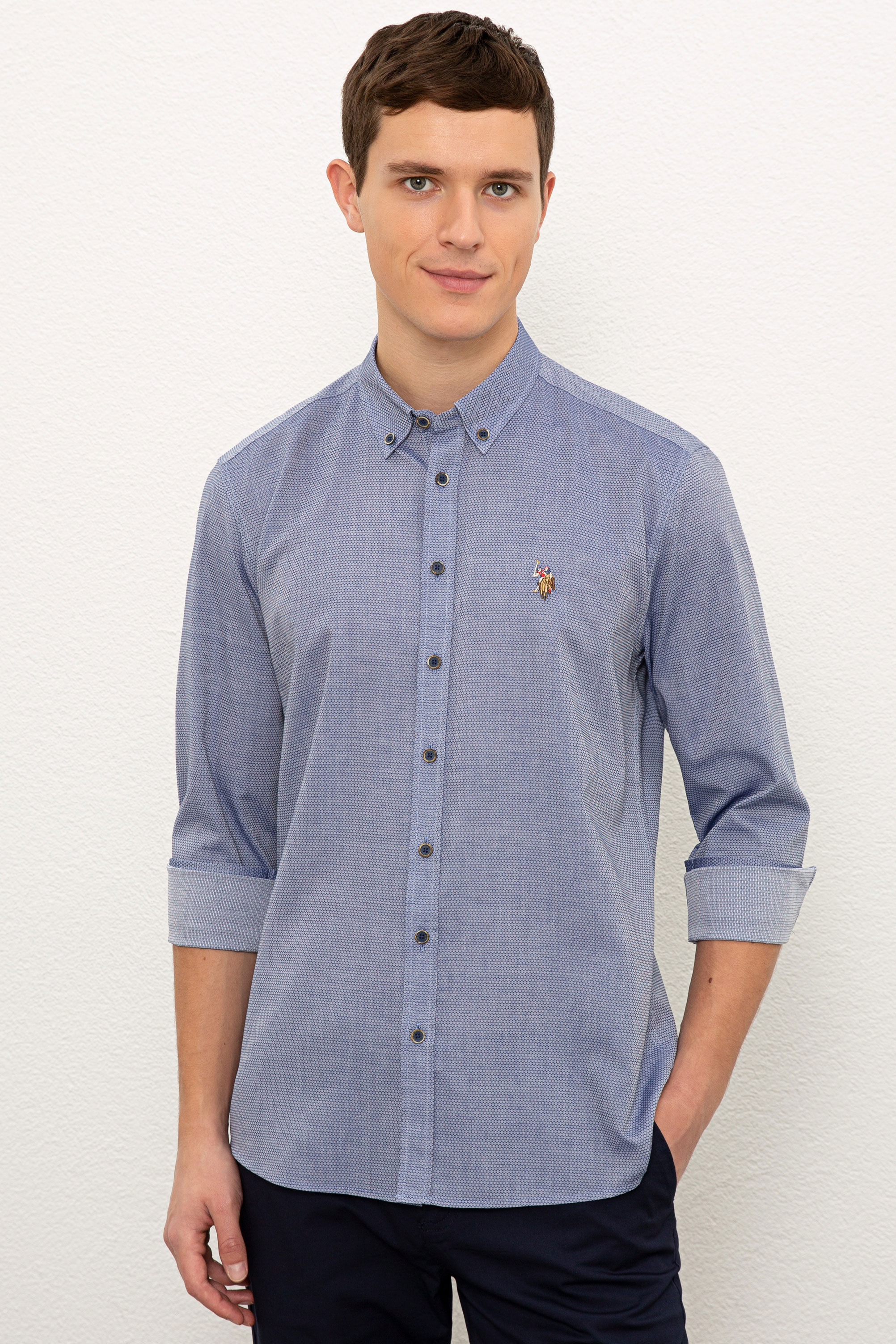 Erkek Lacivert Uzun Kollu Basic Gömlek