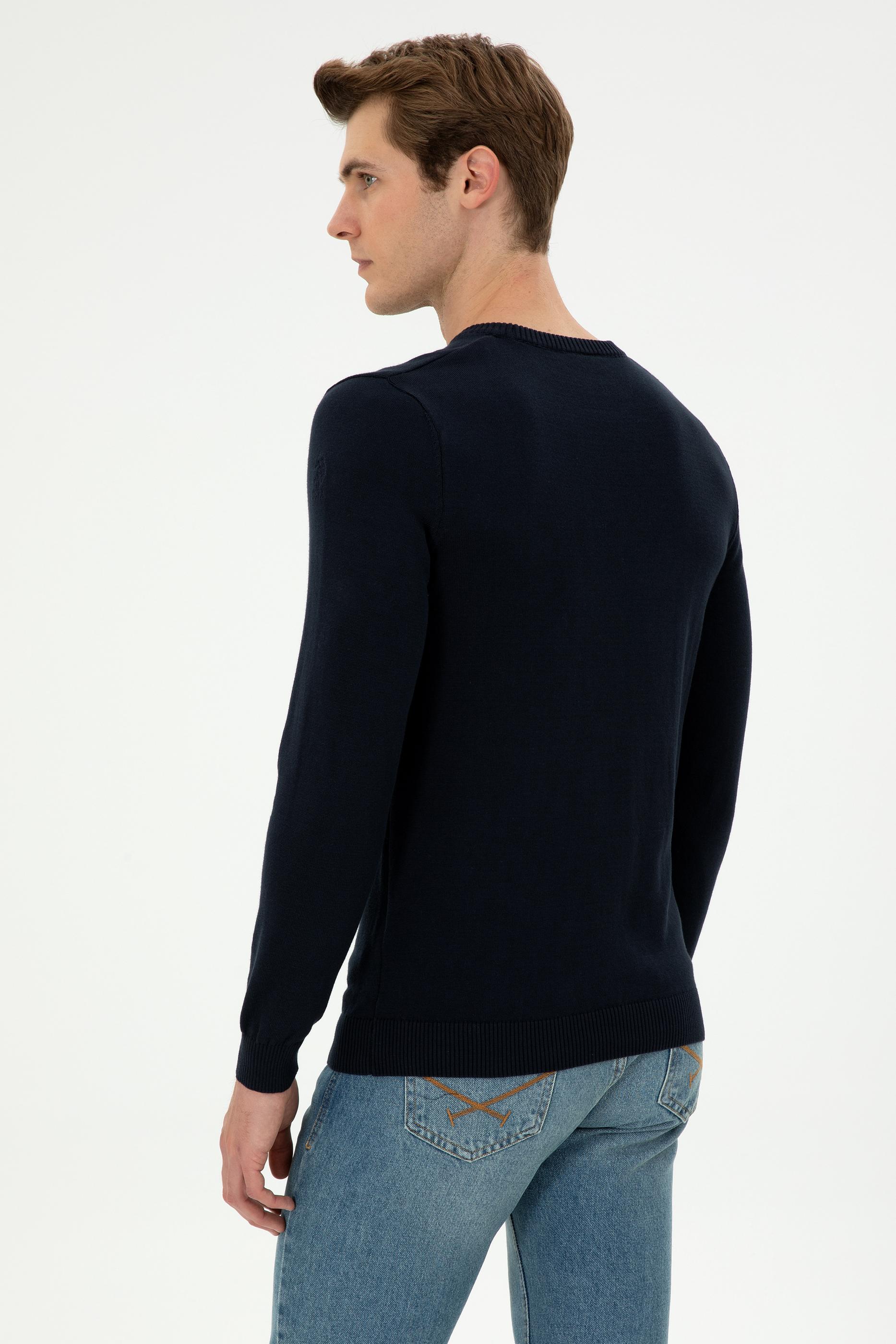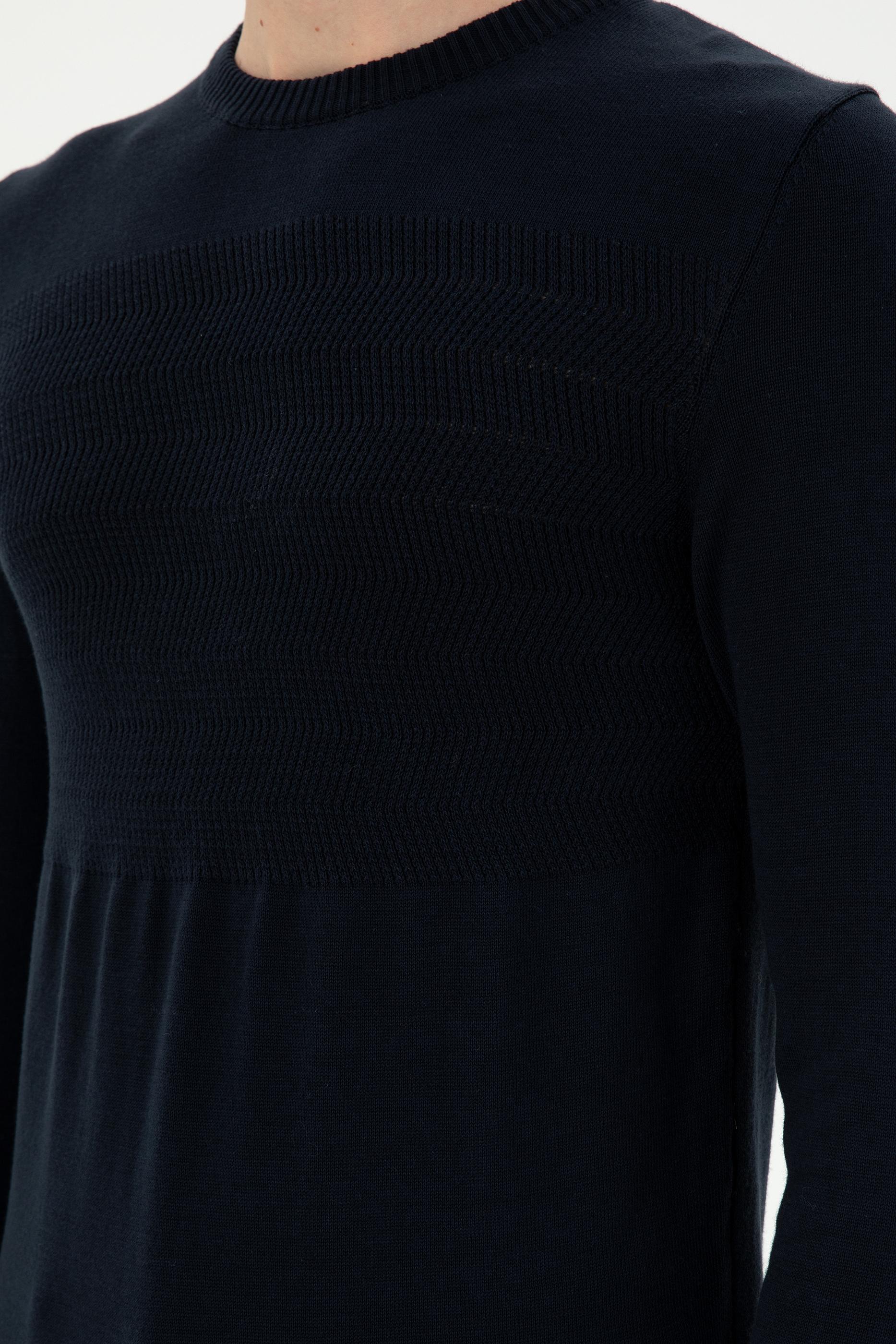 Erkek Slim Fit Bisiklet Yaka Lacivert Kazak