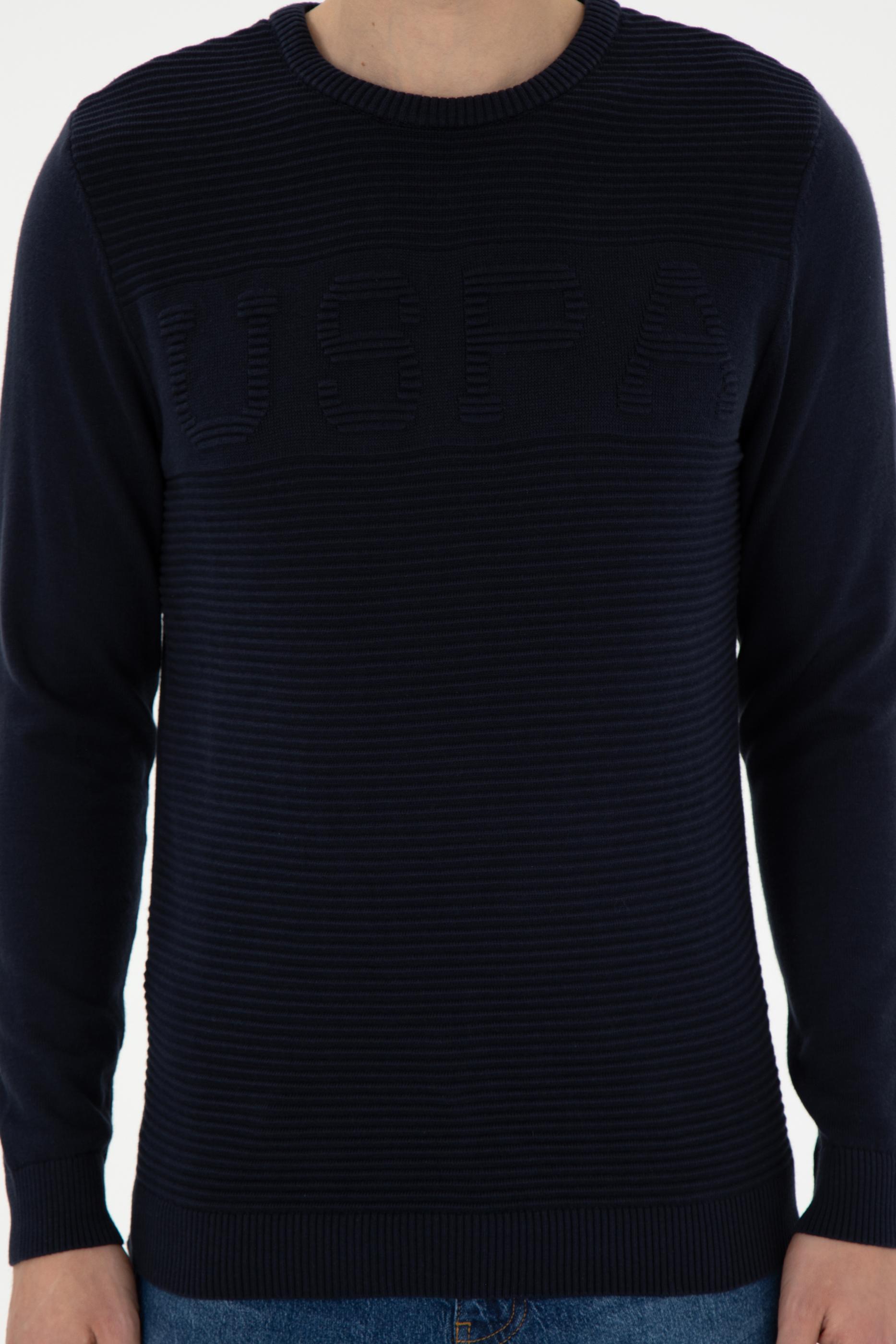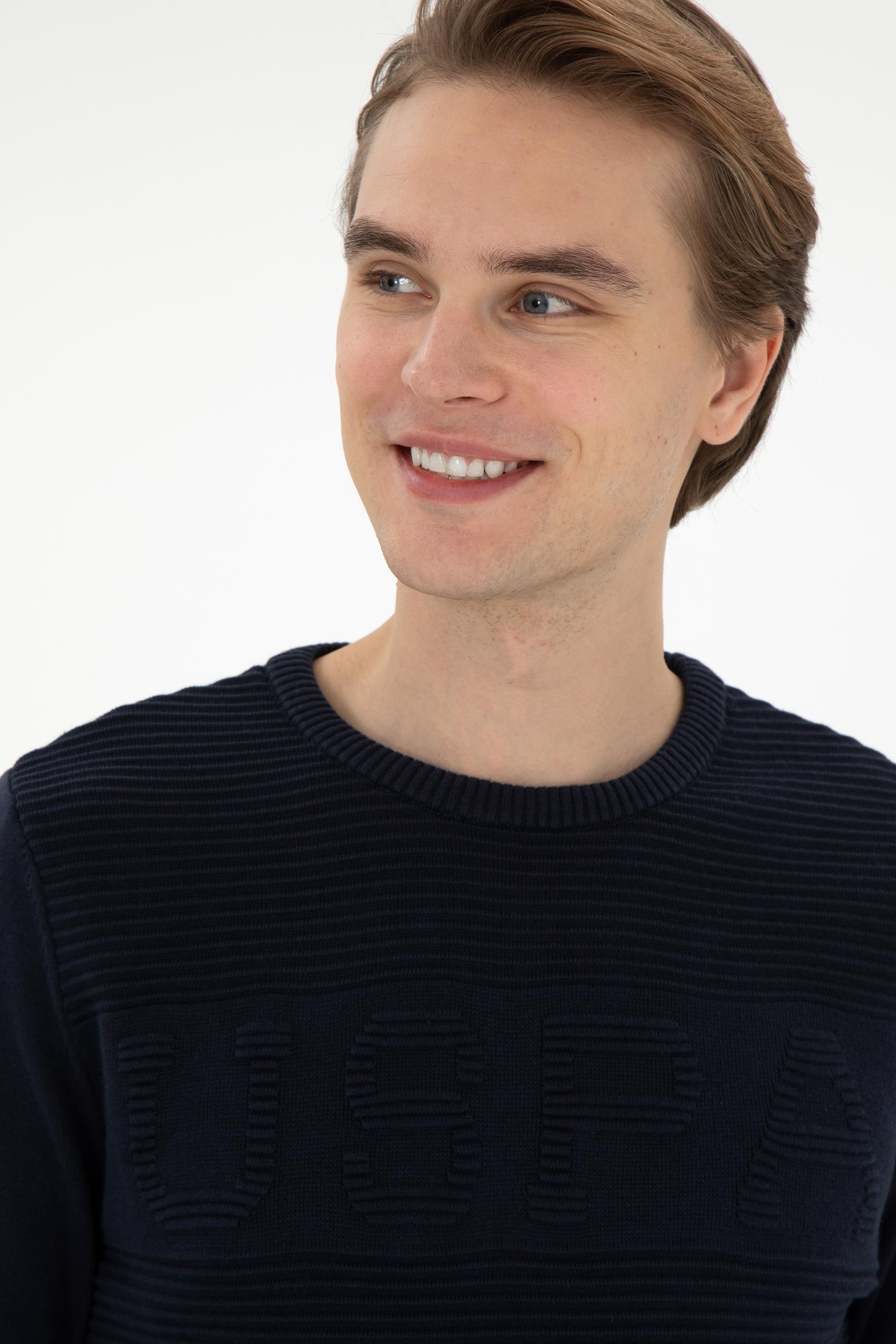 Erkek Slim Fit Bisiklet Yaka Lacivert Kazak