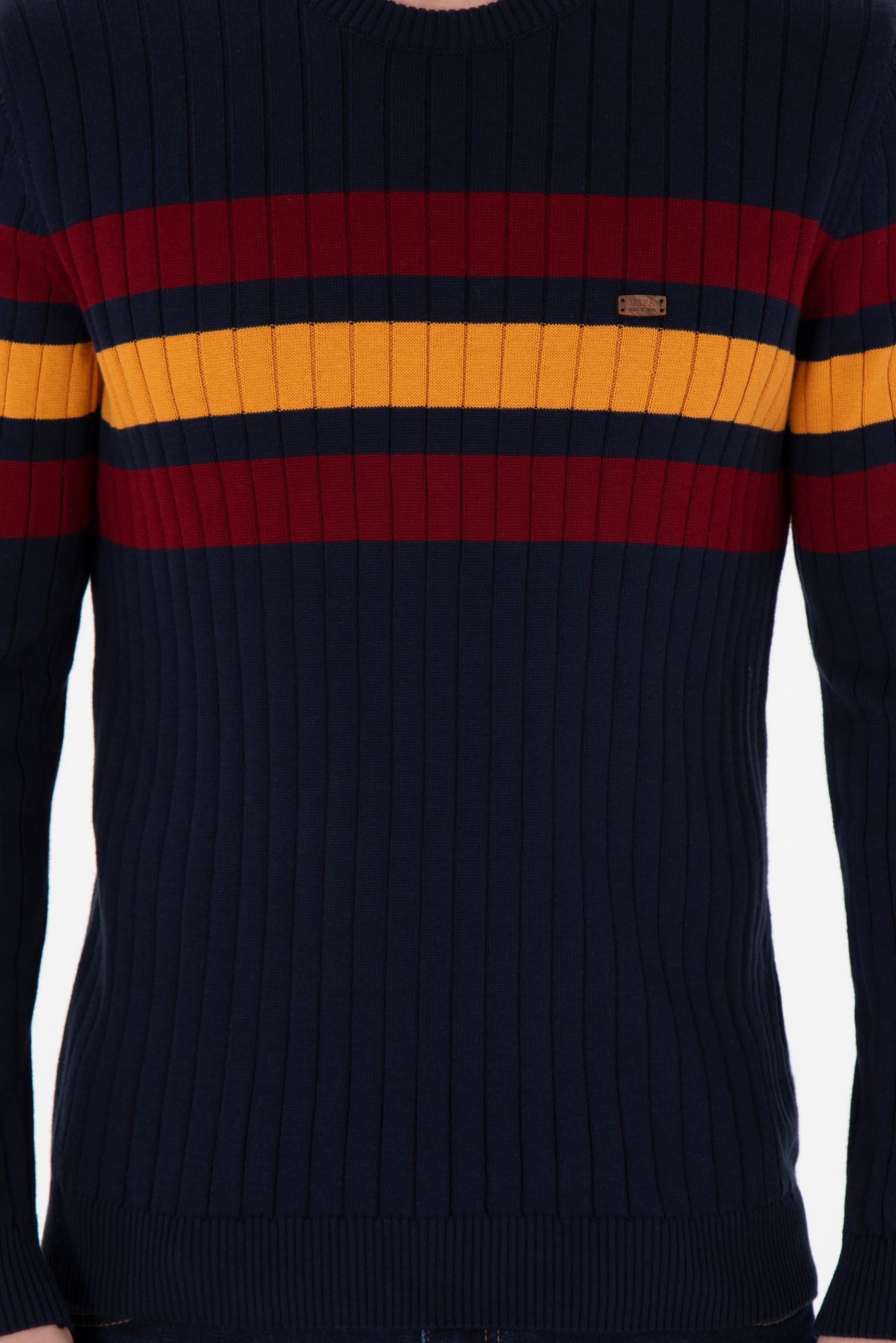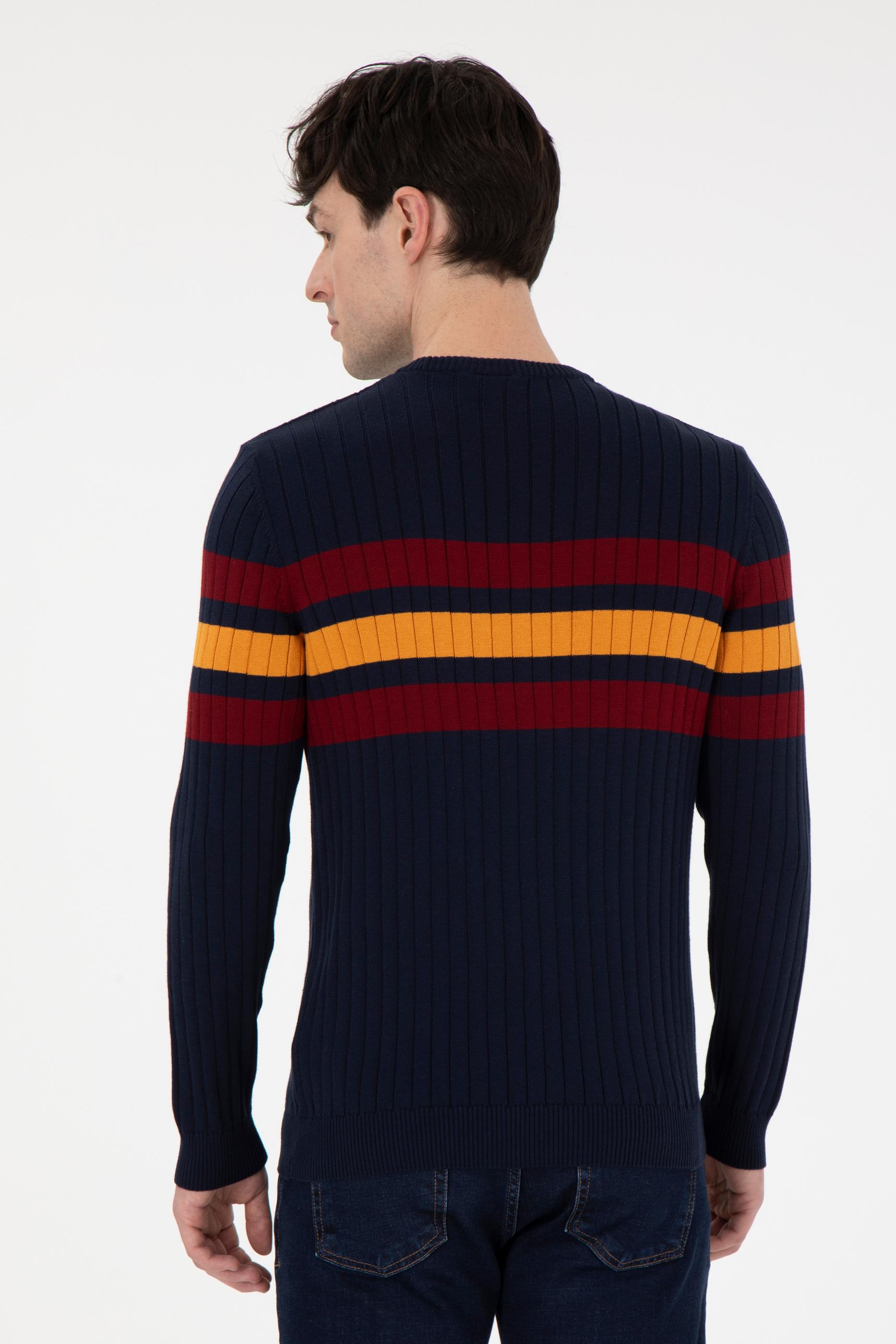Erkek Slim Fit Bisiklet Yaka Lacivert Kazak