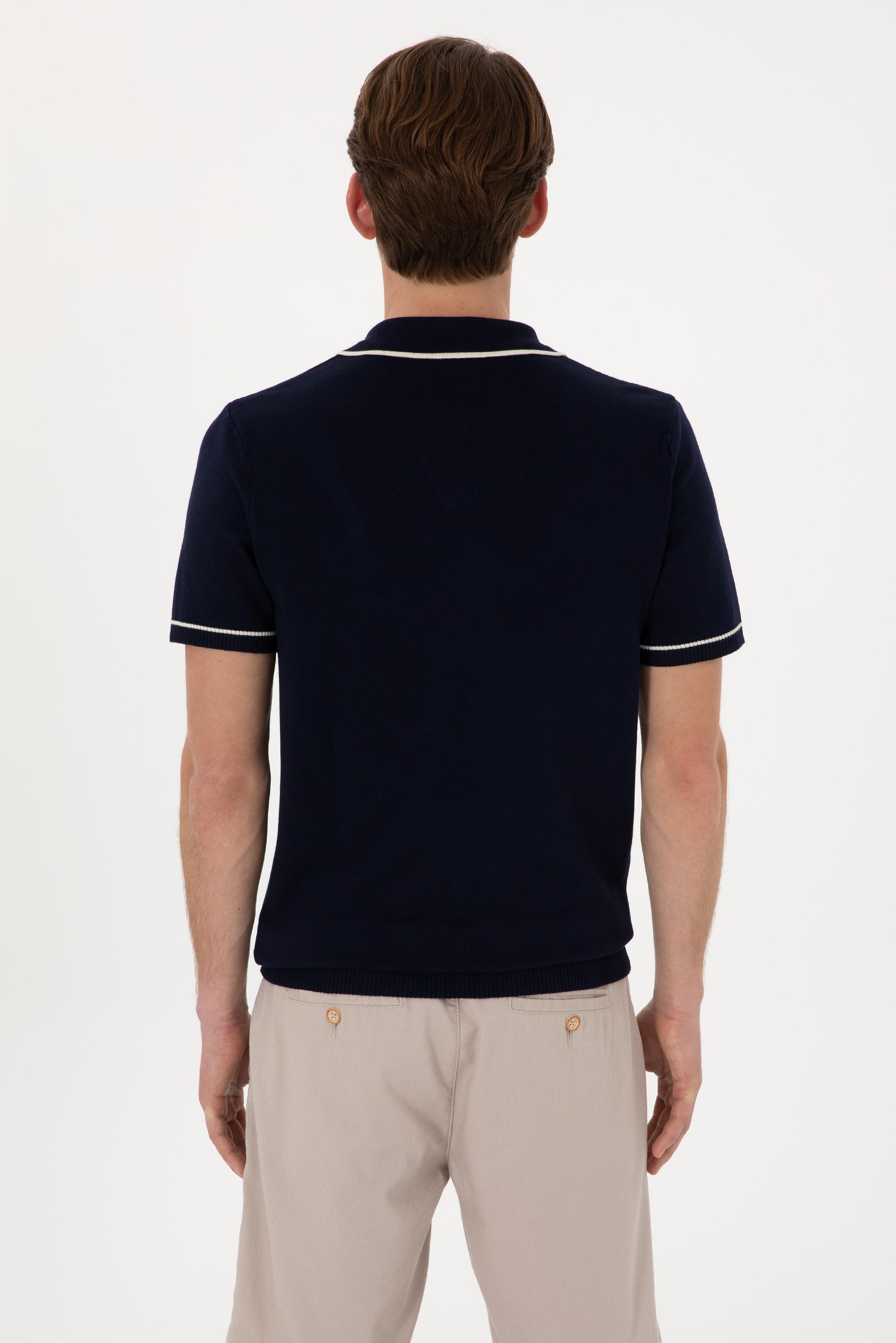 Erkek Slim Fit Polo Yaka Lacivert Tişört