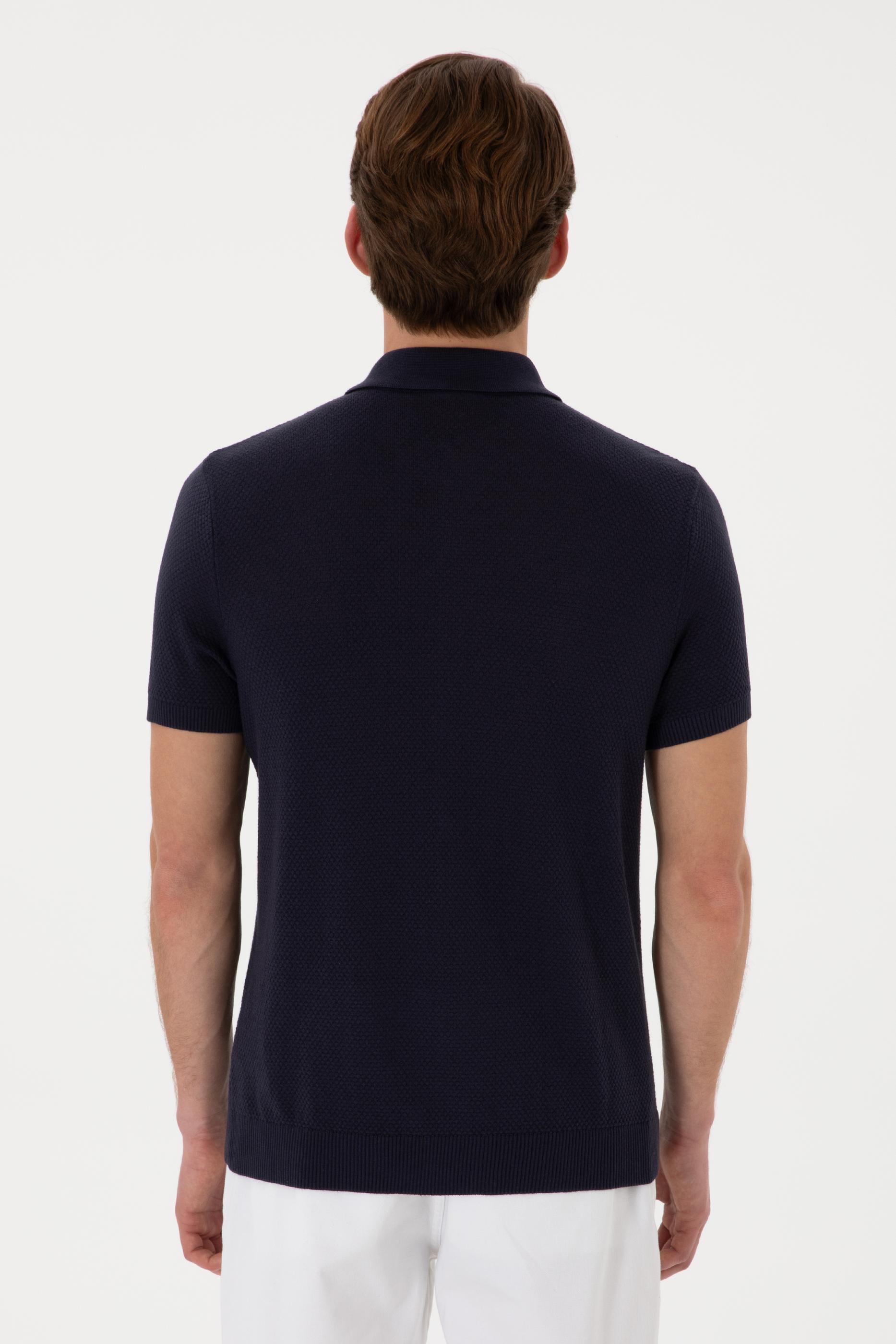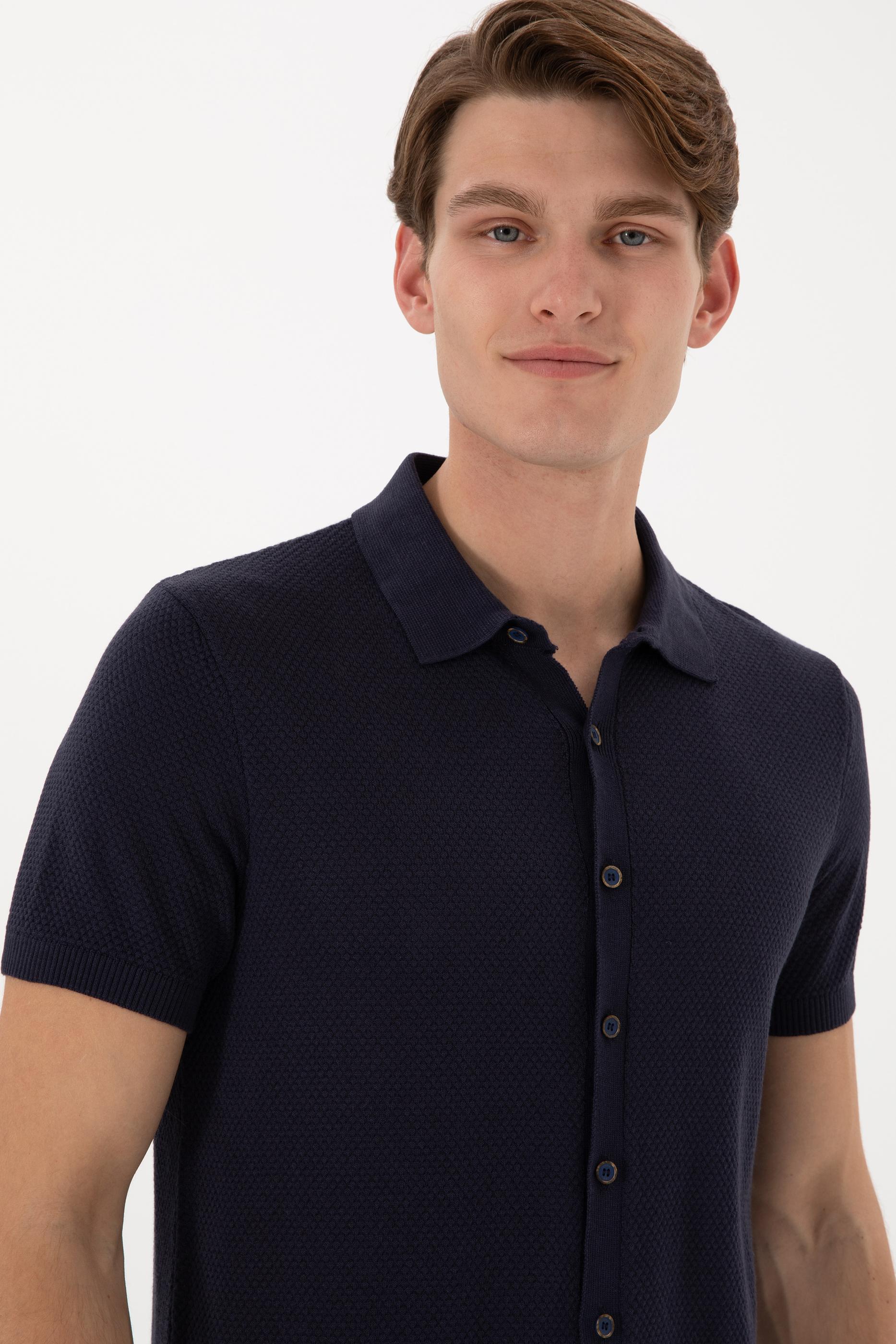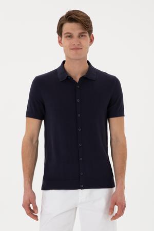 Erkek Regular Fit Lacivert Düğmeli Triko Tişört