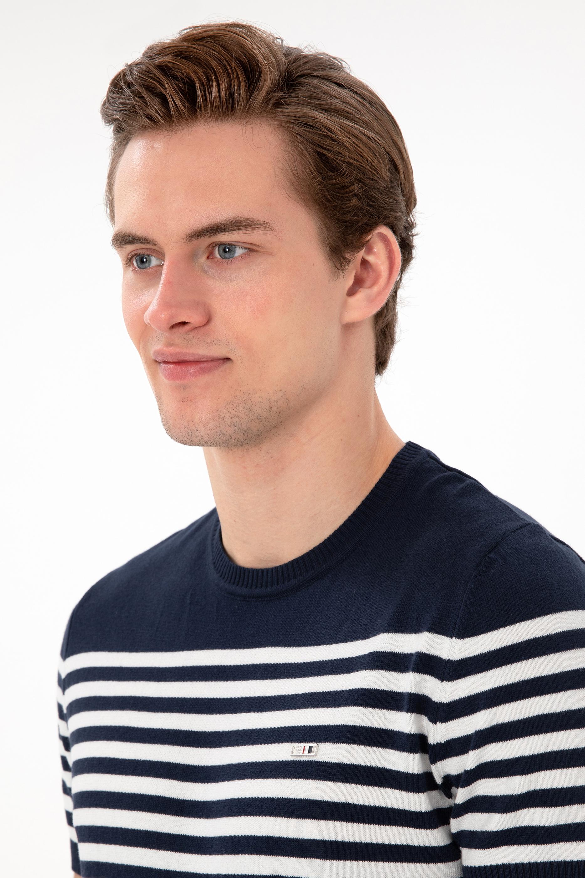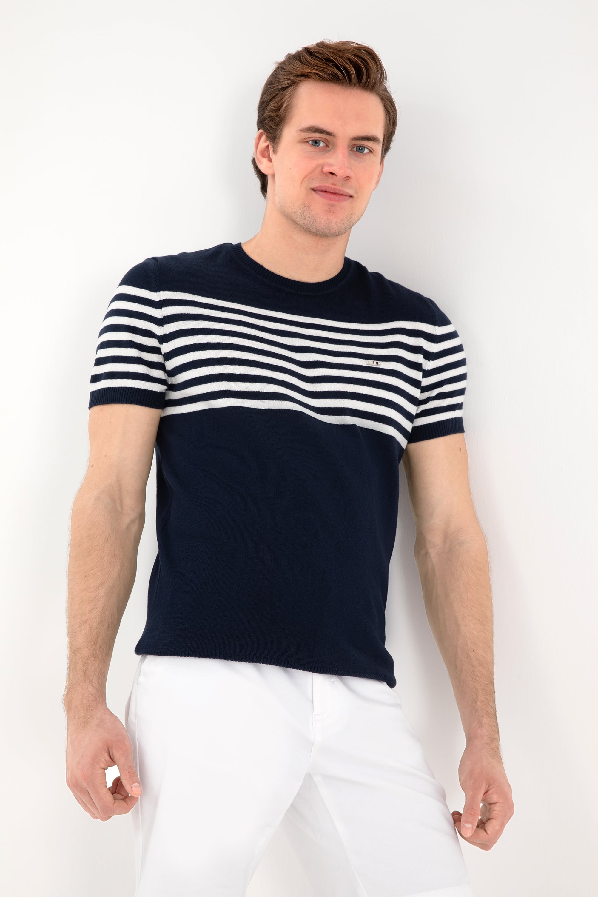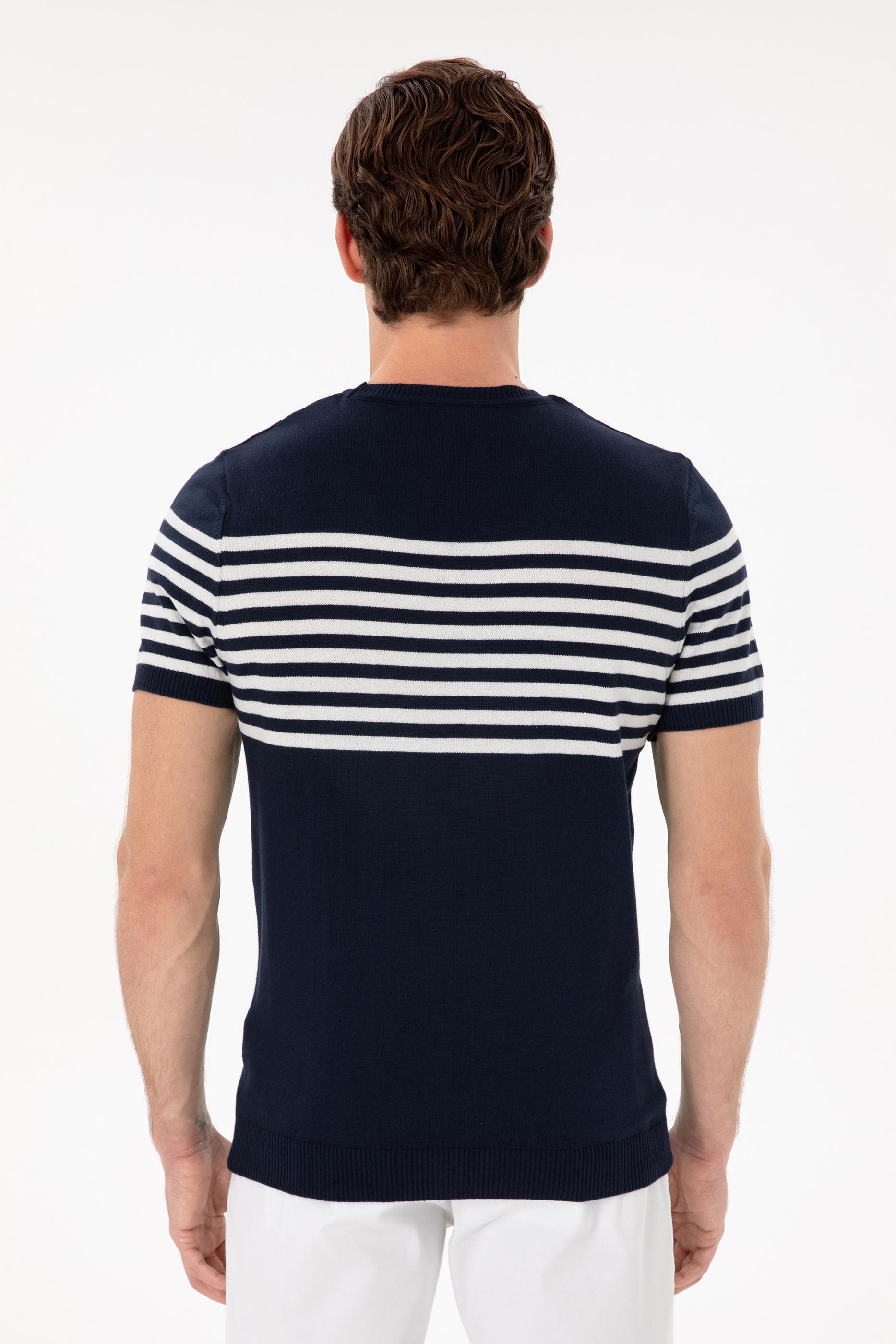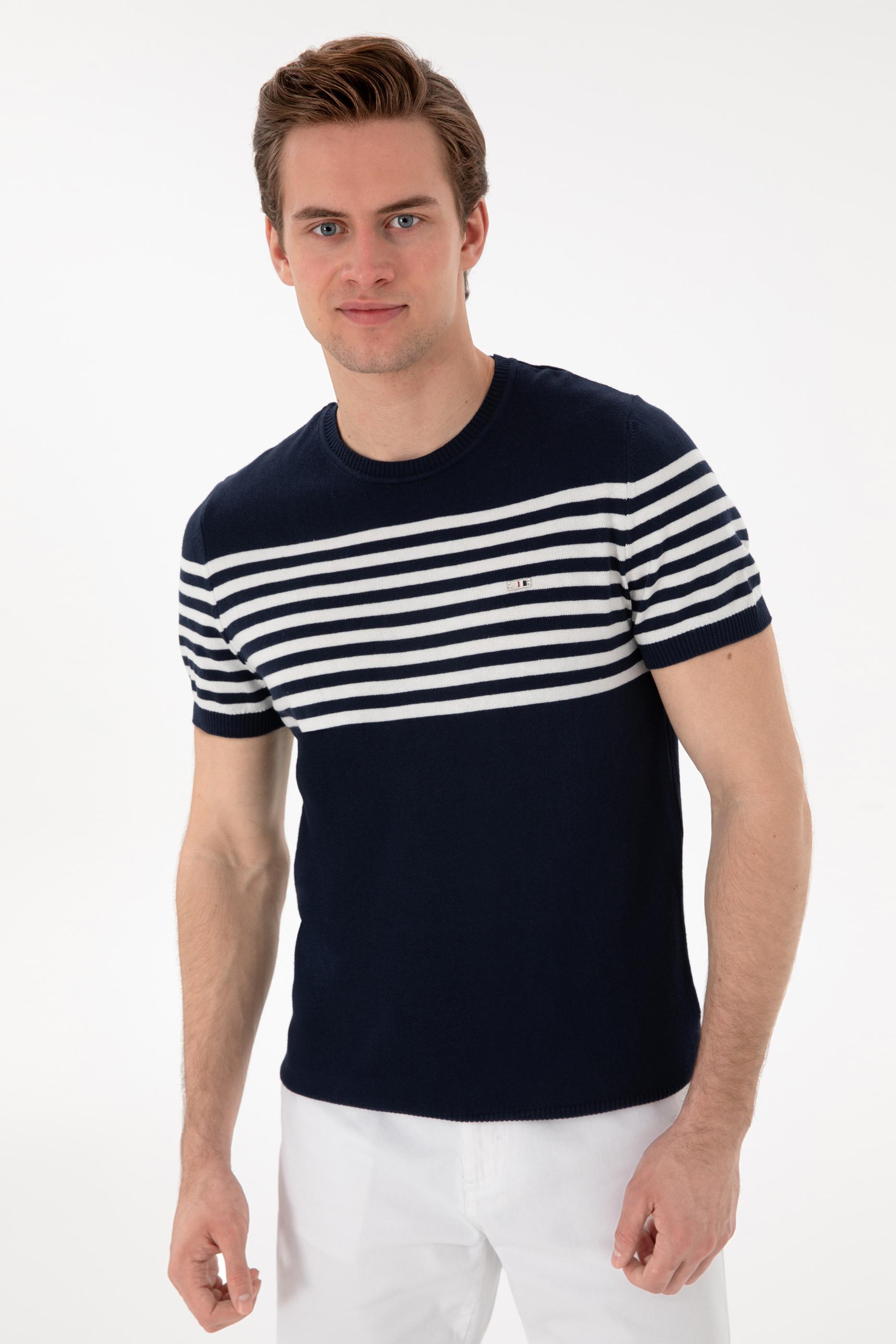 Erkek Slim Fit Bisiklet Yaka Lacivert Triko Tişört