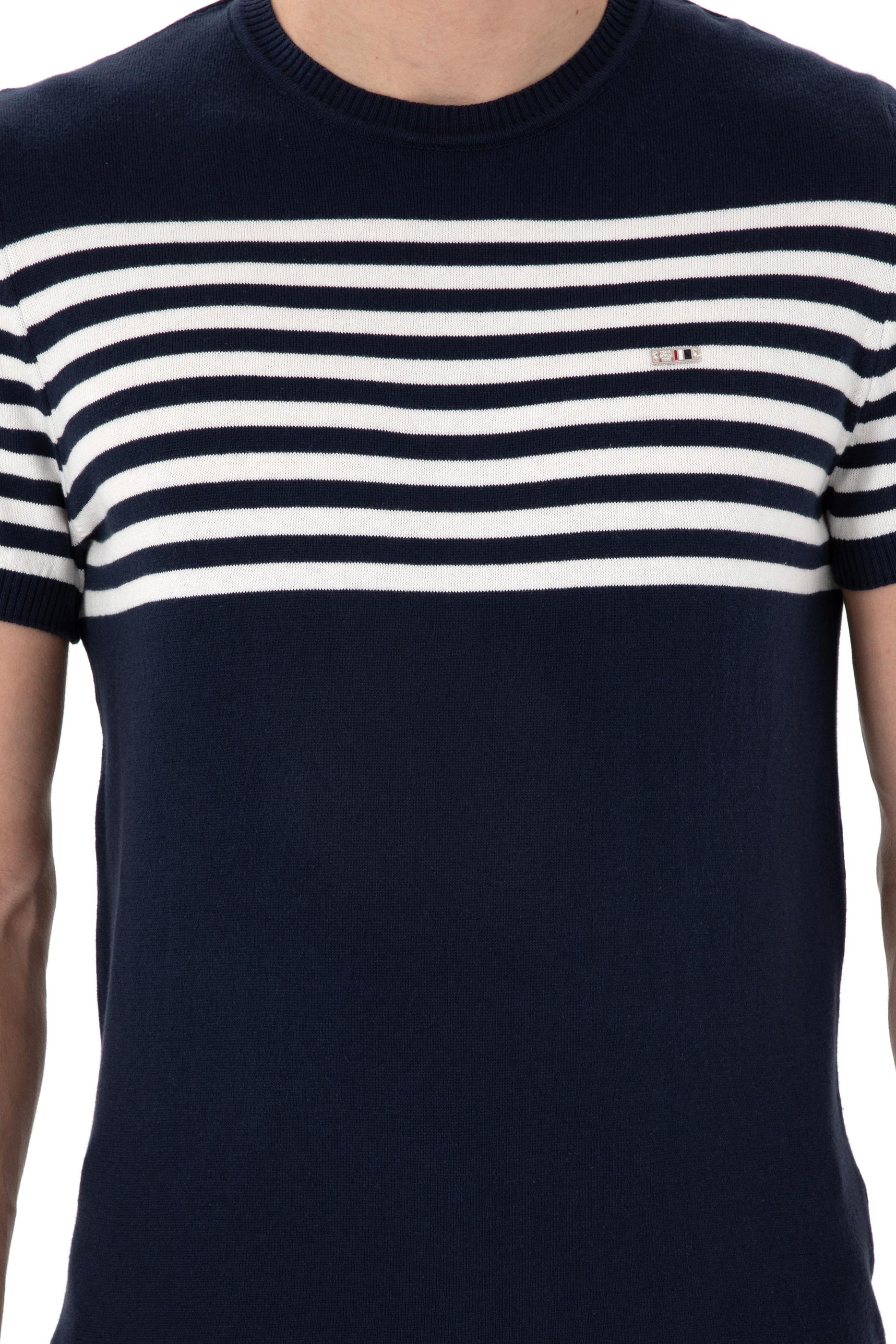 - Erkek Slim Fit Bisiklet Yaka Lacivert Triko Tişört