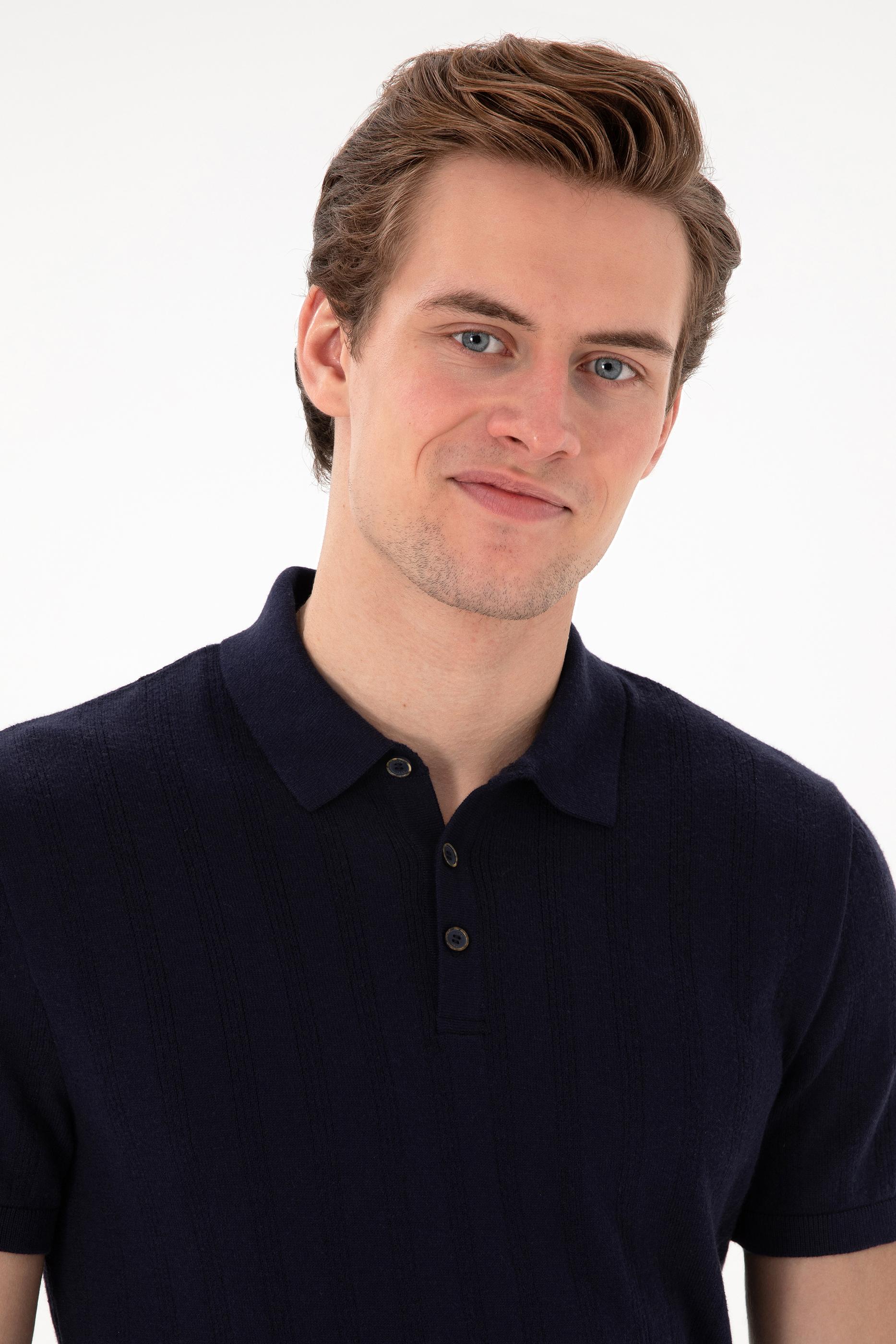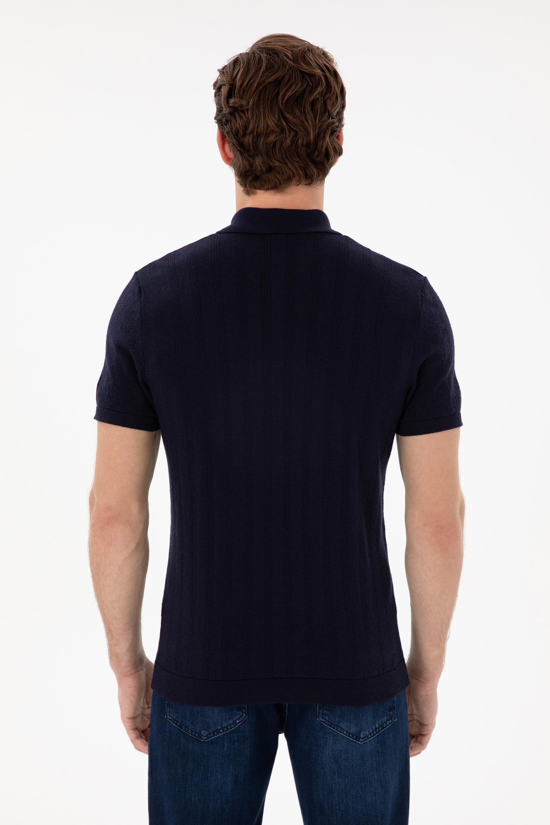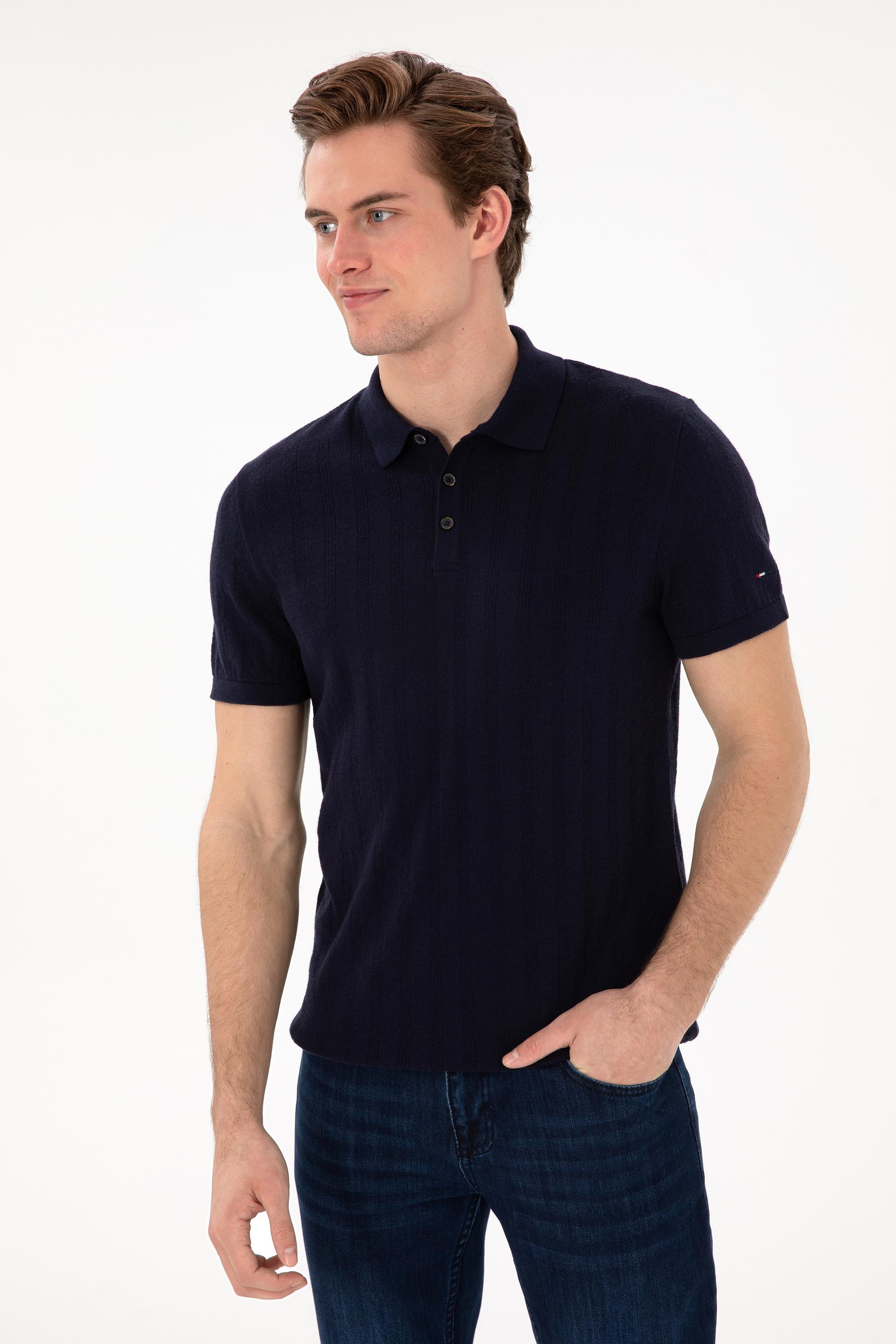 Erkek Slim Fit Polo Yaka Lacivert Triko Tişört