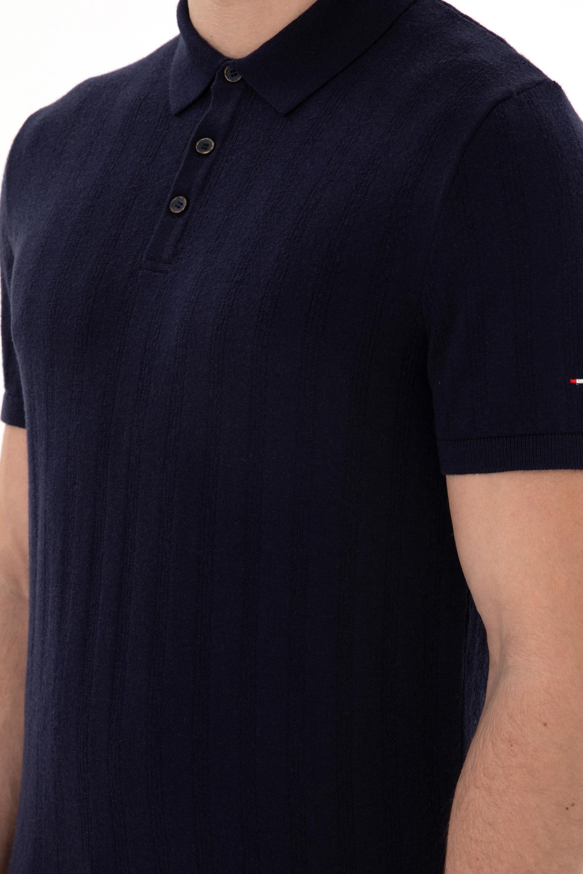 - Erkek Slim Fit Polo Yaka Lacivert Triko Tişört