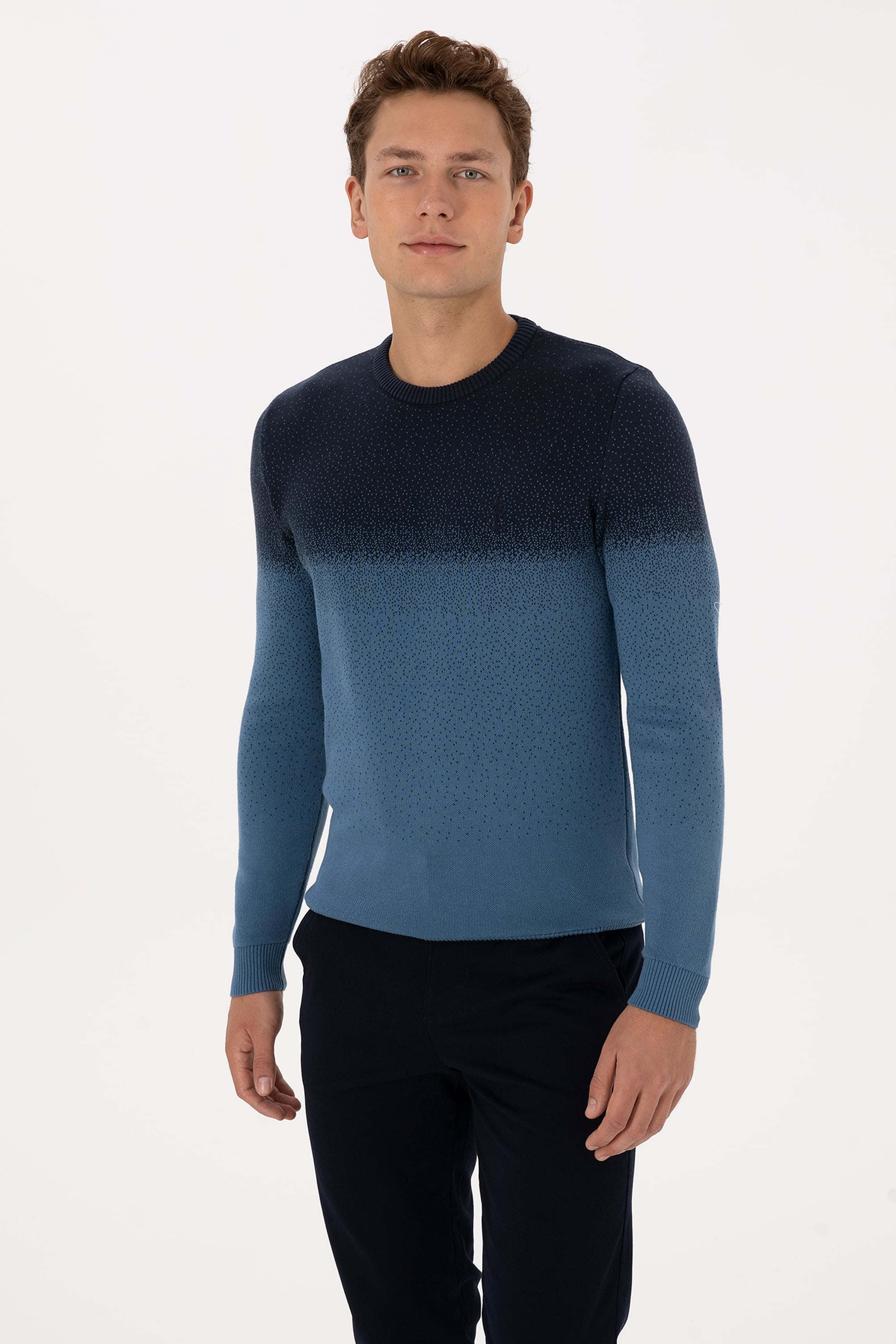 - Erkek Regular Fit Bisiklet Yaka Lacivert Kazak