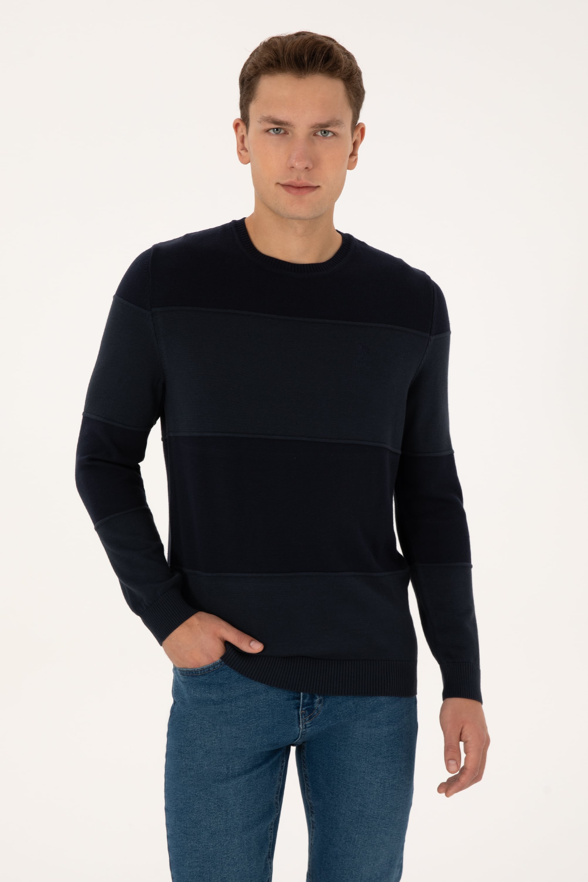 - Erkek Regular Fit Bisiklet Yaka Lacivert Kazak