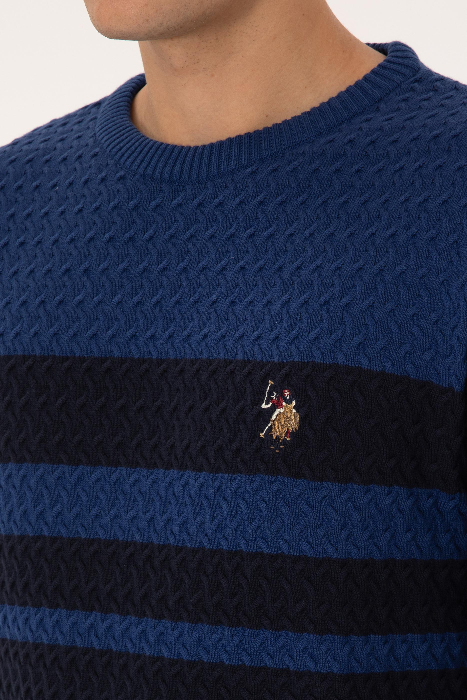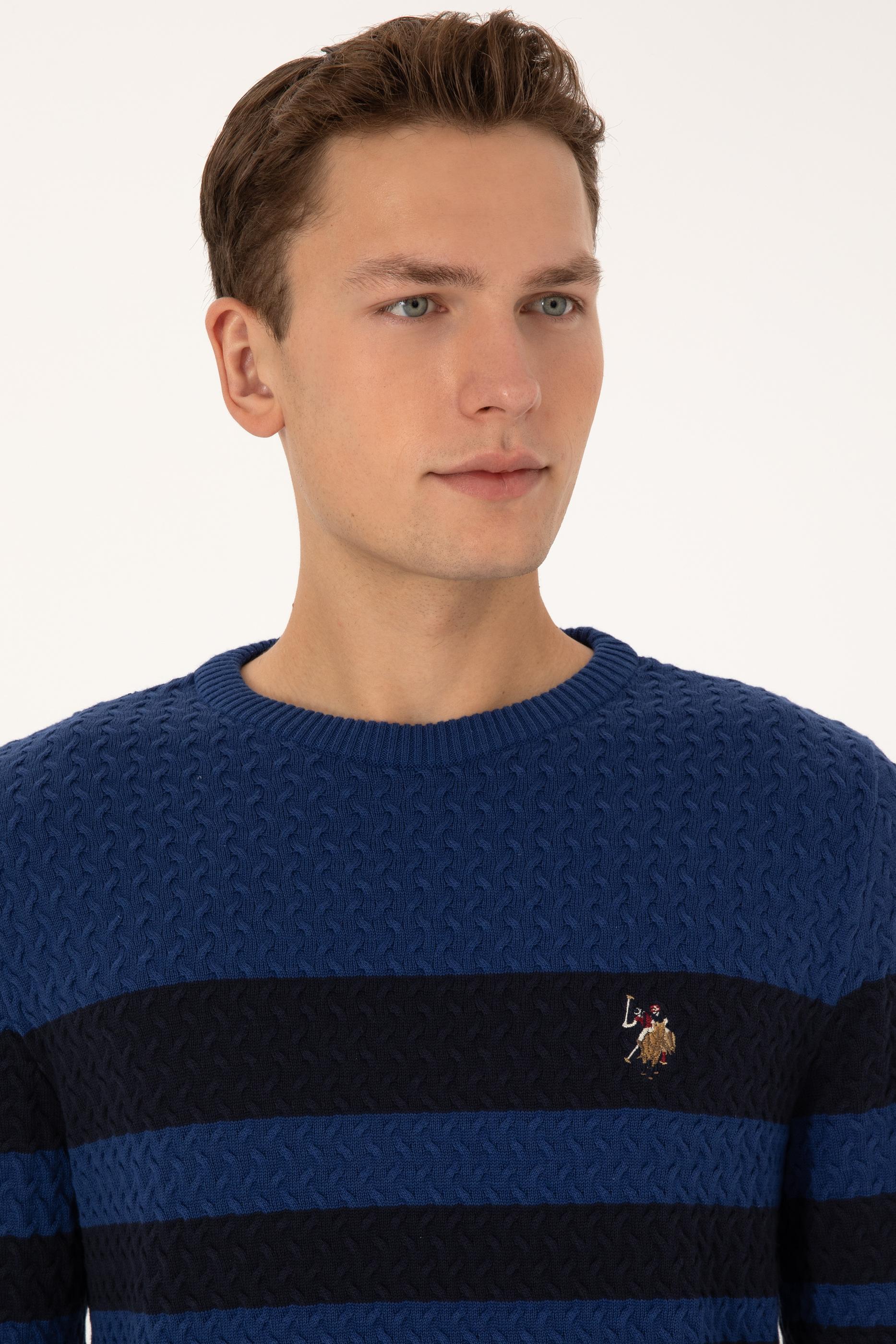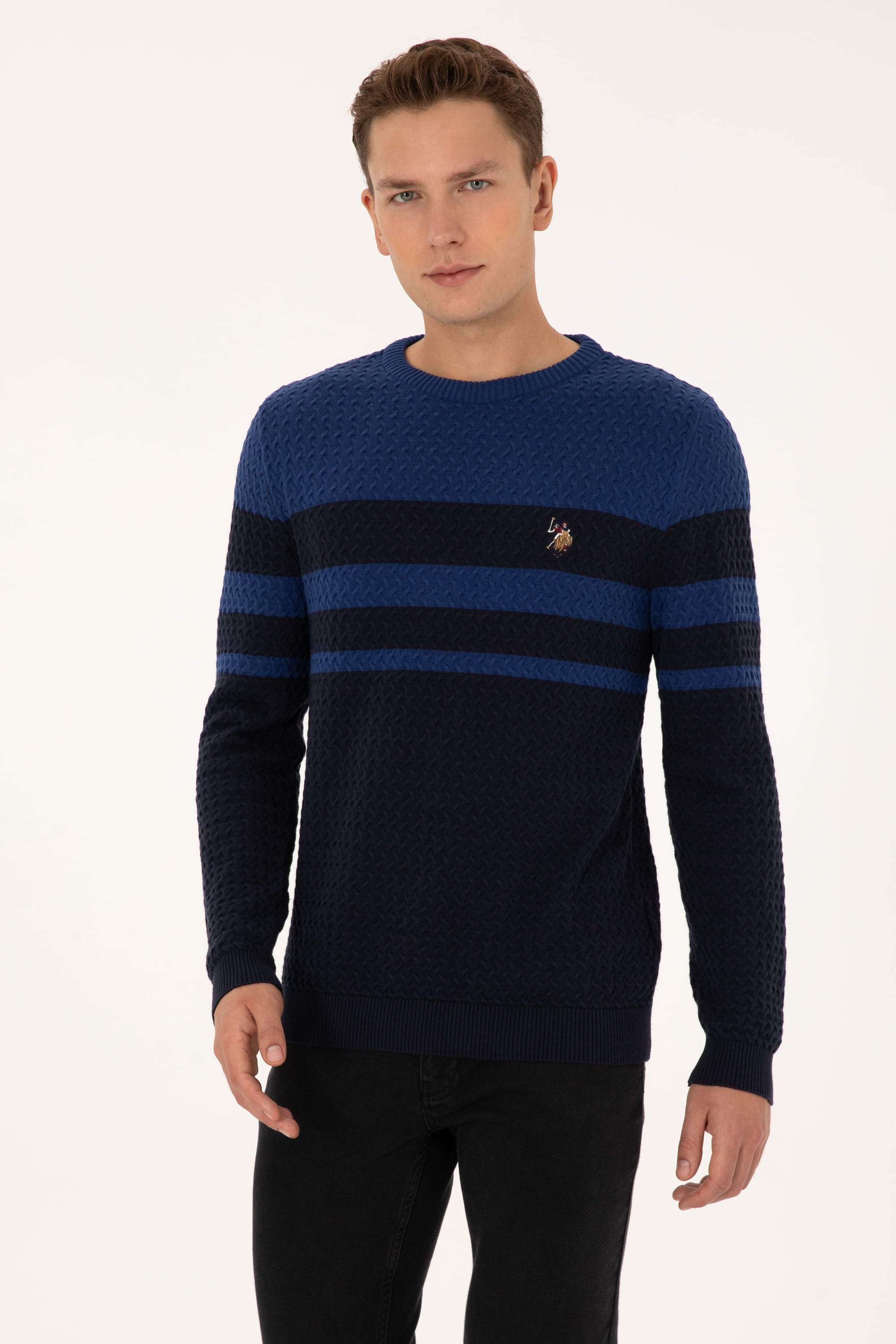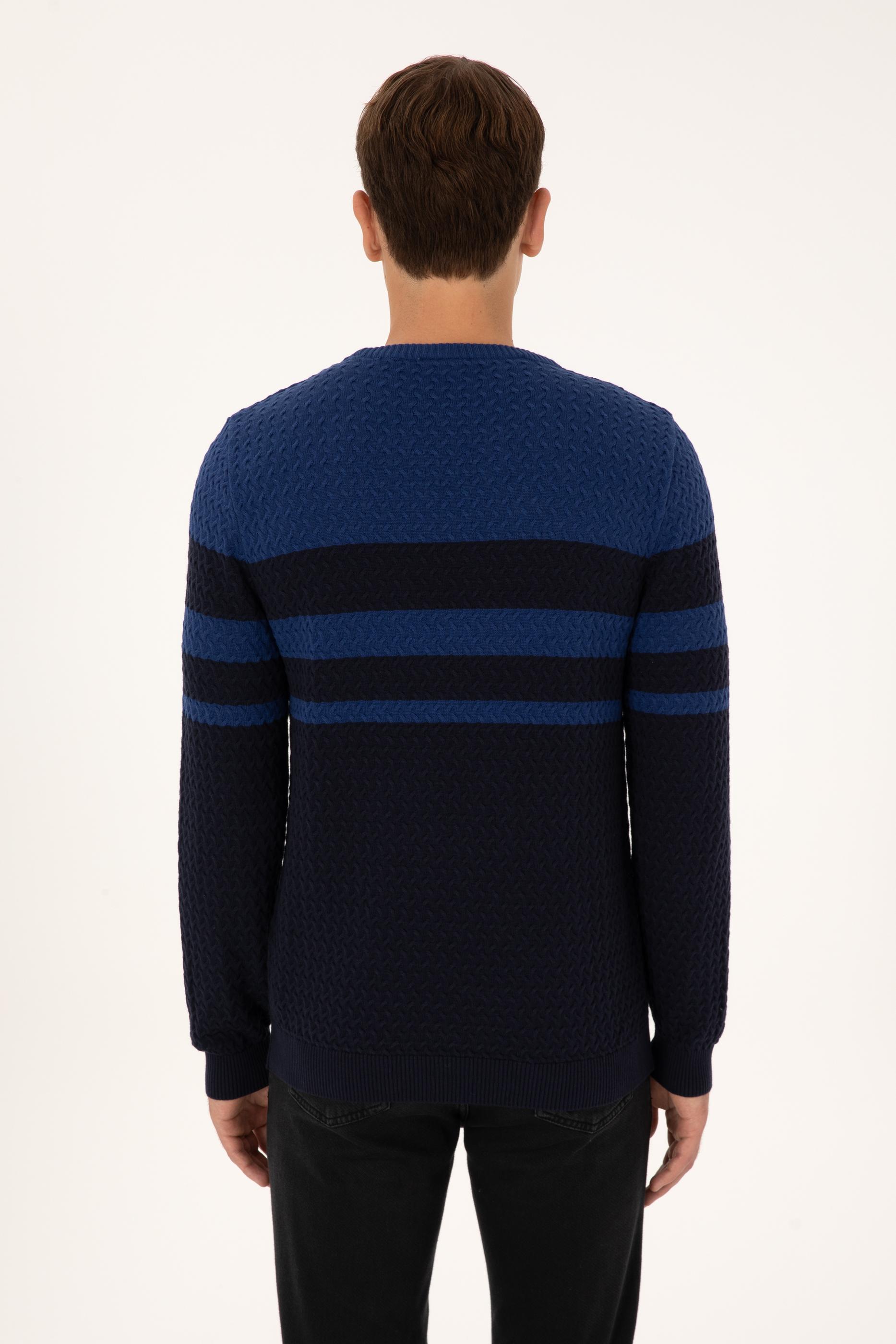 Erkek Slim Fit Bisiklet Yaka Lacivert Kazak
