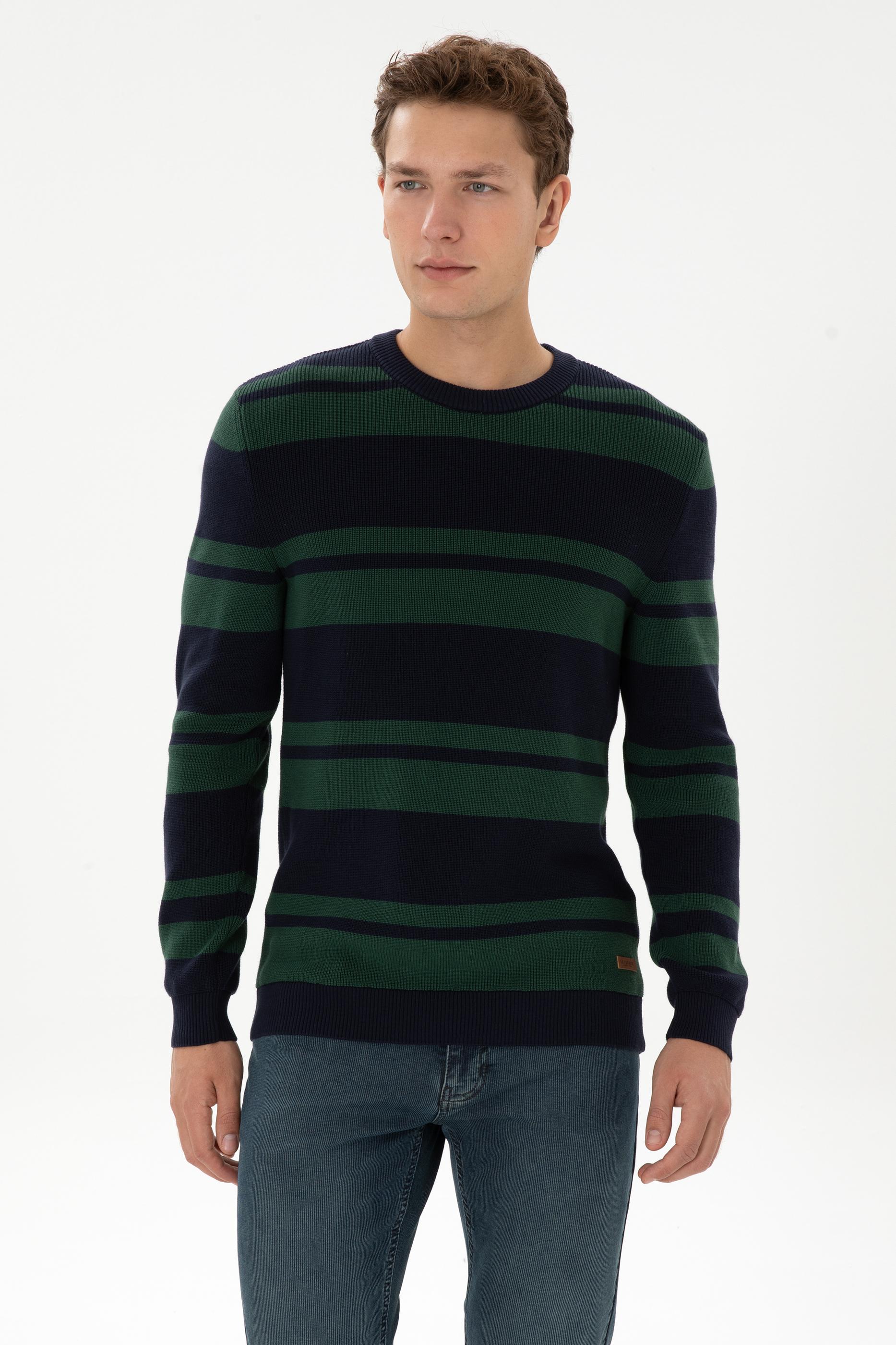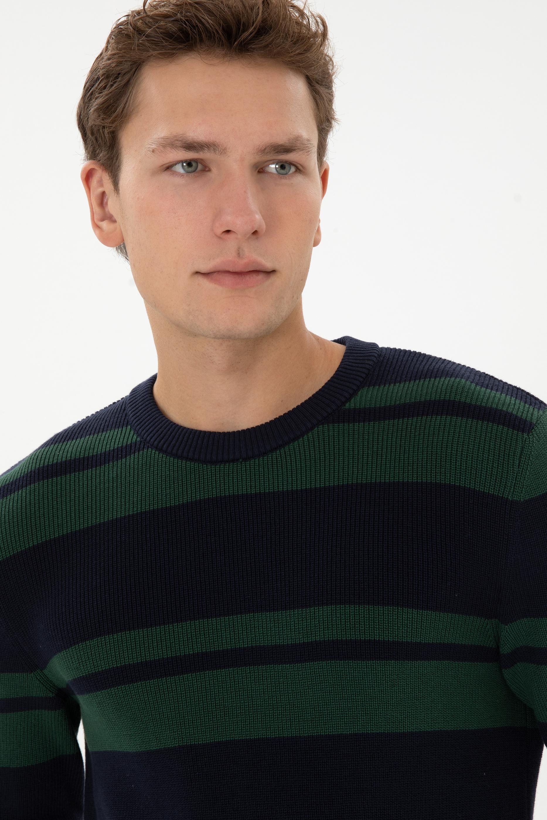 - Erkek Regular Fit Bisiklet Yaka Lacivert Kazak
