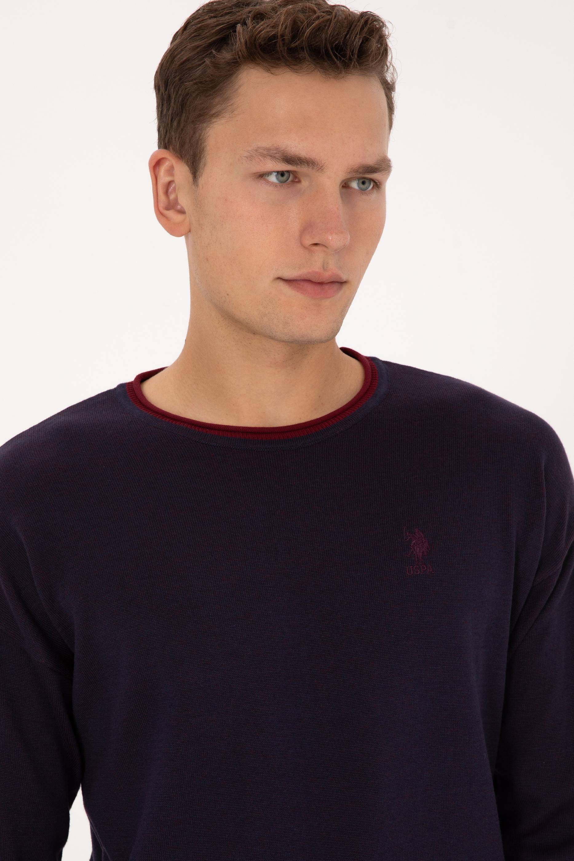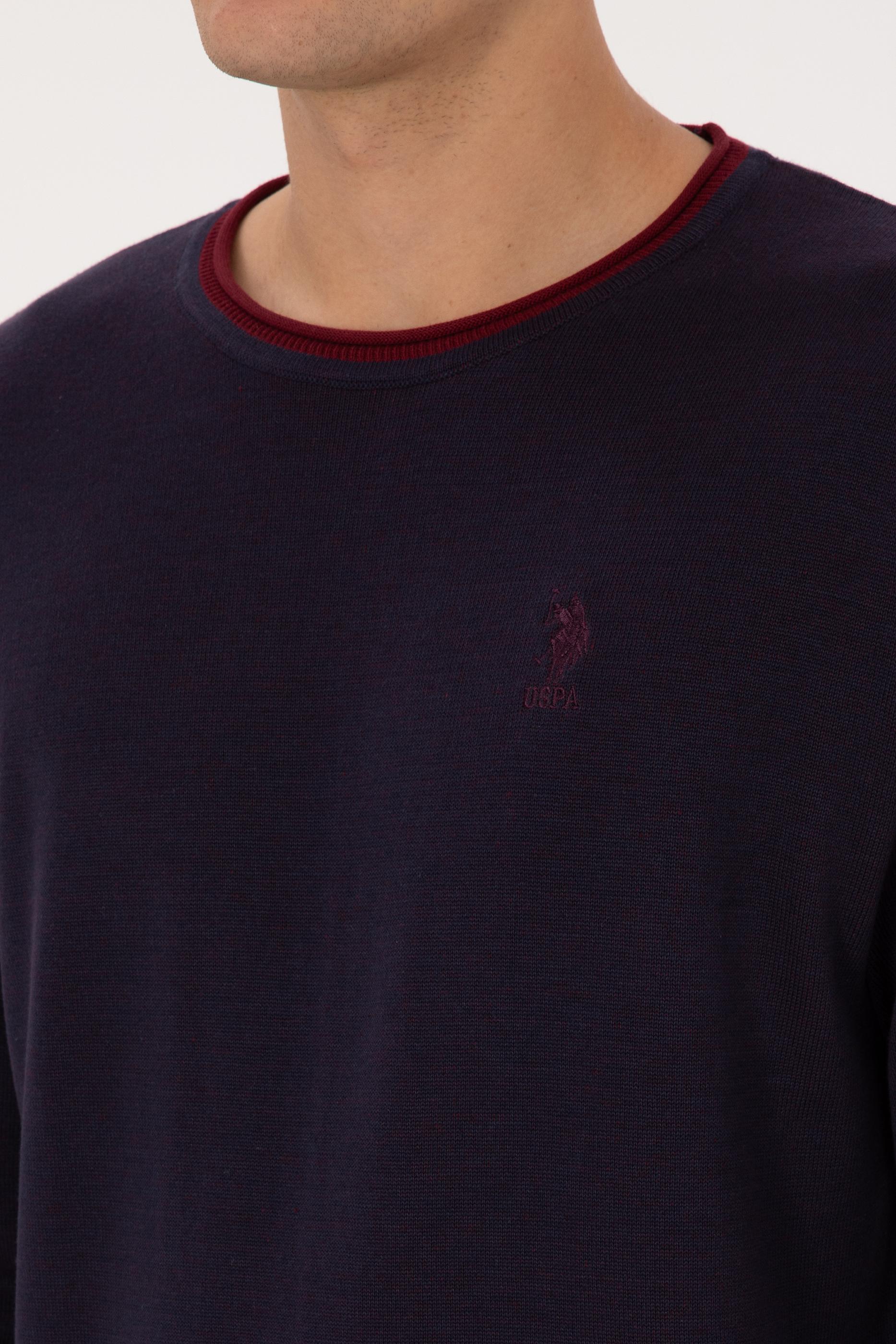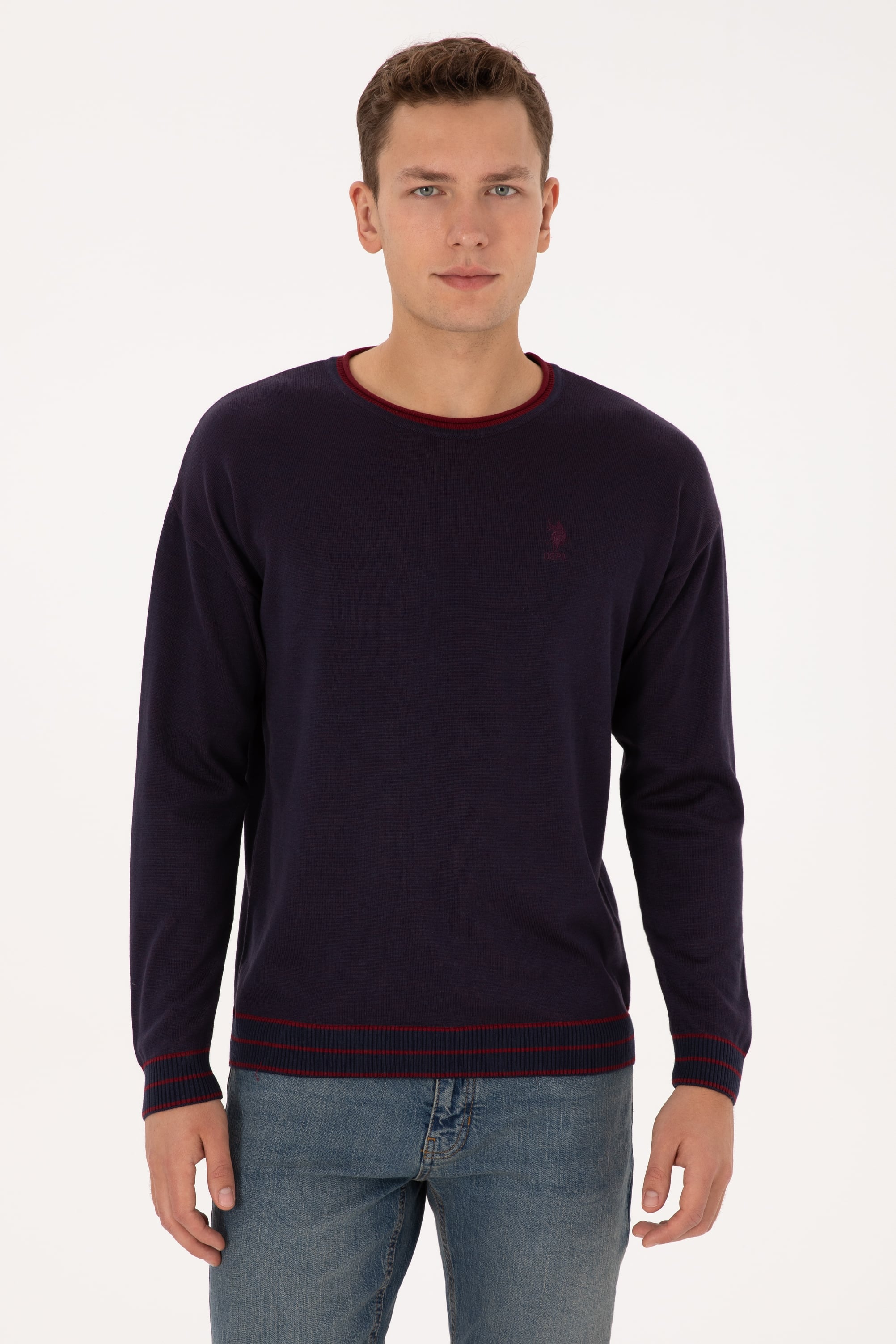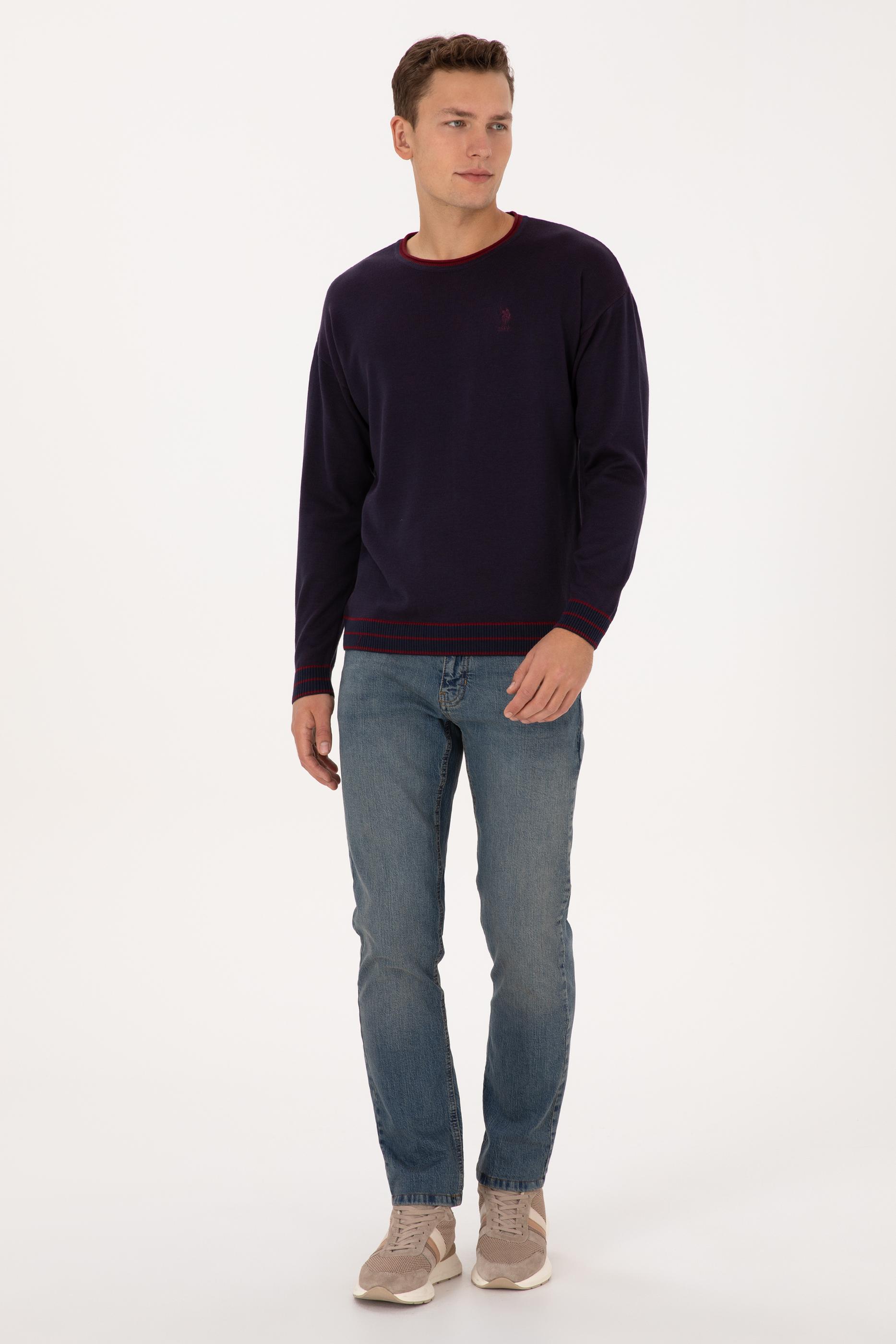 Erkek Comfort Fit Yaka Detaylı Lacivert Kazak