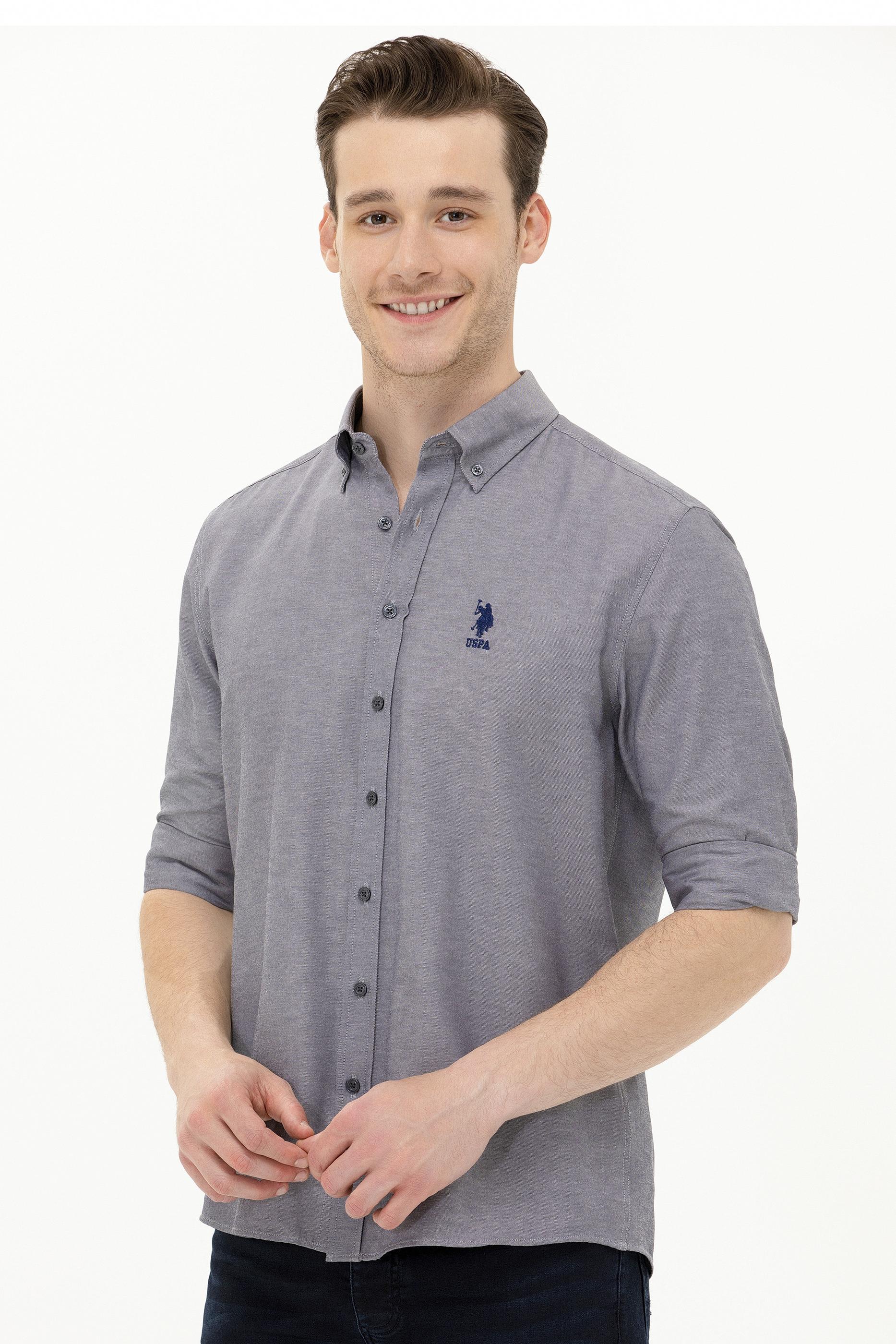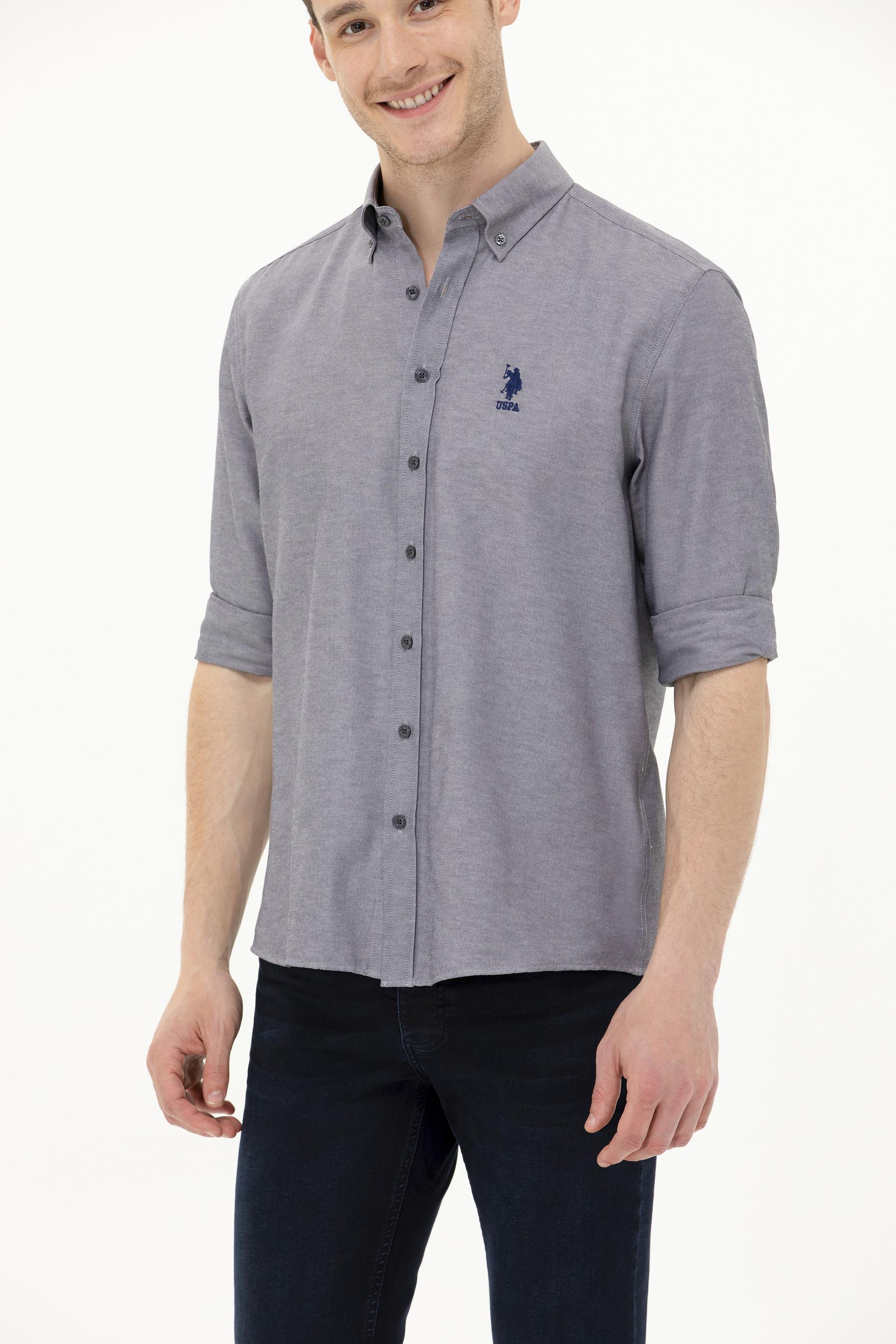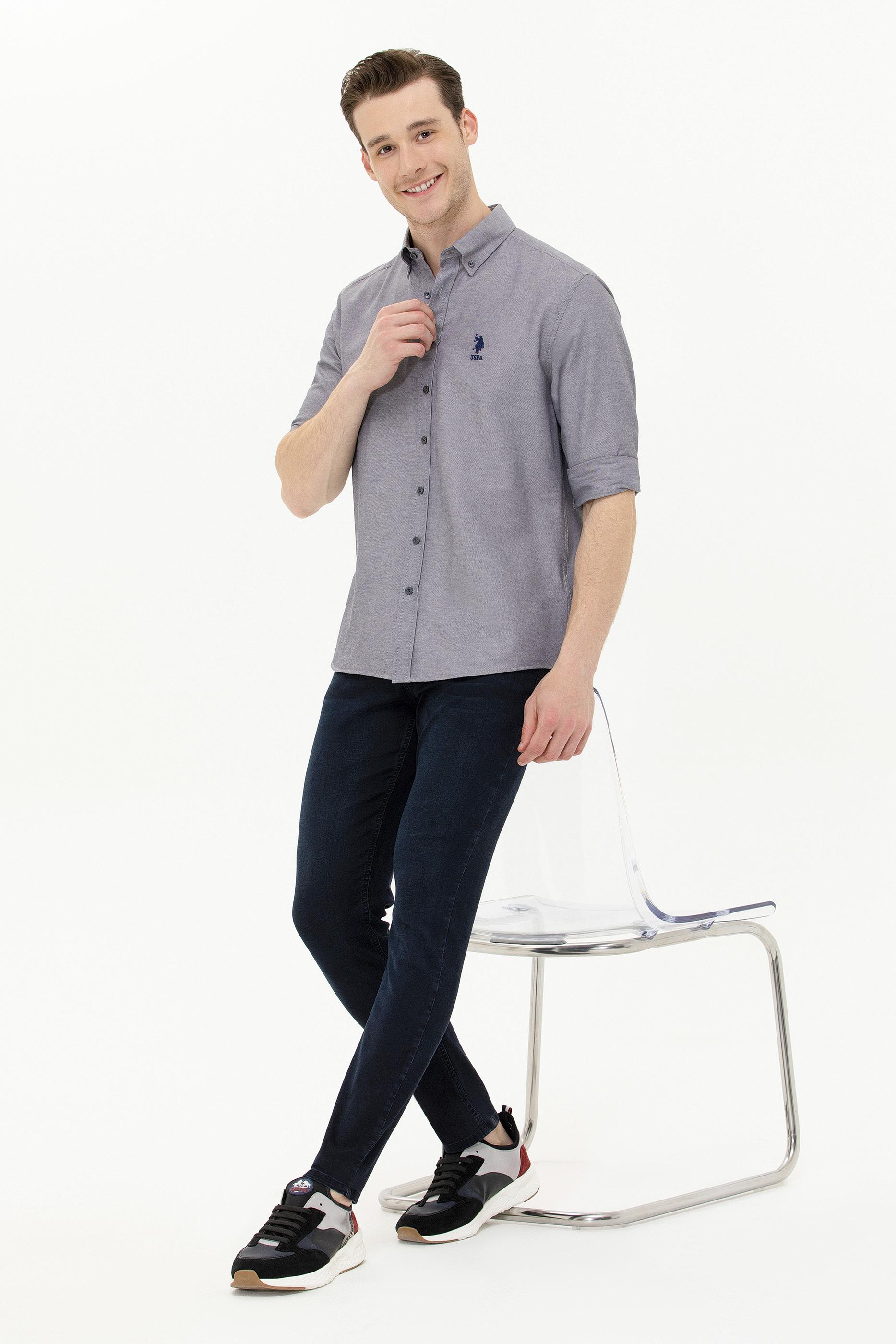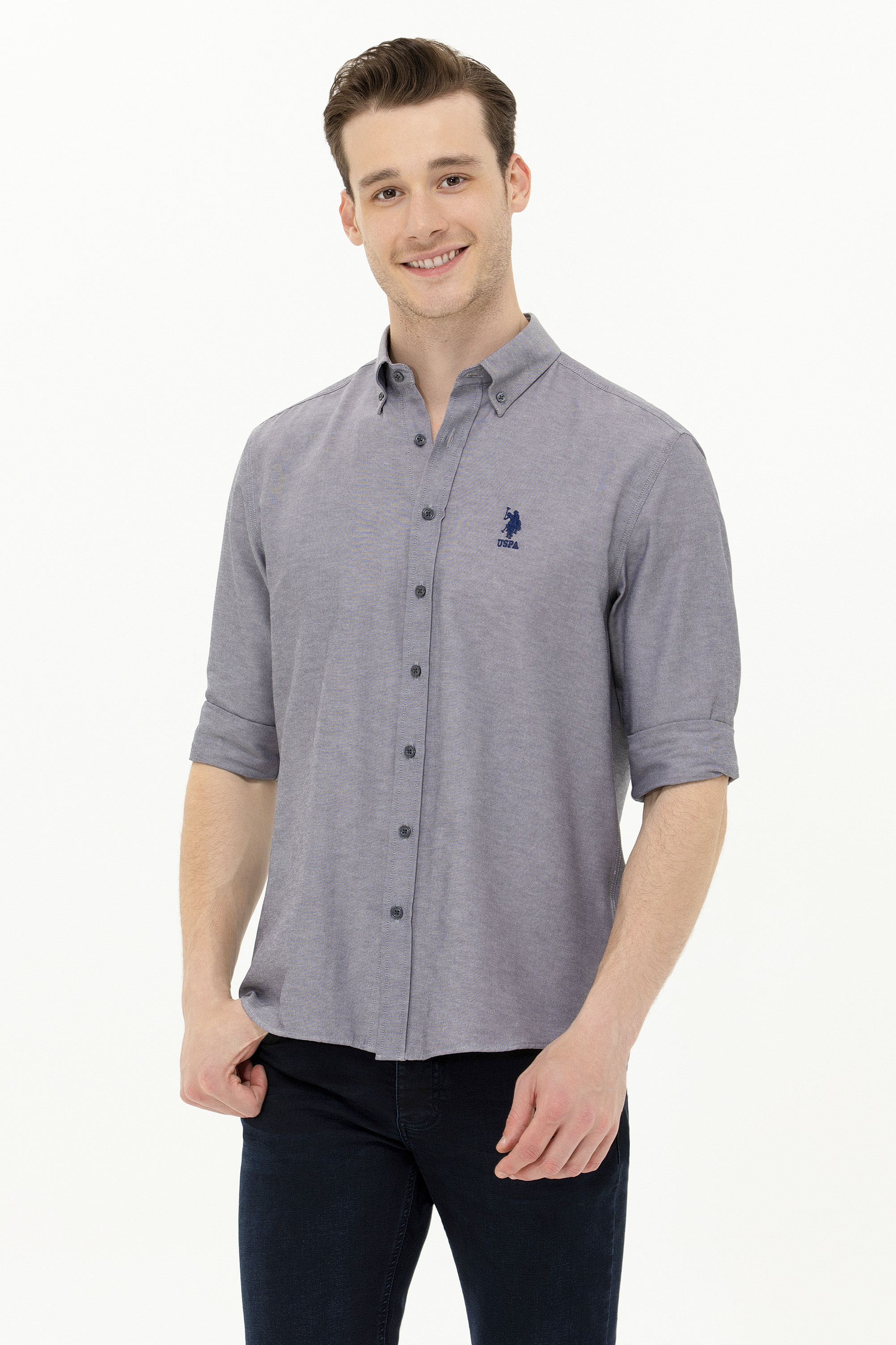Erkek Lacivert Melanj Uzun Kollu Basic Gömlek