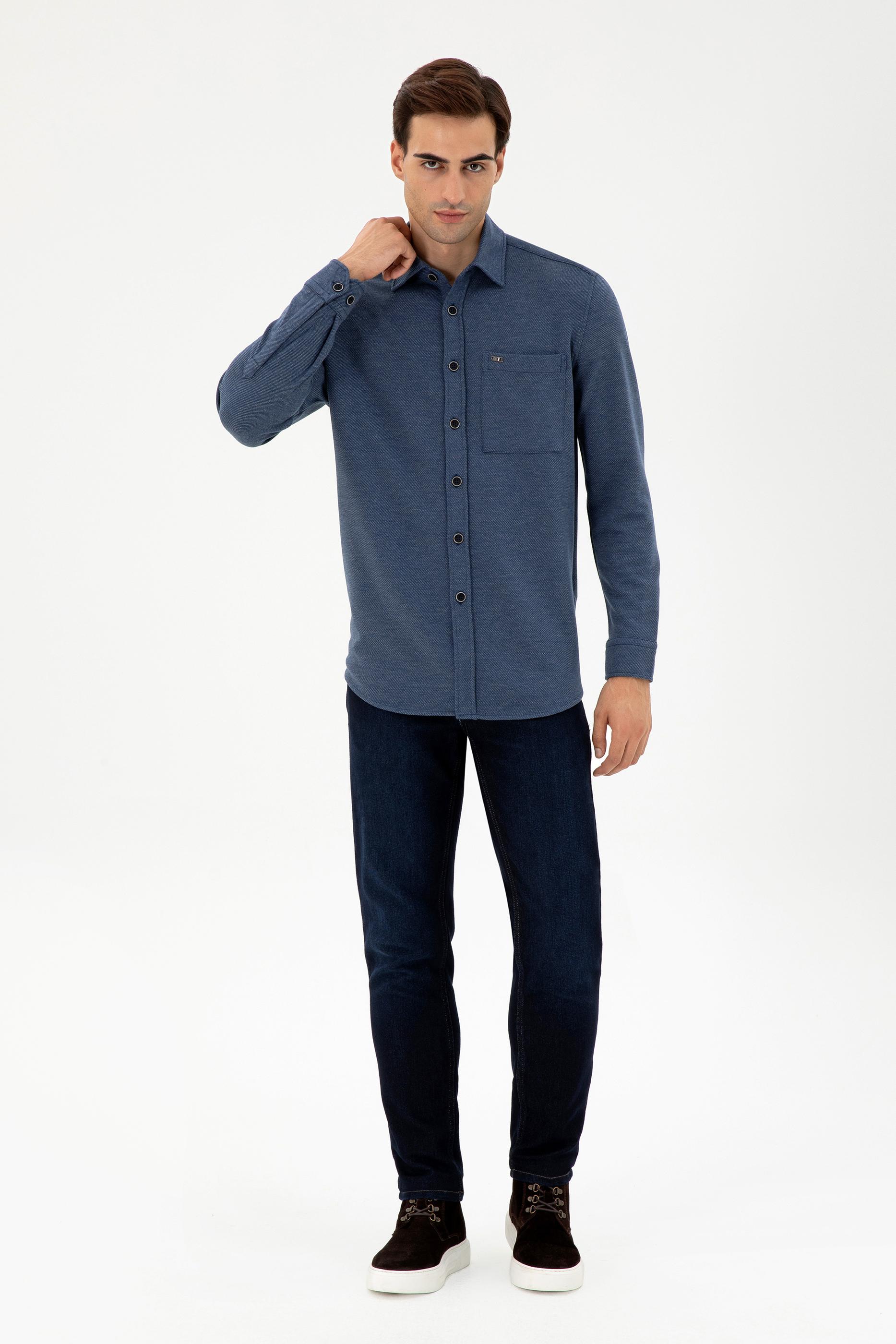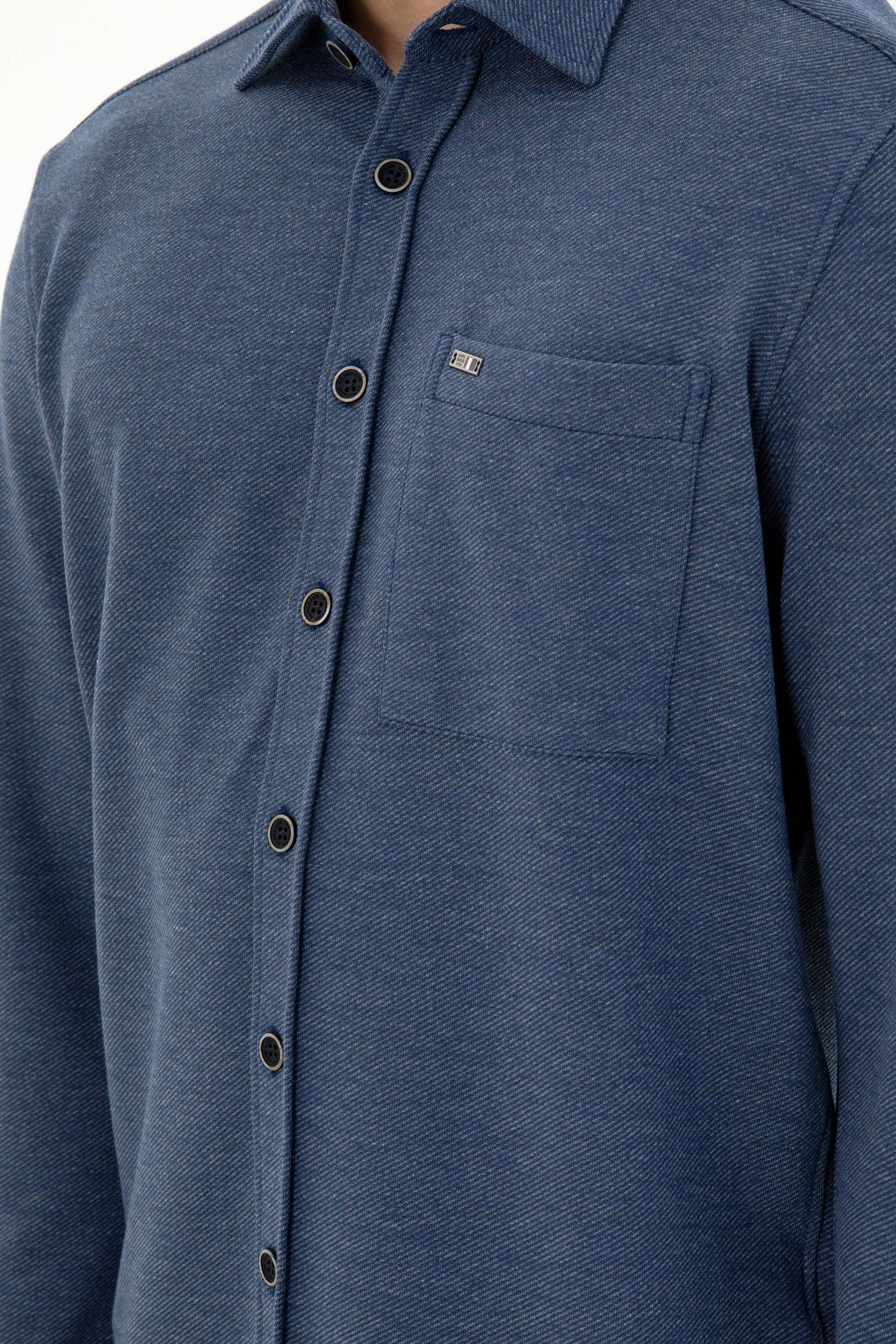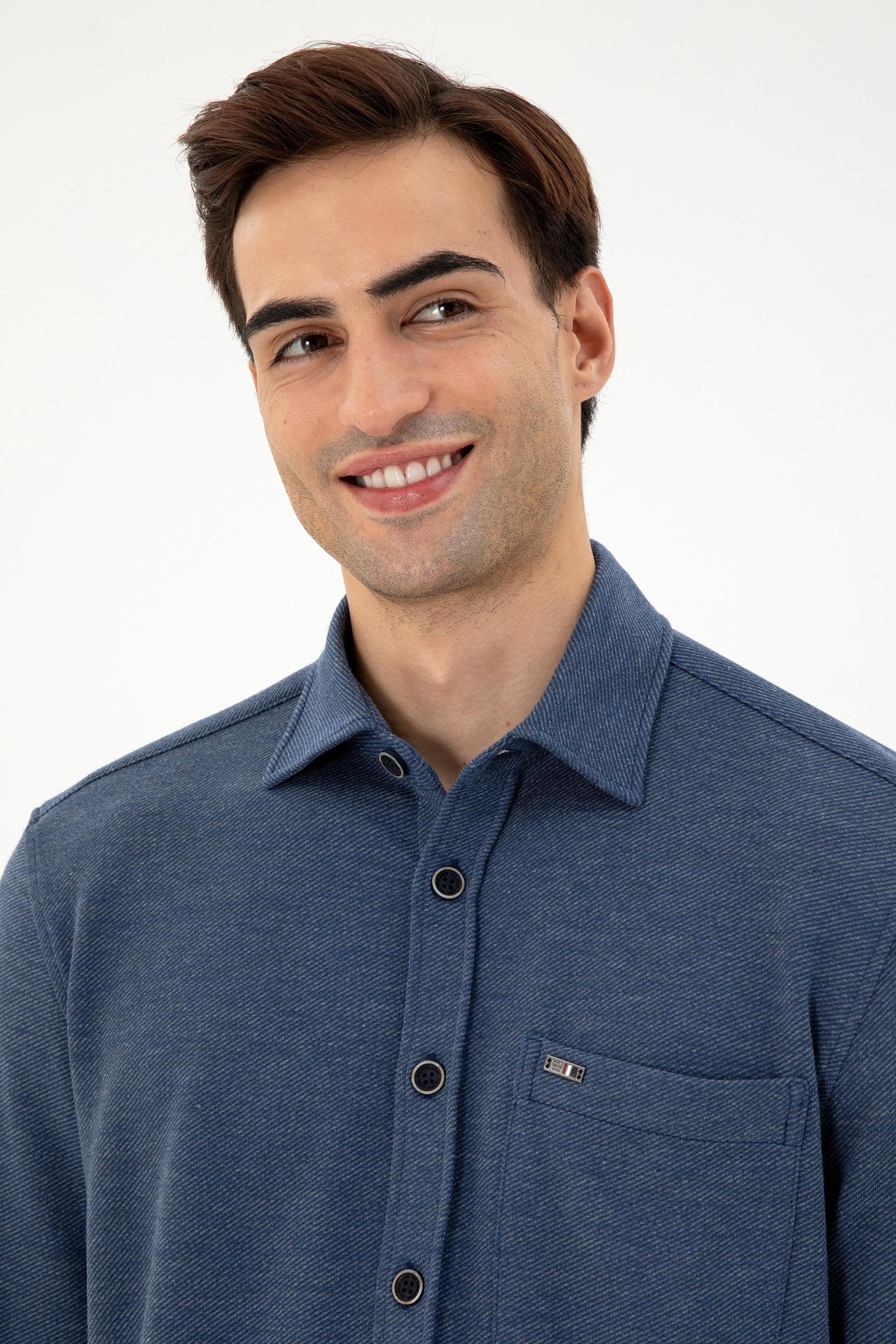 Erkek Lacivert Comfort Fit Cepli Örme Gömlek