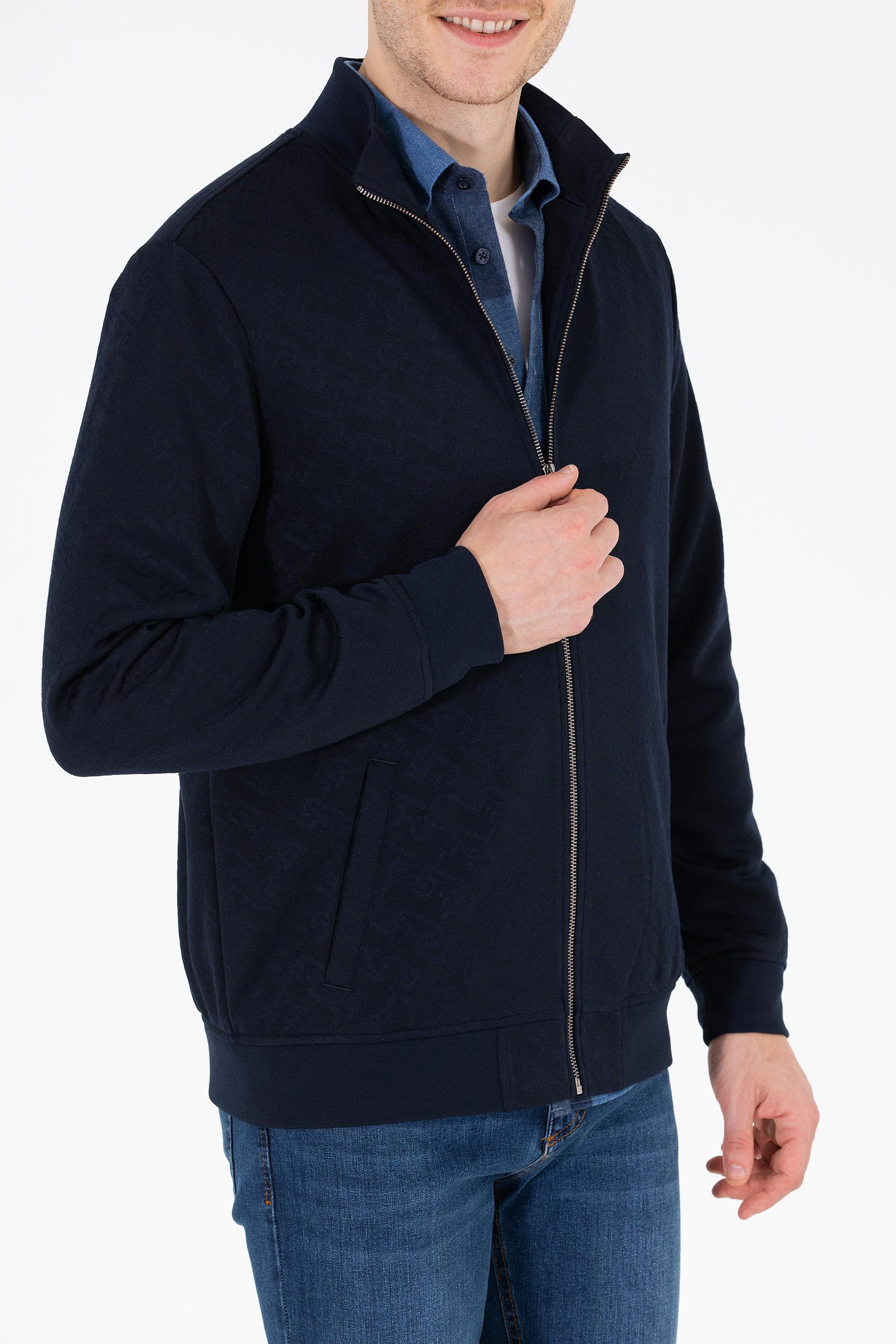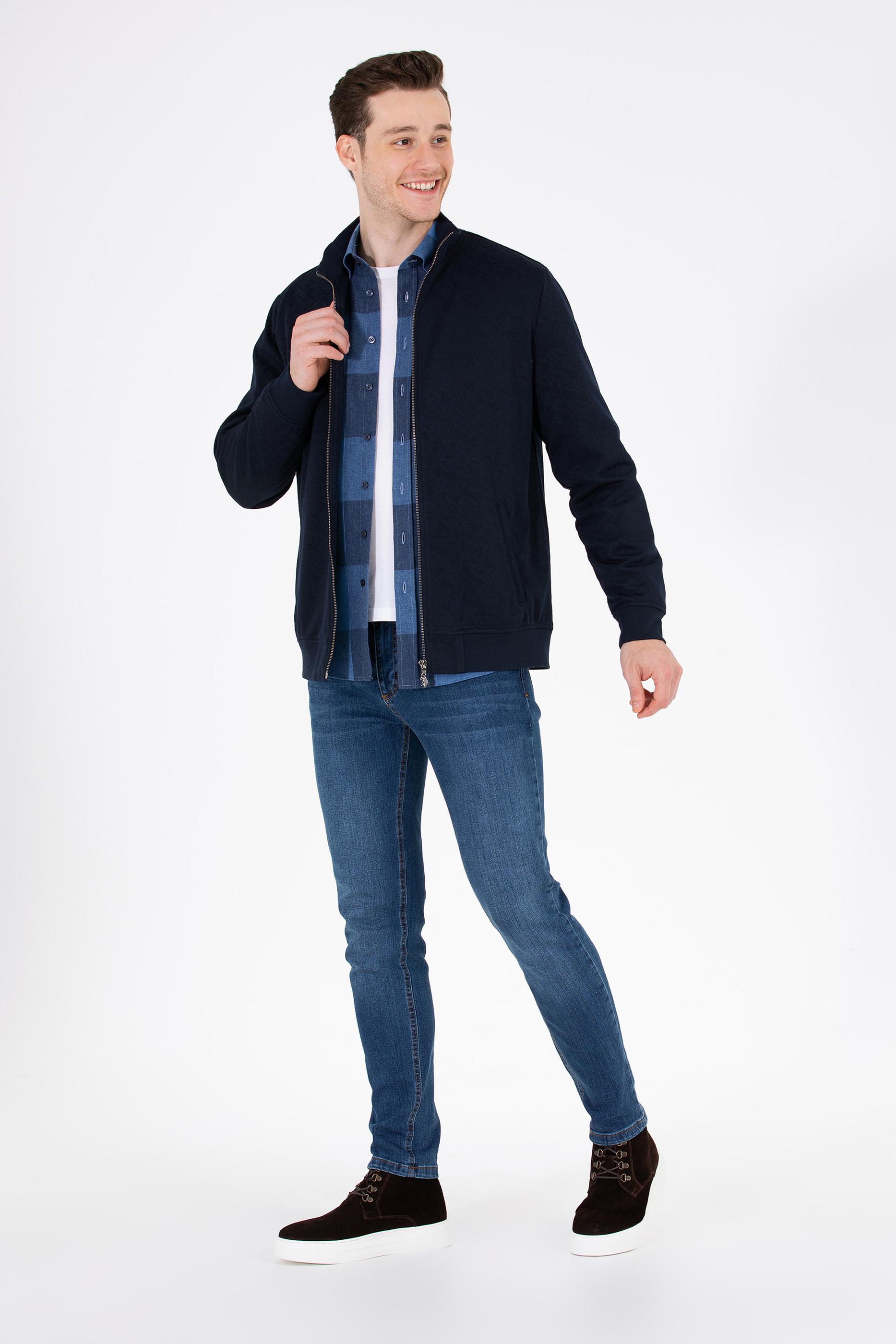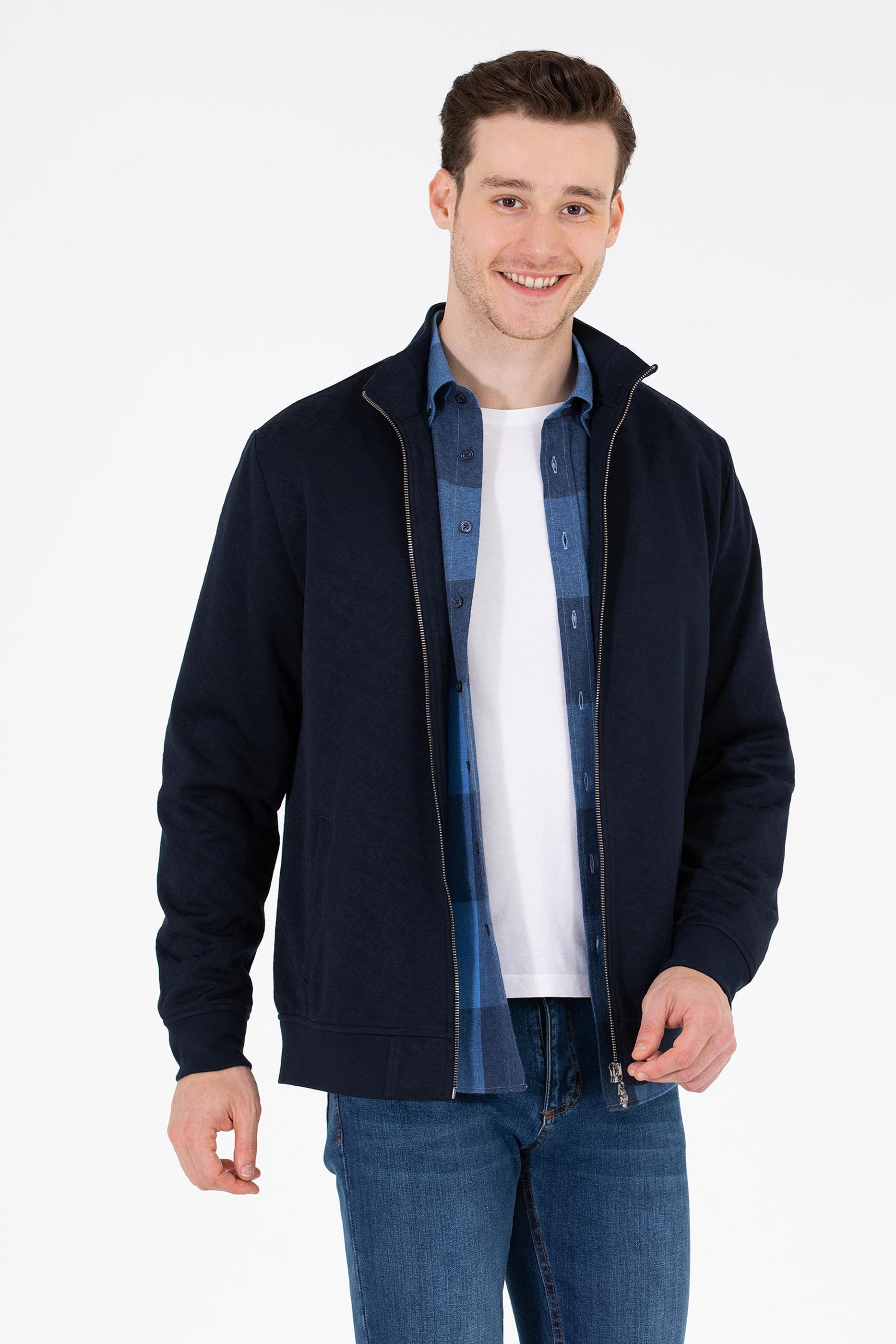 Erkek Lacivert Dik Yaka Örme Hırka - 50254779006