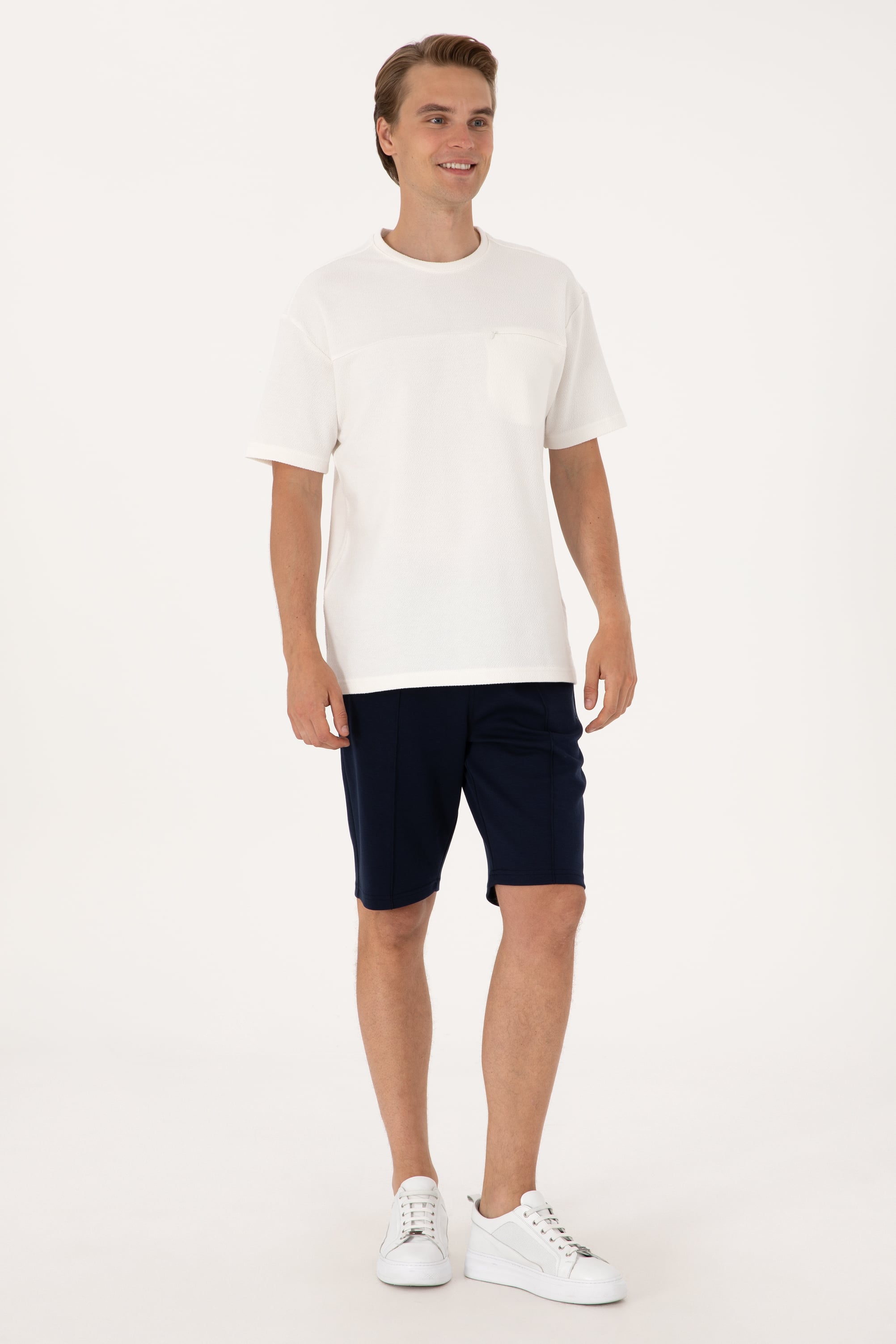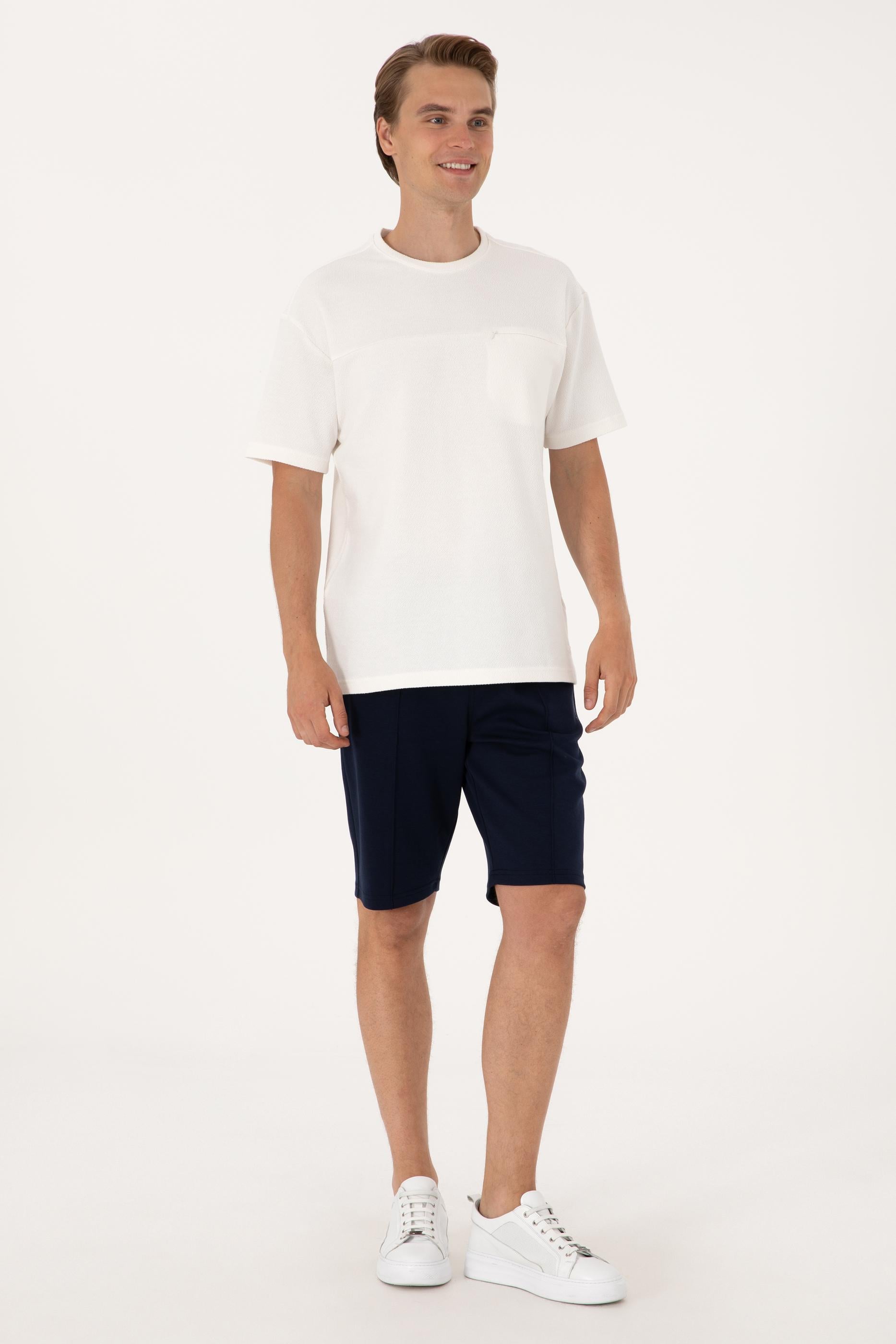 Online özel koleksiyonun şıklığıyla öne çıkan parçalarından biri olan lacivert erkek örme şort, tok duruşlu yapısıyla modern ve düzenli bir siluet sunar. İnterlok dokusu sayesinde formunu koruyan bu model, regular kesimi ve kısa boy tasarımıyla dinamik bir görünüm sağlar. Düz formu ve sade çizgileriyle zamansız bir stil sunarken, yan cepleri sayesinde işlevsel bir kullanım imkânı tanır. Bel kısmındaki esnek yapı, farklı vücut tiplerine uyum sağlayarak kişisel bir duruş sergiler. Günlük kombinlerden hafta sonu şıklığına kadar geniş bir kullanım alanı sunan bu şort, lacivert rengiyle farklı üst parçalarla kolayca eşleştirilebilir. Fonksiyonel detayları ve modern tasarımıyla yaz gardırobuna stil sahibi bir katkı sağlar.