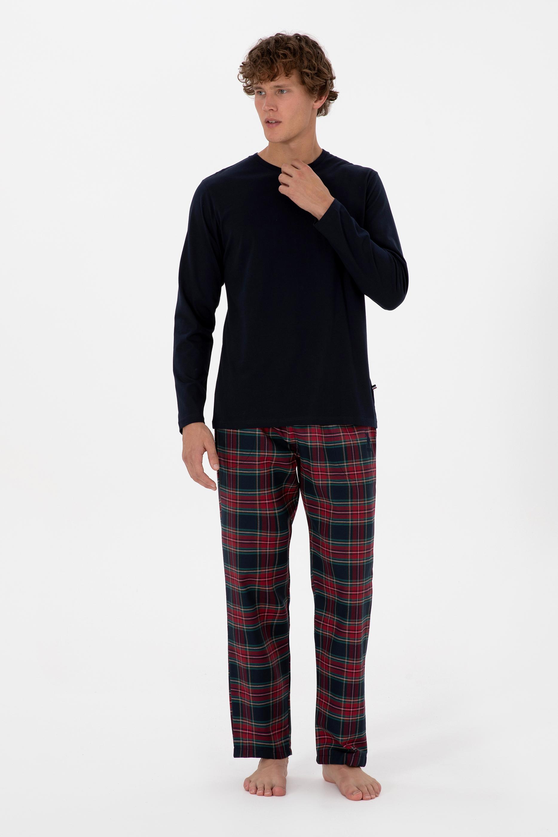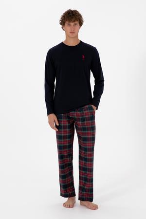 Erkek Kırmızı Ekoseli Lacivert Pijama Takımı