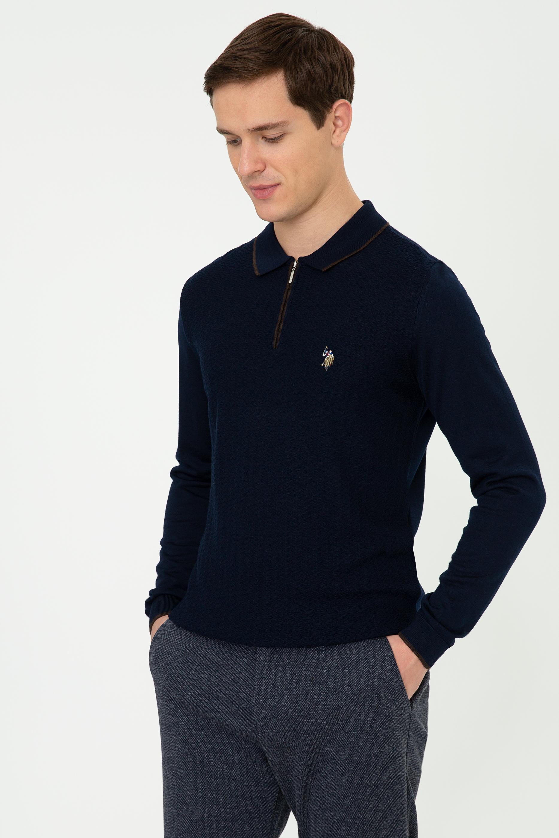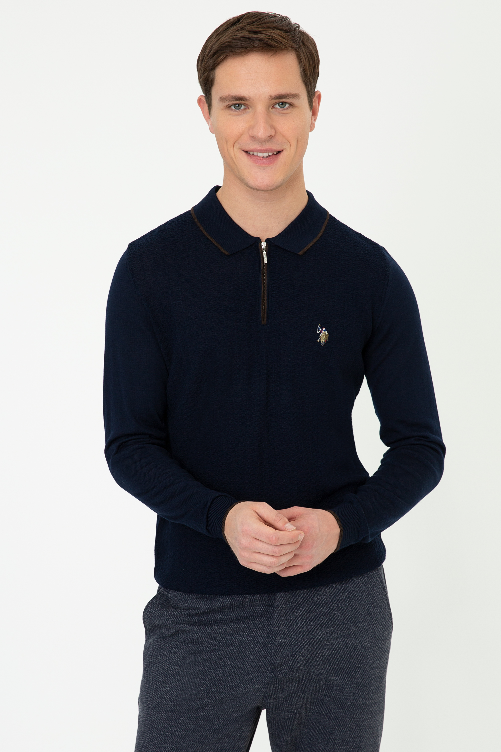 Erkek Lacivert Polo Yaka Triko Kazak - 50210320005