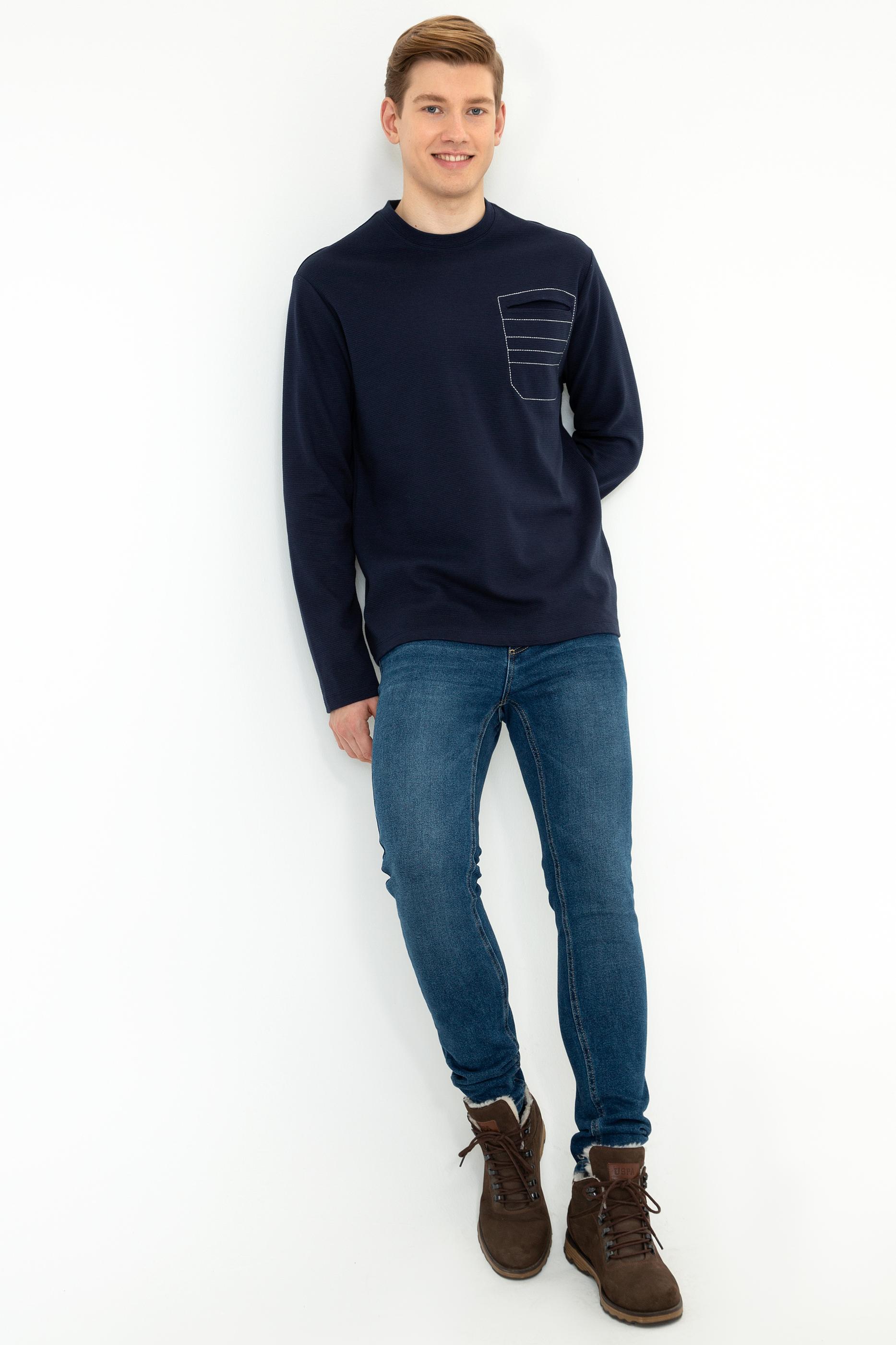 - Erkek Lacivert Bisiklet Yaka Sweatshirt