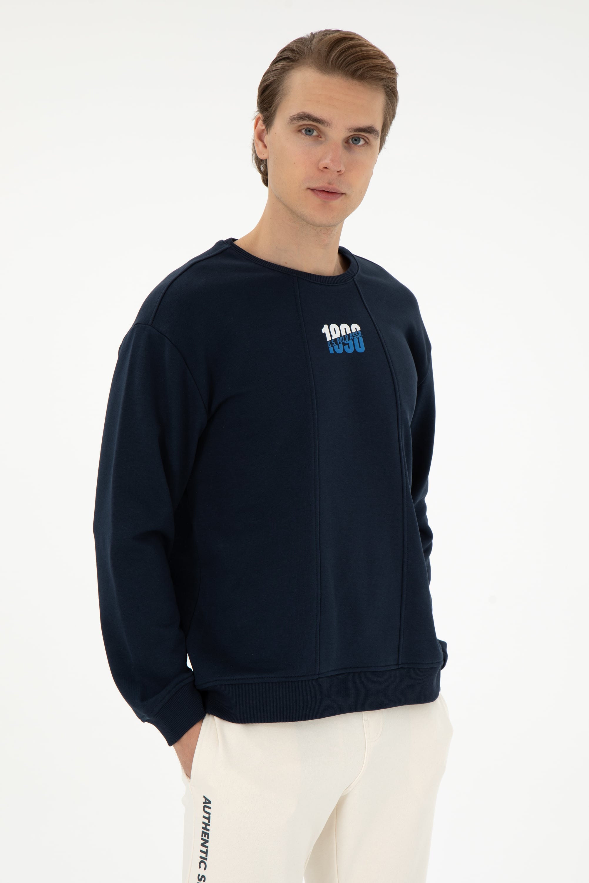 - Erkek Comfort Fit Bisiklet Yaka Lacivert Sweatshirt