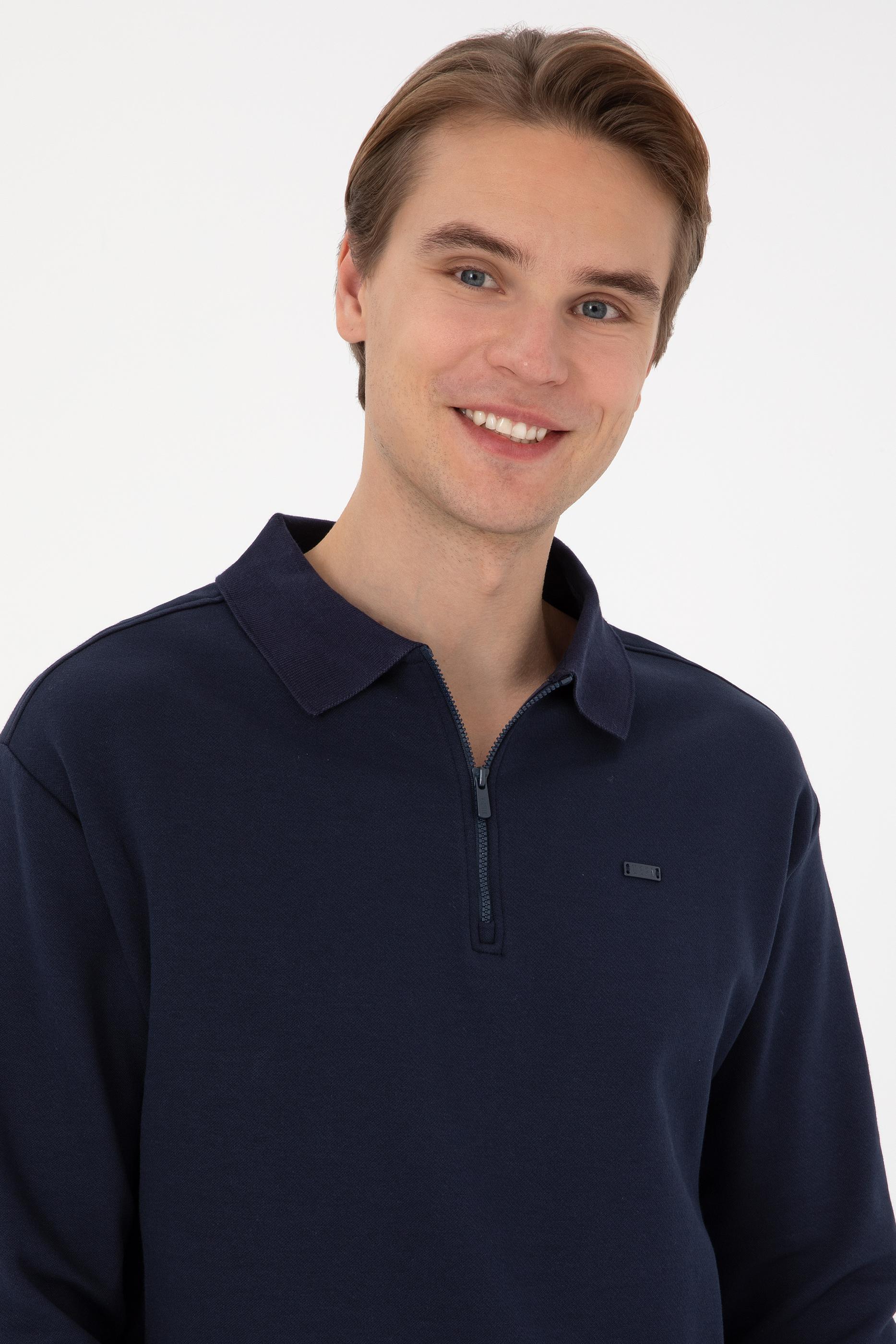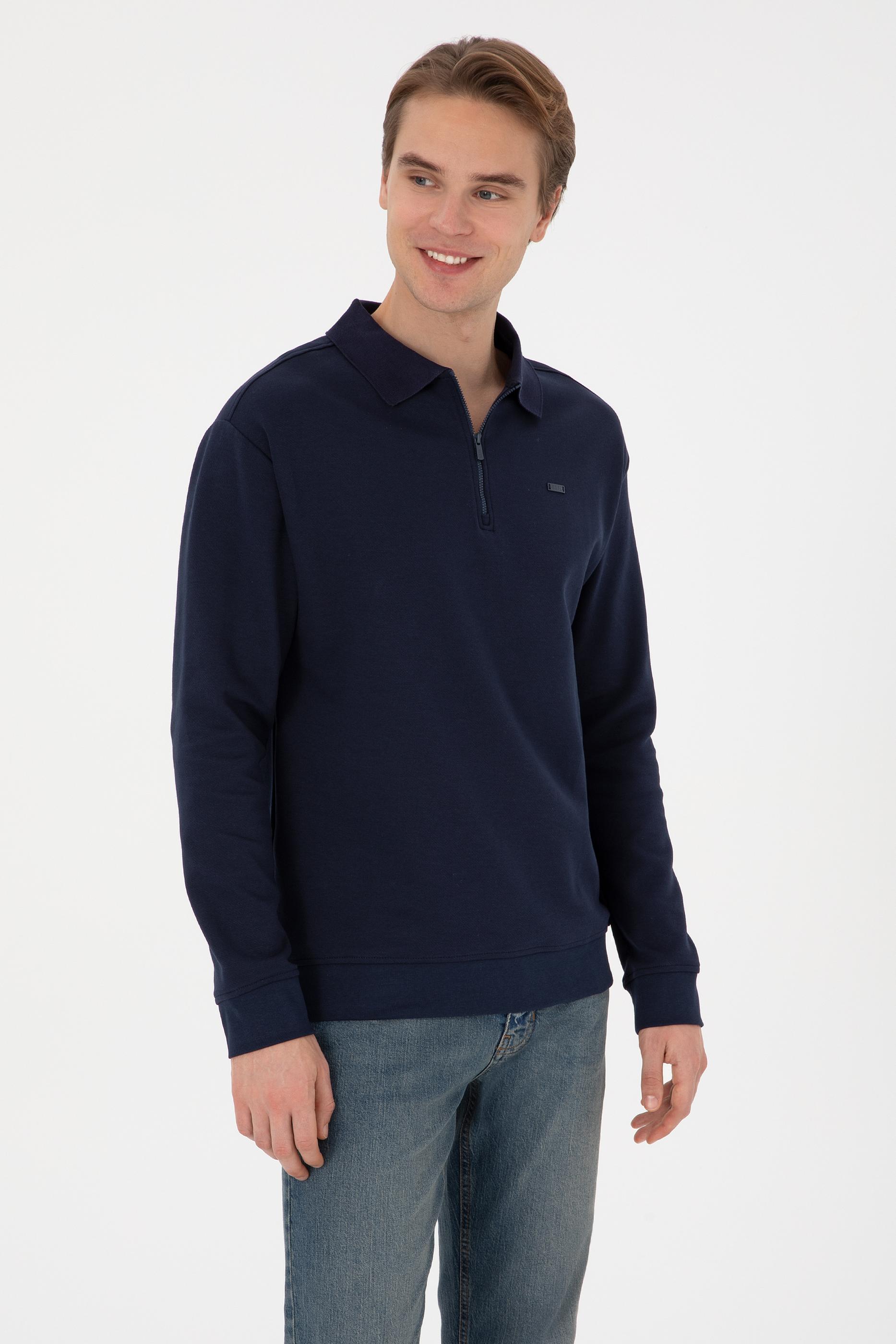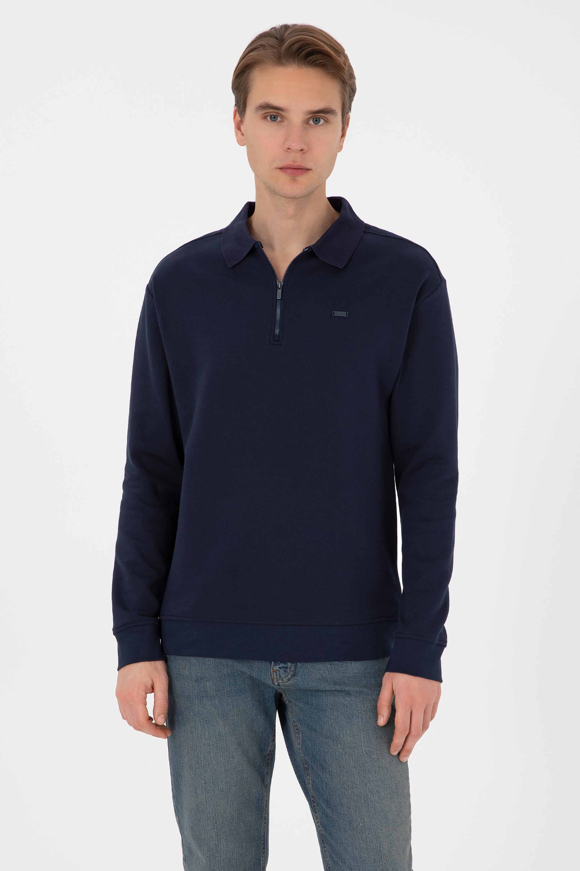 - Erkek Comfort Fit Yarım Fermuarlı Lacivert Sweatshirt