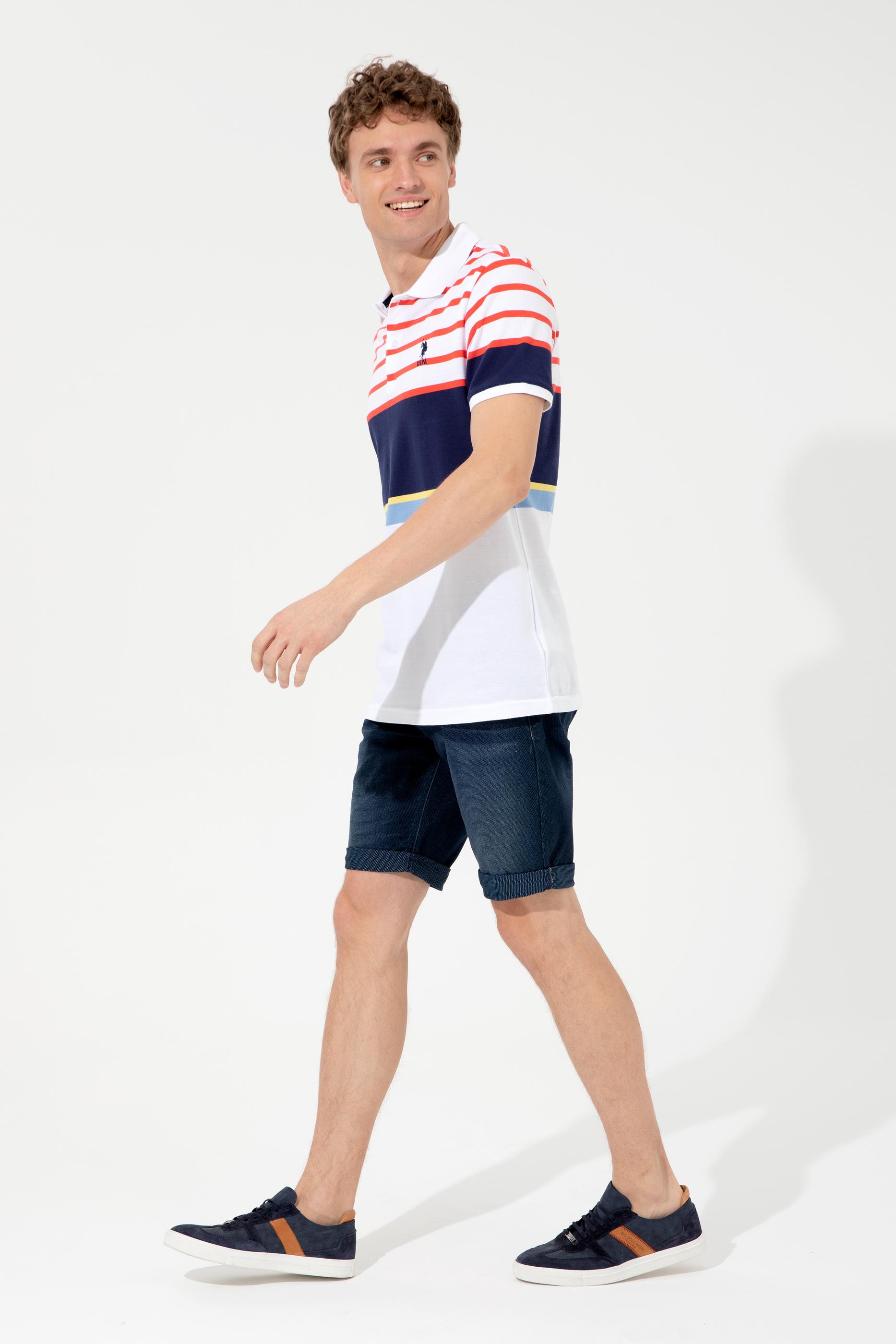 Rahatça giyip çıkarabileceğiniz regular fit polo yaka erkek tişörtümüz birbirinden dinamik ve renklerin cümbüşü ile fark yaratan modern deseni tek tasarımda buluşturur.