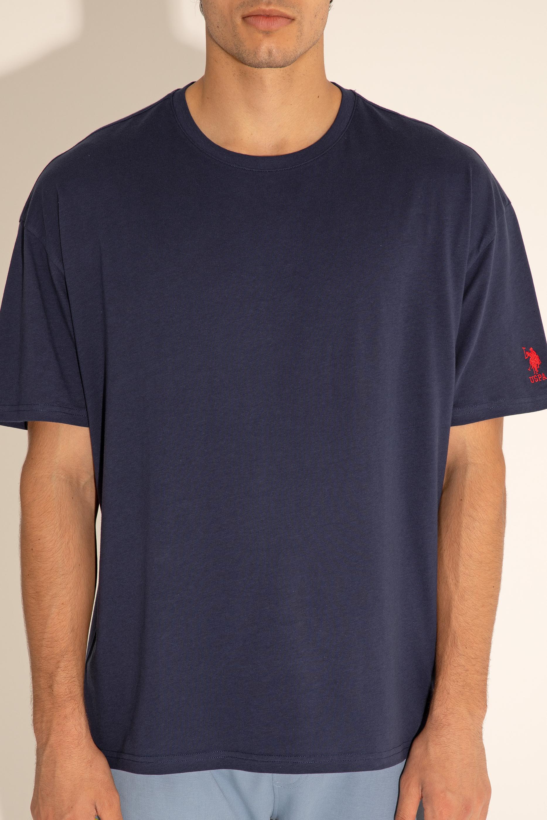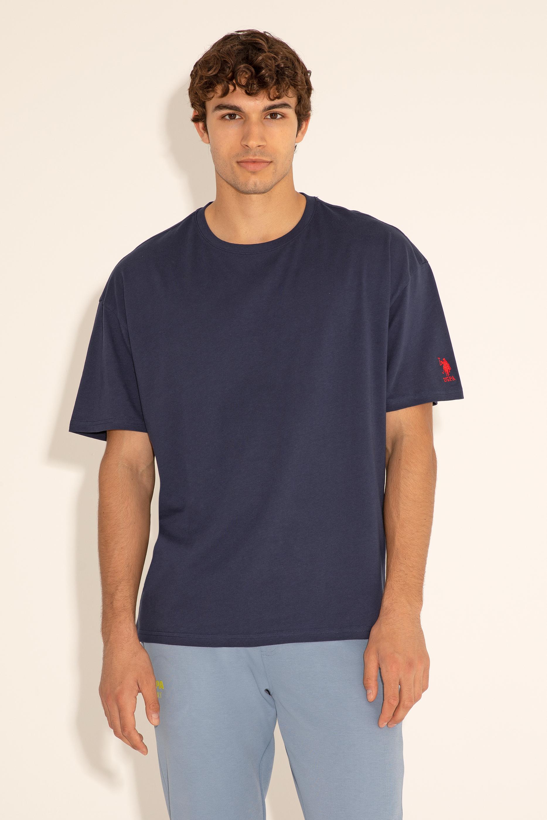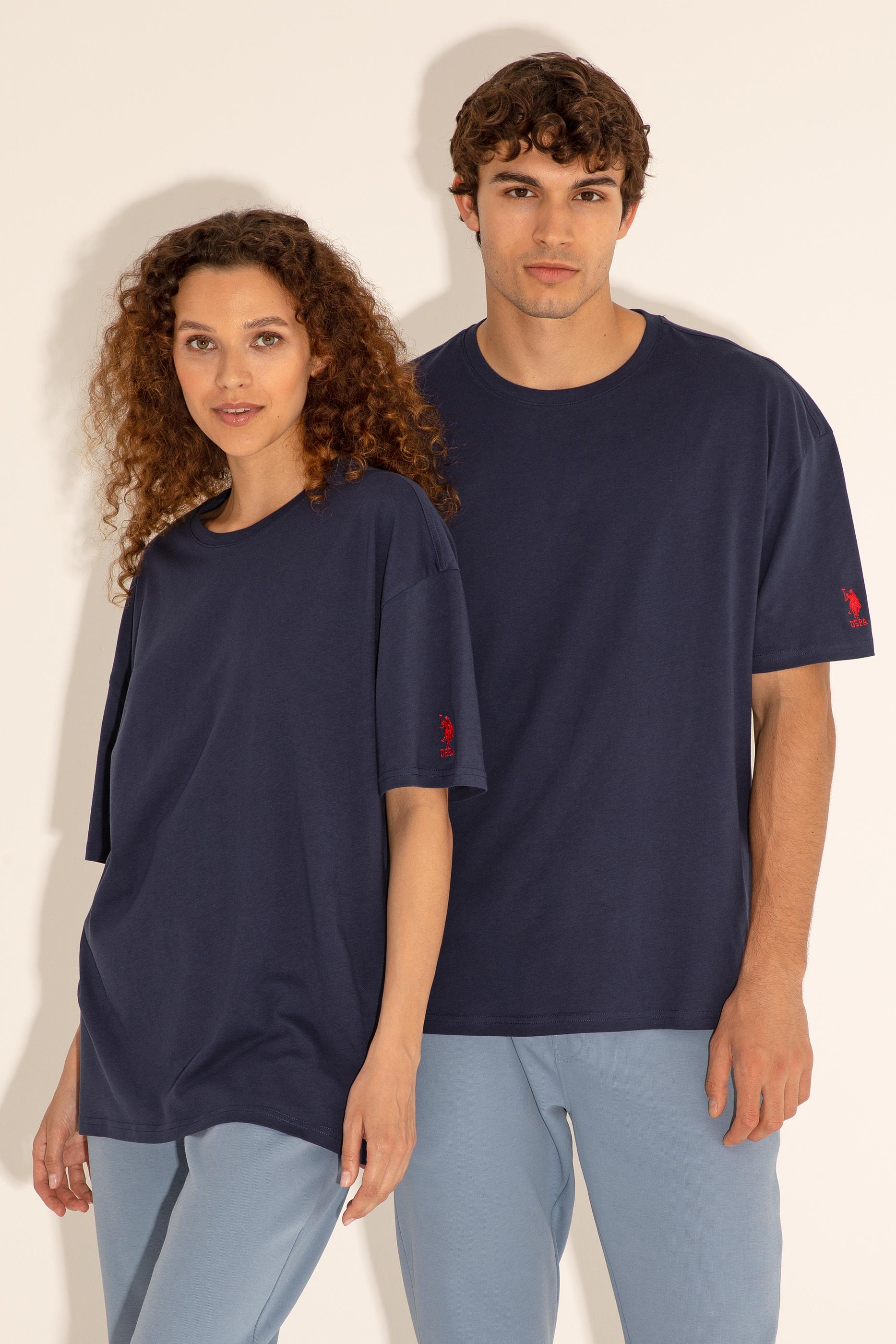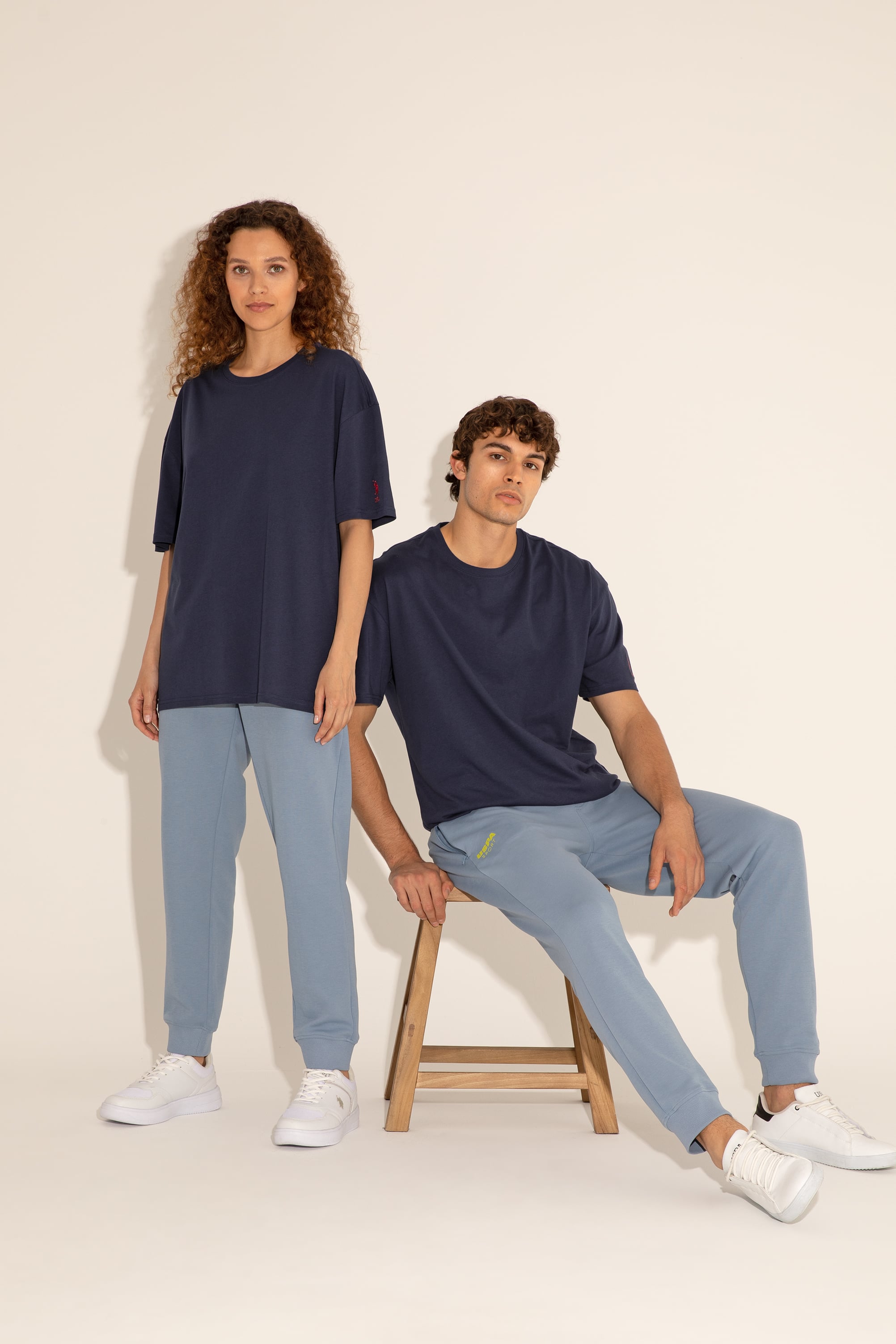 Unisex olarak tasarlanmış olan lacivert oversize erkek tişört, %100 pamuklu yapısı sayesinde mükemmel bir konfor sunar. Tişörtün bisiklet yaka detayı ve oversize fit kesimi, rahat ve salaş bir tasarıma sahiptir.