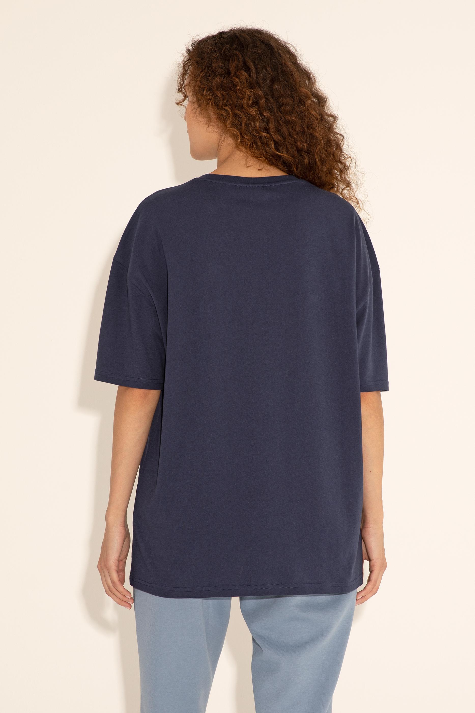 Tişörtün ilk dikkat çeken özelliklerinden biri lacivert rengidir. Lacivert, hem gündelik kullanıma hem de daha şık kombinlere uygun bir renktir. Dolayısıyla tişörtü spor yaparken veya arkadaşlarınızla buluşurken rahatlıkla tercih edebilirsiniz. Özellikle çiftlerin birbirine uyumlu kombinler yapmak istediği durumlarda, tişört göz alıcı bir seçenek sunar. Geniş kesimi sayesinde hareket özgürlüğü sunan tişört, aynı zamanda modern ve salaş bir stil yaratmanıza da yardımcı olur. Oversize tişört, dar pantolonlar veya şortlarla mükemmel bir uyum sağlar ve her tarza hitap eder.