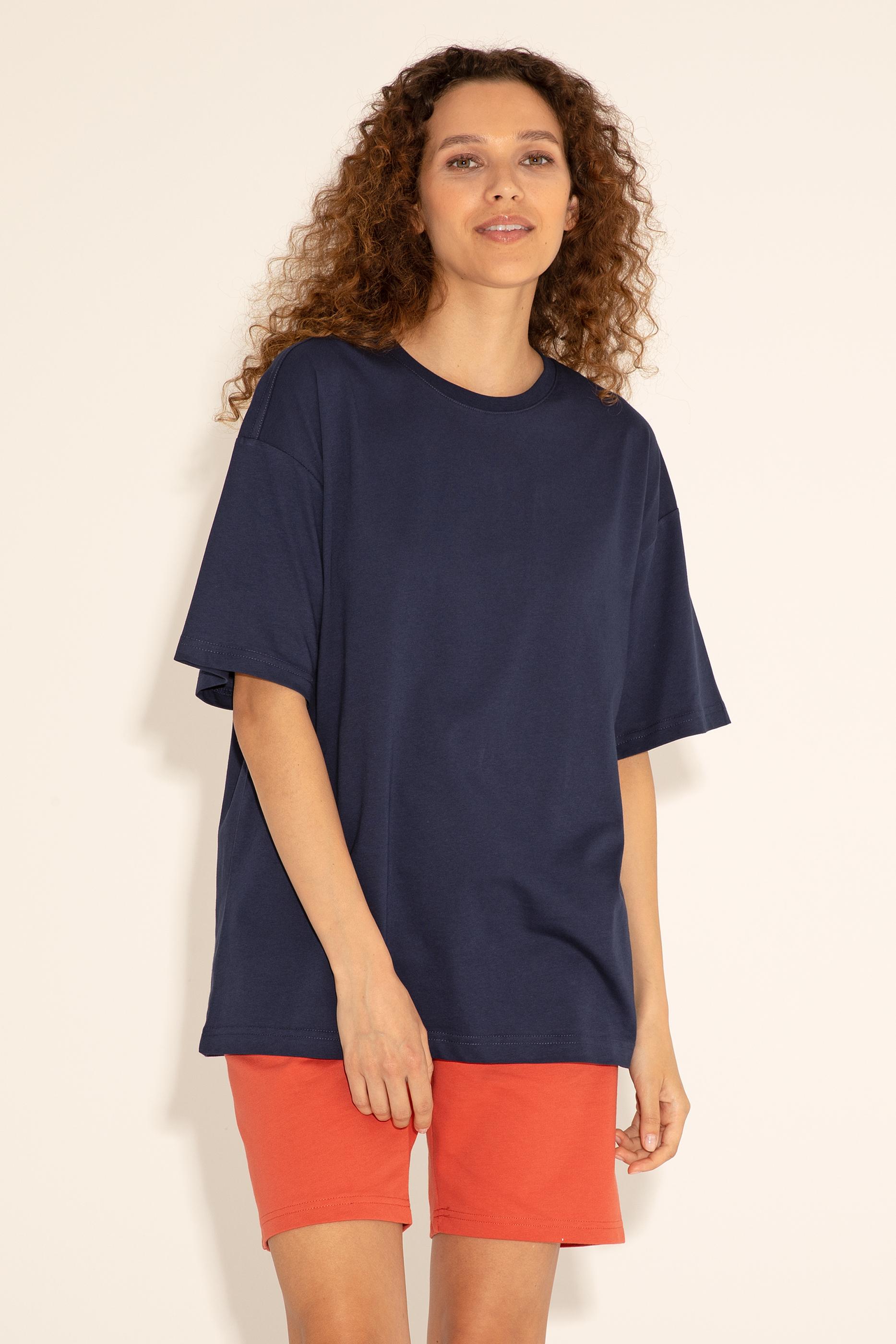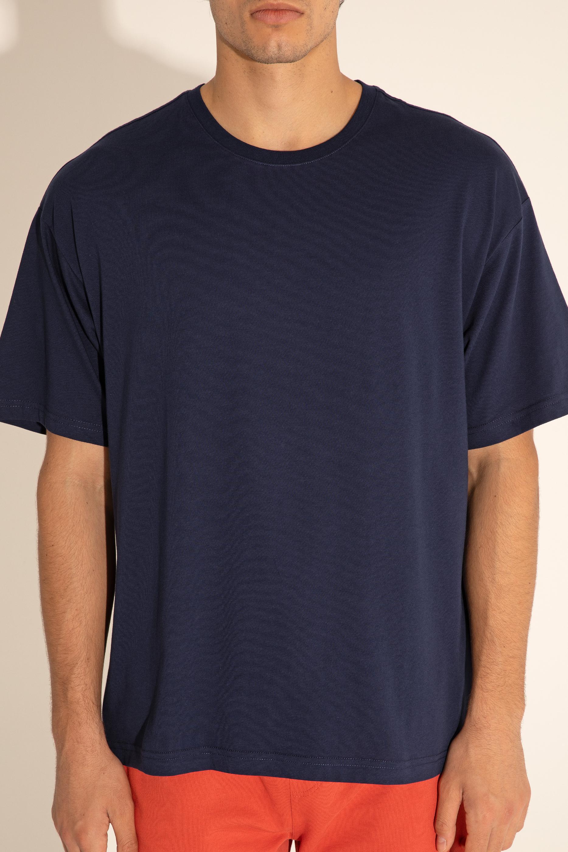 - Erkek Comfort Fit Bisiklet Yaka Lacivert Tişört