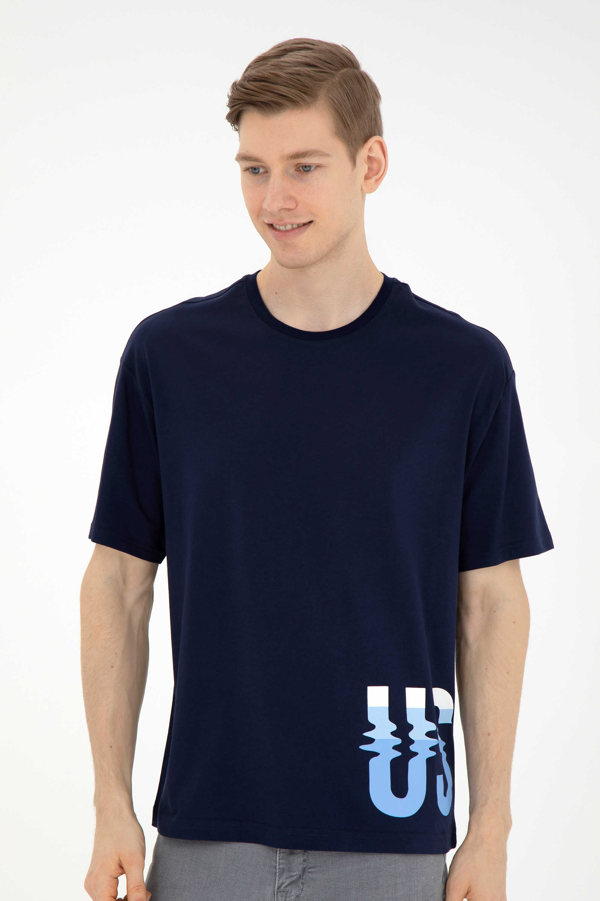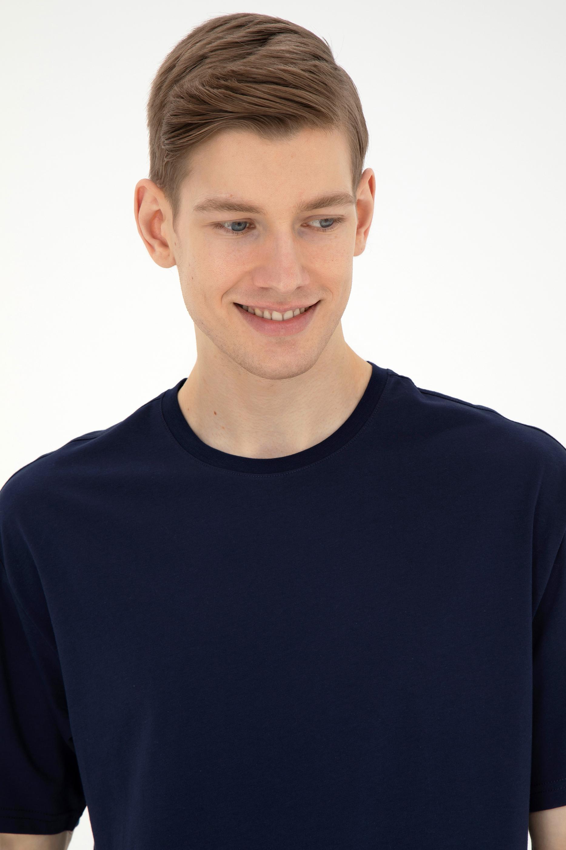 Erkek Comfort Fit Bisiklet Yaka Lacivert Tişört