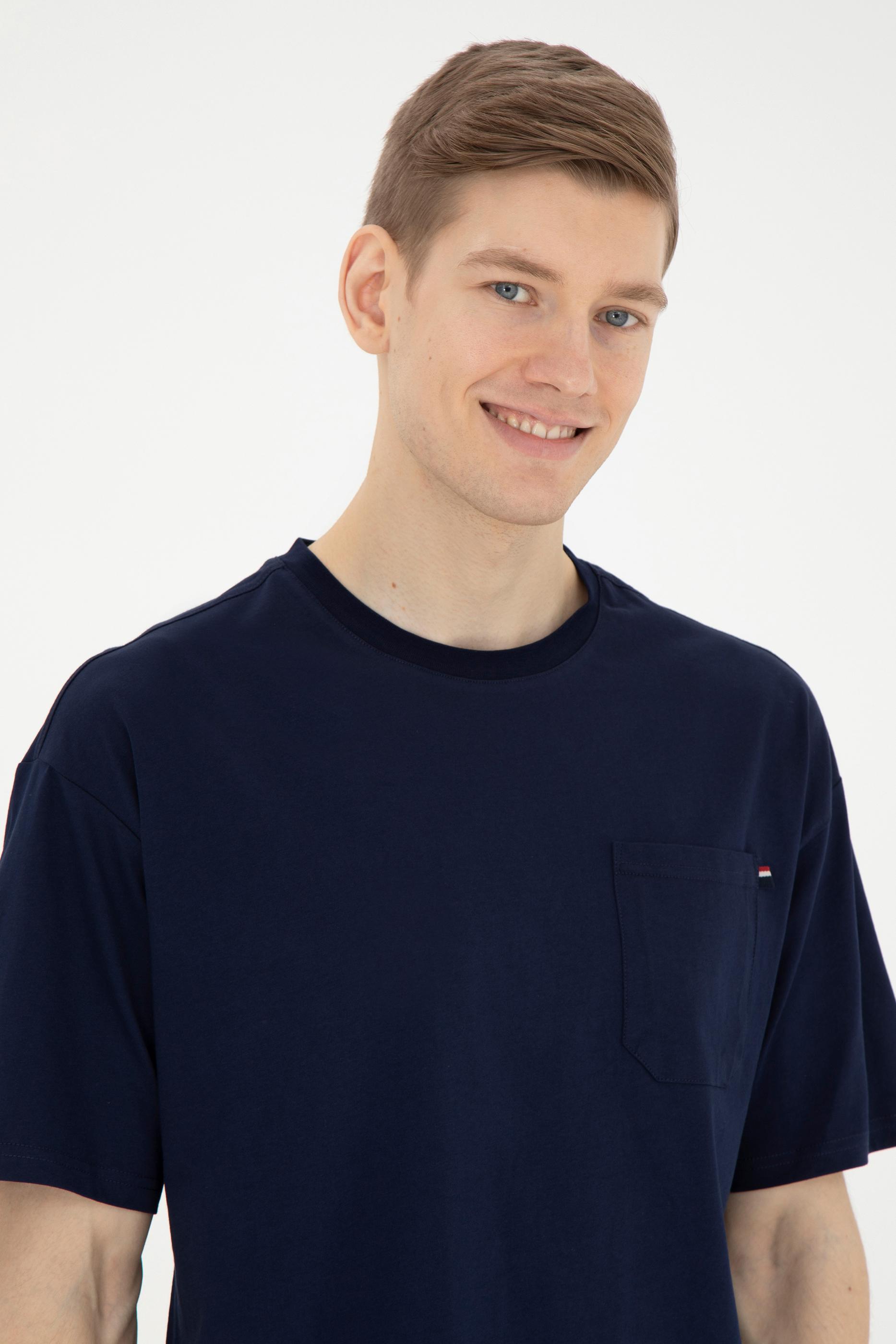 Erkek Comfort Fit Bisiklet Yaka Lacivert Tişört