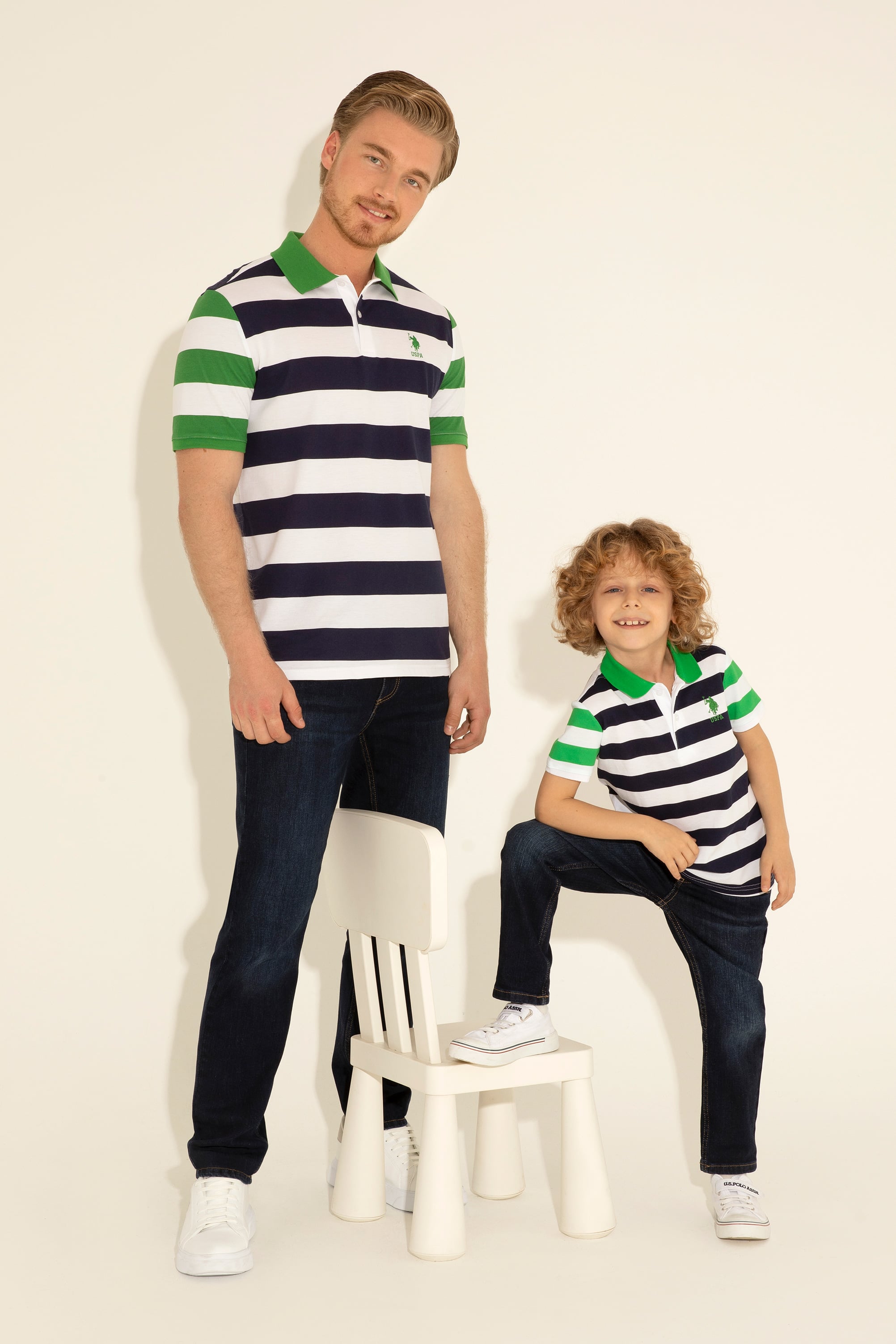 Lacivert polo yaka tişört baba-oğul kombin imkanı sunarak ailece uyumlu giyinme fırsatı verir. Aynı modelde hem yetişkin hem de çocuk tişörtü olması, özel günlerde veya günlük hayatta baba-oğul uyumunu pekiştiren harika bir detay olarak öne çıkar. Tişörtün regular fit kesimi, vücut hatlarını sıkmadan şık bir duruş sağlar. Her vücut tipi için uygun bir kalıp sunar. Tişörtün baskılı ve desenli tasarımı klasik çizgilerin dışına çıkarak modern bir hava yaratır. USPA logo detayı ise tişörtün kalitesini ve markasını vurgulayan zarif bir detay olarak göze çarpar.